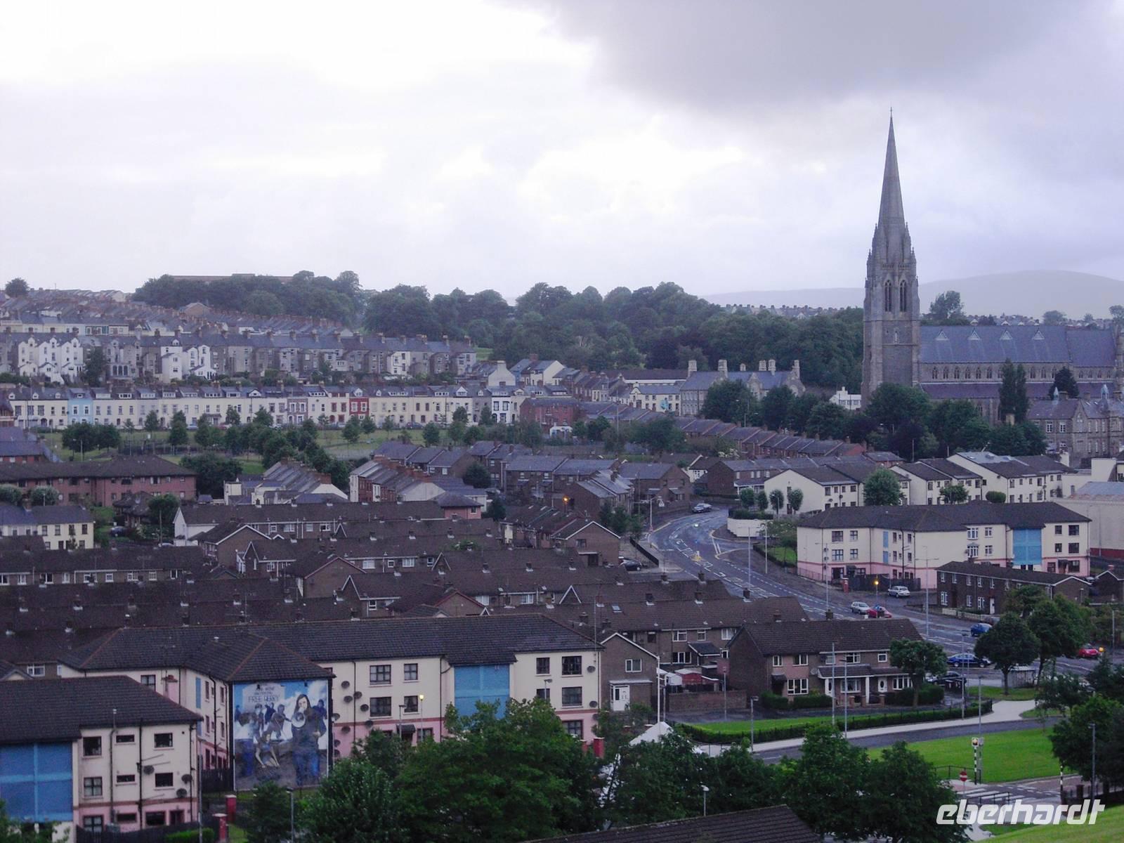 Die Abfahrt nach dem Frühstück führte uns zunächst zum Glenariff Forest Park. Hier legten wir eine Entspannungspause ein und konnten in aller Ruhe in einer wunderschönen Naturkulisse eingebettet bis nach Schottland sehen. Dann starteten wir zur Antrim - Küste und besuchten Giants Causeway. Die zum Weltkulturerbe zählenden sechseckigen Basaltsäulen verschlugen manchem von uns schon ein wenig die Sprache ob ihrer natürlichen Schönheit und Vielfalt. Mit einem Fotostopp am "halbweggebrochenen" Dunluce Castle ging es weiter nach Derry/Londonderry. Hier waren die nächsten zwei Übernachtungen für uns geplant. Nach dem Check-In unternahmen wir noch mit dem Reiseleiter einen kleinen Stadtgang und anschließend wartete dann unser Abendessen auf uns.