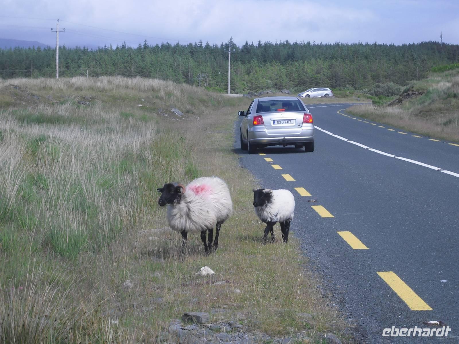 Der berühmte Ring of Kerry stand nach dem Frühstück als Tagesausflug auf dem Programm. In Killarney trafen wir den örtlichen Guide Jan, der uns auf dieser Tour begleitete. Das Wetter war leider, im Vergleich zum Vortag, vormittags typisch irisch. Wir lernten also den ersten Teil der Tagesfahrt nur geschildert kennen, legten aber immer wieder Foto- und Servicestopps ein. So in Caherseevin mit der "falschen" Kaserne und Waterville mit Charlie Chaplin. Erst in Sneem änderte sich das Wetter und beim Besuch der Schaffarm beim Schäfer Kissane war die Wetterwelt wieder in Ordnung. Sehr, sehr eindrucksvoll war die Demonstration der Arbeit eines Schäfers mit seinen Hunden. Auch einer Schafschur schauten wir zu. Relativ anspruchsvolle und auch notwendige Arbeit für wenig Geldertrag. Nach einem Besuch des Torc - Wasserfalls im Killarney Nationalpark schlenderten wir noch durch das Areal von Muckross House und der umgebenden Gartenlandschaft. Der Tag neigte sich dem Ende entgegen und wir fuhren zum Brandon Hotel in Tralee zurück. Hier gab es für uns das Abendessen und mit vielen neuen Tageseindrücken legten die meisten Gäste bald ihr müdes Haupt zur Ruhe.