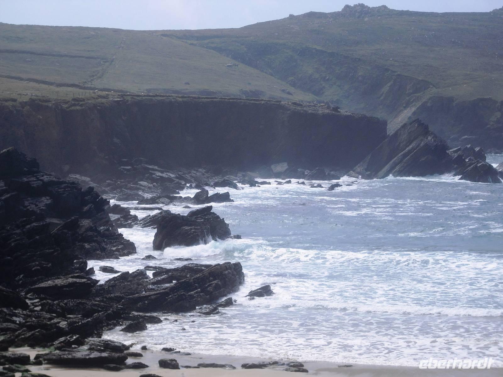 Wegen der europaweit gültigen Gesetzeslage zu Lenk- und Ruhezeiten für Busfahrer sind wir nach dem Frühstück mit einem irischen Bus zu unserer Tagestour gestartet. Unser Busfahrer hatte (s)einen freien Tag. Einen ersten Stopp hatten wir am Lough Conn, der zweitgrößte See Westirlands. Dann besuchten wir Achill Island und hatten, nach einigen Fotostopps, einen längeren Aufenthalt in Keel. Einige prüften die Wassertemperatur des Atlantiks. Unsere Mittagspause verbrachten wir in Doogort. Hier hat sich auch ein Heinrich Böll seinerzeit sehr wohlgefühlt - wir besuchten sein ehemaliges Cottage. Der Nachmittag wurde mit dem Besuch von Ceide Fields ausgestaltet. Ein eher zufälliger und zunächst von Wissenschaftlern unbeachteter Fund eines Lehrers war der Impuls für die Freilegung einer kompletten Siedlung von vor mehreren tausend Jahren. Sehr eindrucksvoll. Zum Abschluß des Tages besichtigten und fotografierten wir noch einen typischen irischen Rundturm in Killala. Abgerundet wurde der erlebnisreiche Tag von unserem Abendessen im Downhill House Hotel in Ballina.