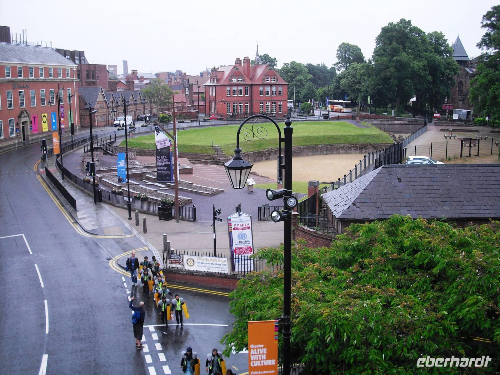 Mit einem frühen Frühstück begann der Tag für die Busreisegäste. Anschließend ging die Fahrt zum Dublin Port und von dort mit der Fähre nach Holyhead in Wales. Mit einem regnerischen Stadtspaziergang durch Chester wurde die Fahrt nach Hull, dem Fährhafen für die Nordseepassage, aufgelockert. Chester ist eine von den Römern gegründete englische Stadt mit viel Flair. Es hat sich trotz des Regens gelohnt. Pünktlich landeten wir mit dem Bus in Hull und gingen an Bord. Es war dieselbe Fähre wie auf der Hinfahrt, wir waren also schon vertraut mit dem Schiff. Es erwartete uns eine ruhige Nachtfährpassage nach unserem Abendessen.