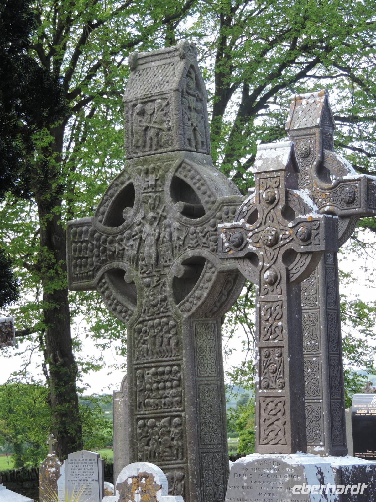 Erster Stopp ist in Monasterboice. Hier stehen Reste einer alten Klosteranlage, deren Friedhof heute noch genutzt wird. Es gibt einige zT noch gut erhaltene Hochkreuze.