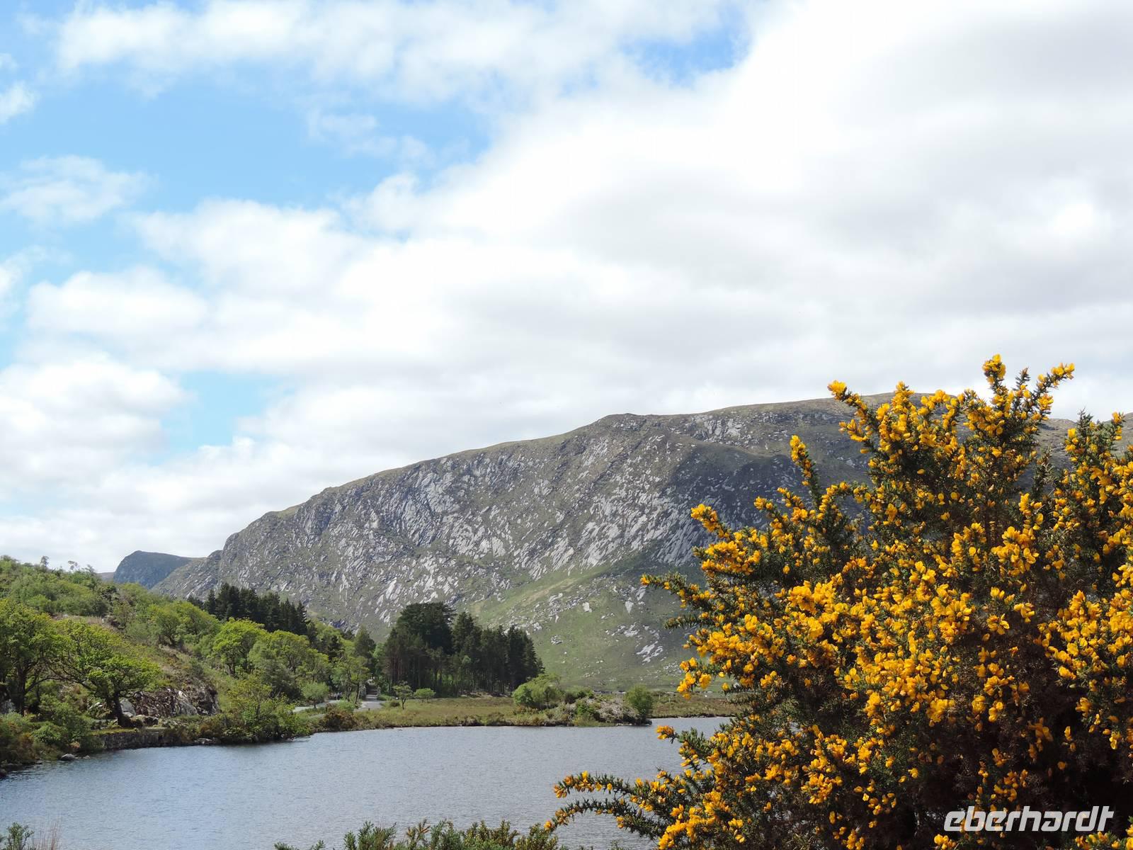 9 Uhr Abfahrt zum fakultativen Ausflug in den Nationalpark Glenveagh. Fast alle buchen diese Fahrt in die wunderschöne irische Landschaft an diesem herrlich sonnigen Tag.
