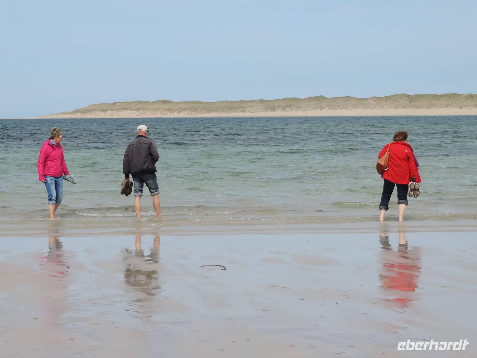 Ollie zeigt uns am Nachmittag dann den nordwestlichsten Zipfel von Irland. Wir haben einmal sogar die Gelegenheit, an einem wunderschön breiten, langen und menschenleeren Strand zu laufen. Bzw. wer möchte auch mit den Füßen ins vielleicht 11 ° kalte Wasser zu gehen. In dem kleinen und hübschen Touristenort Dunfanaghy haben es uns besonders die Eisdielen angetan.