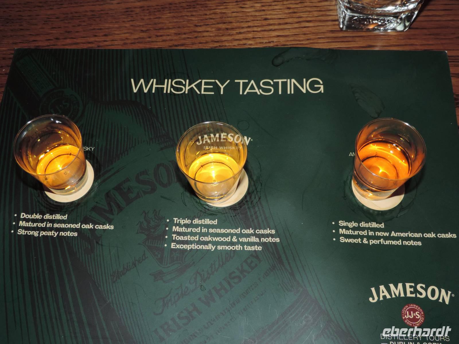 Abfahrt 8.20 Uhr, zwei Stunden später Ankunft in Midleton in der Destillerie. Dieses befindet sich in einer ehemaligen Mühle, die dann Brennerei und heute Museum wurde. Nebenan sieht man die modernen Produktionsanlagen. Film + Tour + Verkostung (von 3 Whiskeys: irisch, schottisch, Bourbon) dauern 1 ½ Stunden. Danach Freizeit im Ort zum Mittagessen. 13 Uhr Abfahrt.