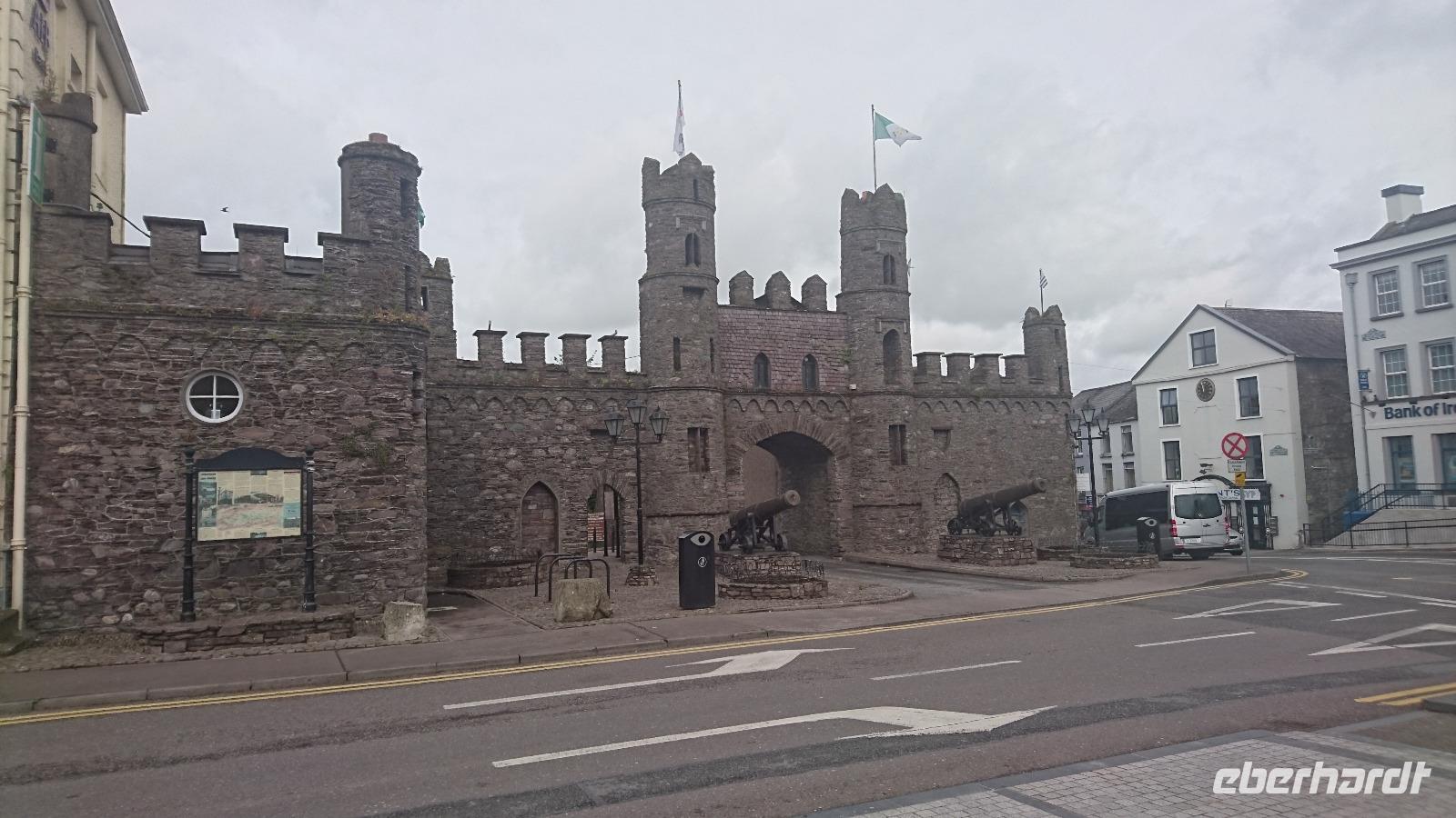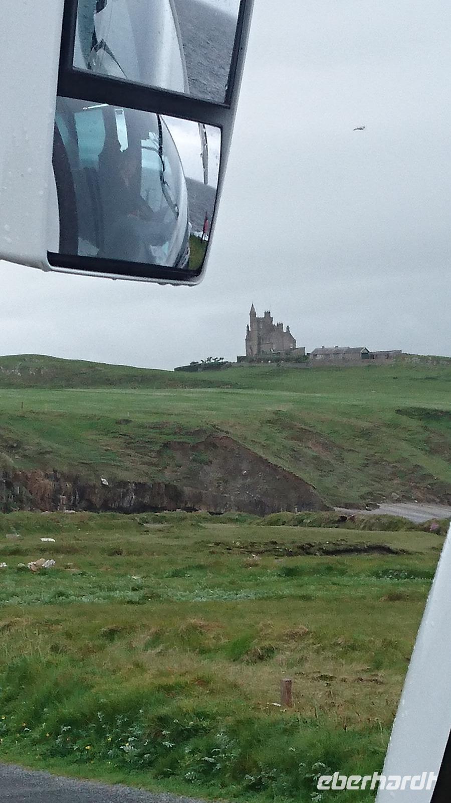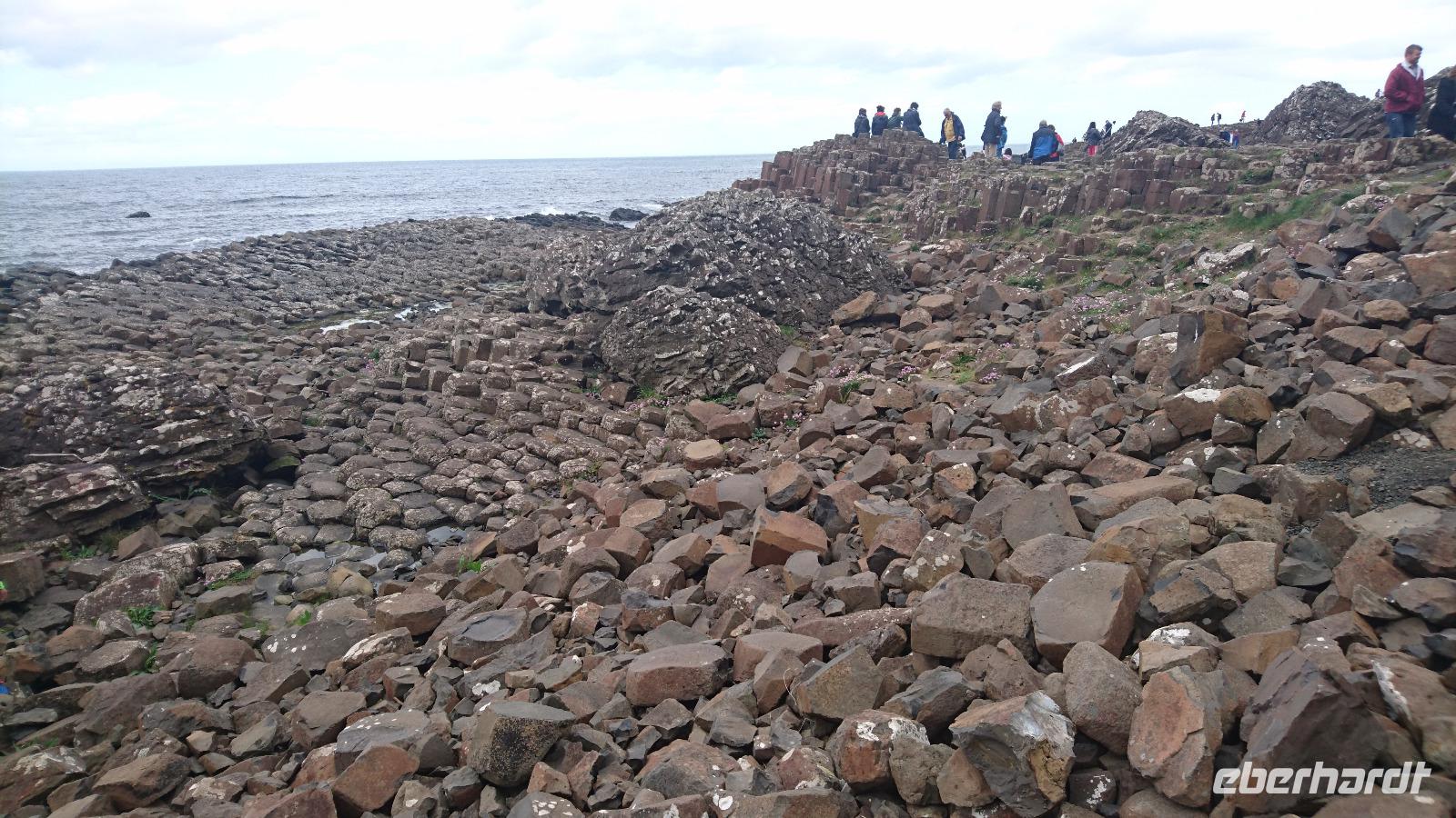 Nicht zu früh und nicht zu spät, mit einer guten Startposition direkt an der nordirischen Küstenstraße starteten wir am Morgen unsere nächste Entdeckungstour. Nach Norden und später gen Westen sollte sie uns führen. Doch kaum rollte der Bus an, stand er schon wieder. Fotostopp am Carrickfergus Castle. Eine gewaltige alte Normannenburg, die heute Prinz William zugeordnet werden kann, dem seit seiner Hochzeit frisch gebackenen Baron von Carrickfergus. Später fuhren wir weiter und schauten bald auf Land weit draußen im Meer. Plötzlich startete auf dem Busmonitor ein Musikvideo und wir erfuhren, was wir da draußen sahen. Mull of Kintyre, gerade besungen von Paul McCartney, aber doch gar nicht zu Irland gehörig. Wir sahen bis nach Schottland. Das Wetter meinte es dazu noch gut zu uns und wir freuten uns auf weitere Erlebnisse des Tages. Die hatten wir, als wir eine Hängebrücke zwischen Festland und einer Insel sahen, die Carrick-a-Reed Rope Bridge. Doch nun wurde es Zeit und wir erreichten Giant Causeway, die Brücke der Riesen, die alte Basaltverbindung zwischen Irland und Schottland, die vor Tausenden von Jahren im Meer versank und an die nur noch ihre direkten Landverbindungen an der irischen und schottischen Küste erinnern. Die dortige Steilküste, die Basaltsäulen, auf denen wir laufen konnten, all das war ein Erlebnis der besonderen Art. Wer wollte konnte noch einen Irish Stew im Restaurant probieren und nach ausreichend Besichtigungszeit für eine Rundreise ging es später weiter nach Westen. Mitten auf der Straße, eher auf einer Kreuzung hielt Diane den Bus an und Stefan zeigte uns die vor uns liegenden Ruinen von Dunluce Castle. Nach ein paar Fotos waren wir nun neugierig auf eine Stadt, die man im Allgemeinen als ‚Die Stadt mit dem Schrägstrich' bezeichnet. Woher kommt das? Republikaner und Katholiken nennen sie offiziell Derry, Royalisten und Protestanten eher Londonderry. Da manchmal die Emotionen hoch kochen können, schreiben alle offiziellen Stellen lieber Derry/Londonderry und der Bürger meint eben, es sei die Stadt mit dem Schrägstrich. Vollständig ist auch heute noch die alte Innenstadt von einer Stadtmauer umschlossen, direkt in der Stadt leben hauptsächlich Royalisten, also Bürger, die weiter zum Vereinigten Königreich gehören möchten, außerhalb eher jene, die der nicht weit entfernten Republik Irland nahe stehen. Wir schauten uns die Stadt an, sahen wieder viel Altes und Neues an einem Ort vereint und lächelten ein wenig, als wir direkt am alten Butchers Gate, dem Fleischer-Tor einen ‚Checkpoint Charlie' sahen, der die auch heute immer noch vorhandene Teilung der Gemüter sehr gut versinnbildlicht. Nach diesem Ausflug fuhren wir weiter in die Republik Irland und damit in das nahe Letterkenny, wo wir bald darauf unser Hotel bezogen, zu Abend aßen und schlafen gingen.