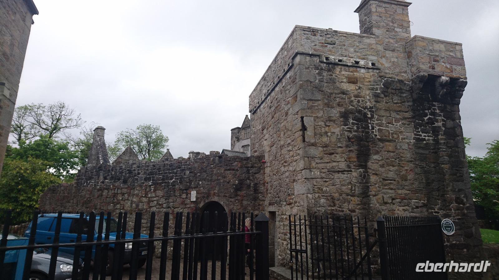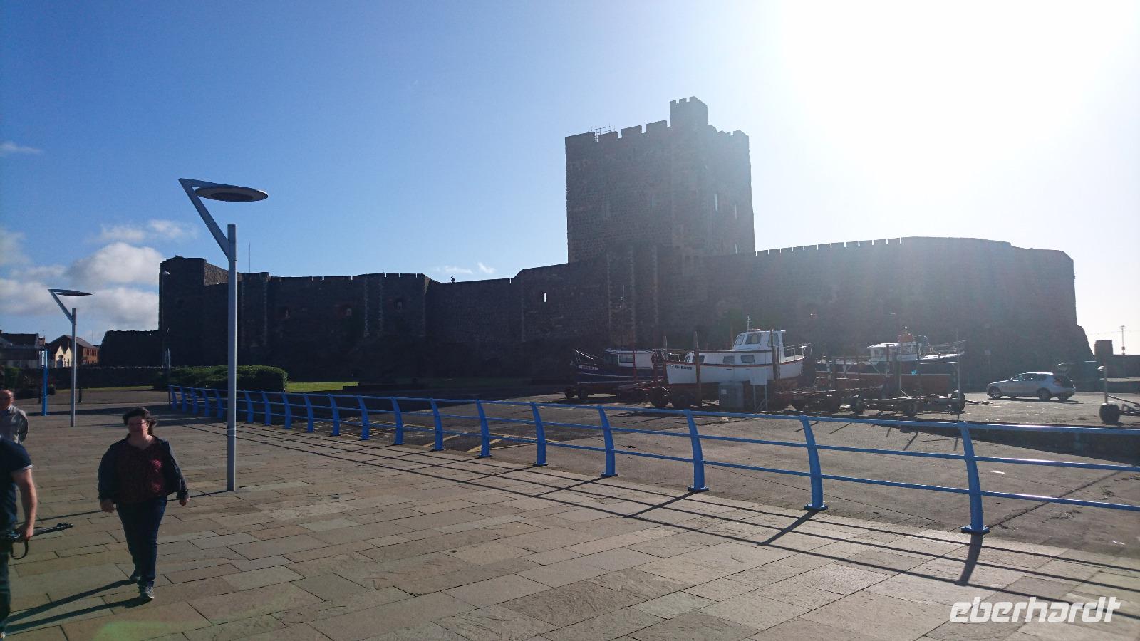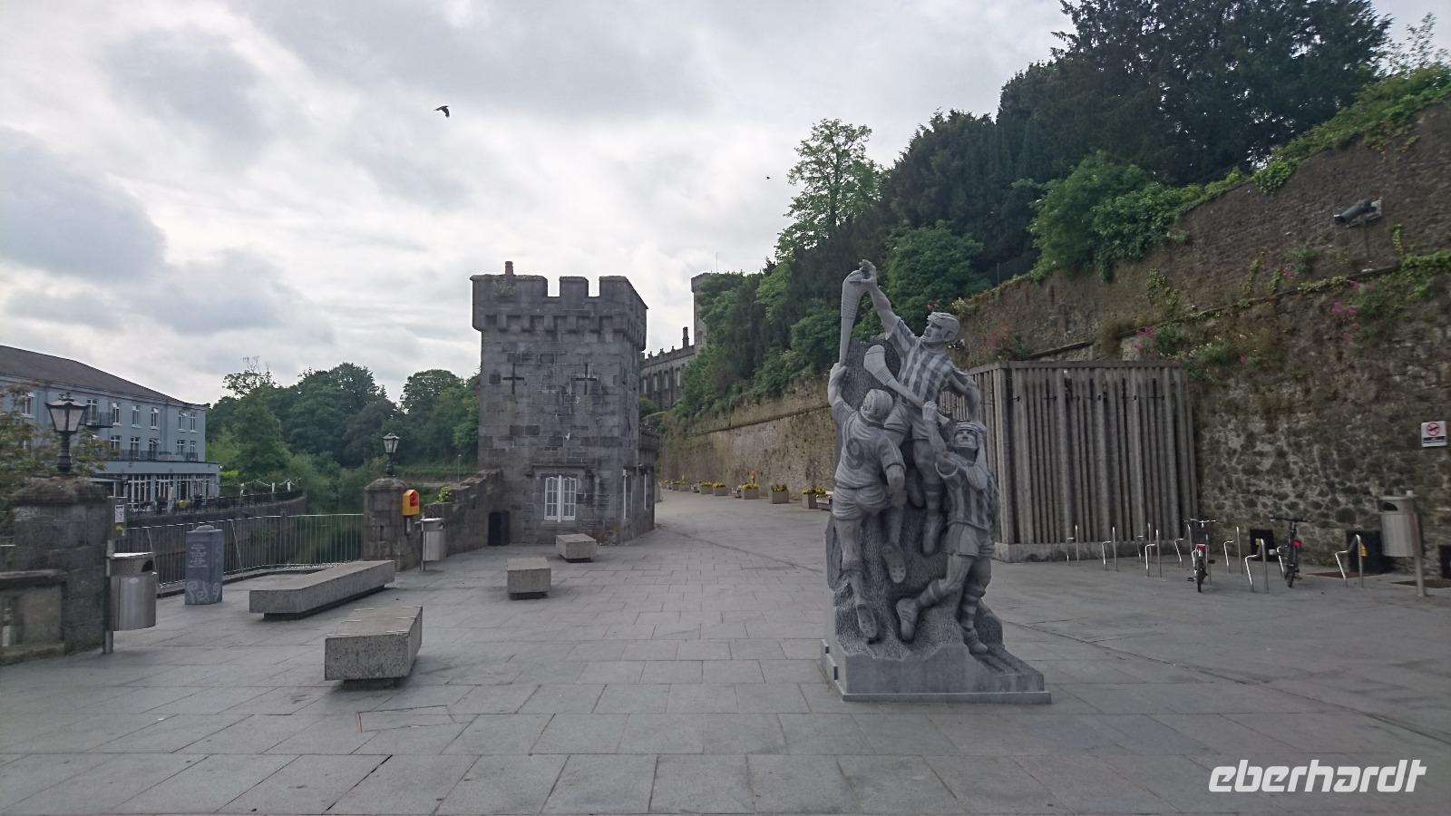 Nicht zu früh und nicht zu spät, mit einer guten Startposition direkt an der nordirischen Küstenstraße starteten wir am Morgen unsere nächste Entdeckungstour. Nach Norden und später gen Westen sollte sie uns führen. Doch kaum rollte der Bus an, stand er schon wieder. Fotostopp am Carrickfergus Castle. Eine gewaltige alte Normannenburg, die heute Prinz William zugeordnet werden kann, dem seit seiner Hochzeit frisch gebackenen Baron von Carrickfergus. Später fuhren wir weiter und schauten bald auf Land weit draußen im Meer. Plötzlich startete auf dem Busmonitor ein Musikvideo und wir erfuhren, was wir da draußen sahen. Mull of Kintyre, gerade besungen von Paul McCartney, aber doch gar nicht zu Irland gehörig. Wir sahen bis nach Schottland. Das Wetter meinte es dazu noch gut zu uns und wir freuten uns auf weitere Erlebnisse des Tages. Die hatten wir, als wir eine Hängebrücke zwischen Festland und einer Insel sahen, die Carrick-a-Reed Rope Bridge. Doch nun wurde es Zeit und wir erreichten Giant Causeway, die Brücke der Riesen, die alte Basaltverbindung zwischen Irland und Schottland, die vor Tausenden von Jahren im Meer versank und an die nur noch ihre direkten Landverbindungen an der irischen und schottischen Küste erinnern. Die dortige Steilküste, die Basaltsäulen, auf denen wir laufen konnten, all das war ein Erlebnis der besonderen Art. Wer wollte konnte noch einen Irish Stew im Restaurant probieren und nach ausreichend Besichtigungszeit für eine Rundreise ging es später weiter nach Westen. Mitten auf der Straße, eher auf einer Kreuzung hielt Diane den Bus an und Stefan zeigte uns die vor uns liegenden Ruinen von Dunluce Castle. Nach ein paar Fotos waren wir nun neugierig auf eine Stadt, die man im Allgemeinen als ‚Die Stadt mit dem Schrägstrich' bezeichnet. Woher kommt das? Republikaner und Katholiken nennen sie offiziell Derry, Royalisten und Protestanten eher Londonderry. Da manchmal die Emotionen hoch kochen können, schreiben alle offiziellen Stellen lieber Derry/Londonderry und der Bürger meint eben, es sei die Stadt mit dem Schrägstrich. Vollständig ist auch heute noch die alte Innenstadt von einer Stadtmauer umschlossen, direkt in der Stadt leben hauptsächlich Royalisten, also Bürger, die weiter zum Vereinigten Königreich gehören möchten, außerhalb eher jene, die der nicht weit entfernten Republik Irland nahe stehen. Wir schauten uns die Stadt an, sahen wieder viel Altes und Neues an einem Ort vereint und lächelten ein wenig, als wir direkt am alten Butchers Gate, dem Fleischer-Tor einen ‚Checkpoint Charlie' sahen, der die auch heute immer noch vorhandene Teilung der Gemüter sehr gut versinnbildlicht. Nach diesem Ausflug fuhren wir weiter in die Republik Irland und damit in das nahe Letterkenny, wo wir bald darauf unser Hotel bezogen, zu Abend aßen und schlafen gingen.