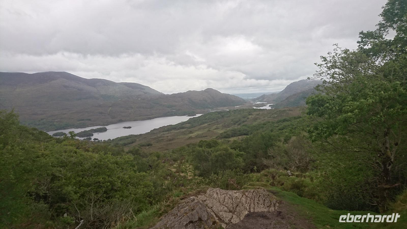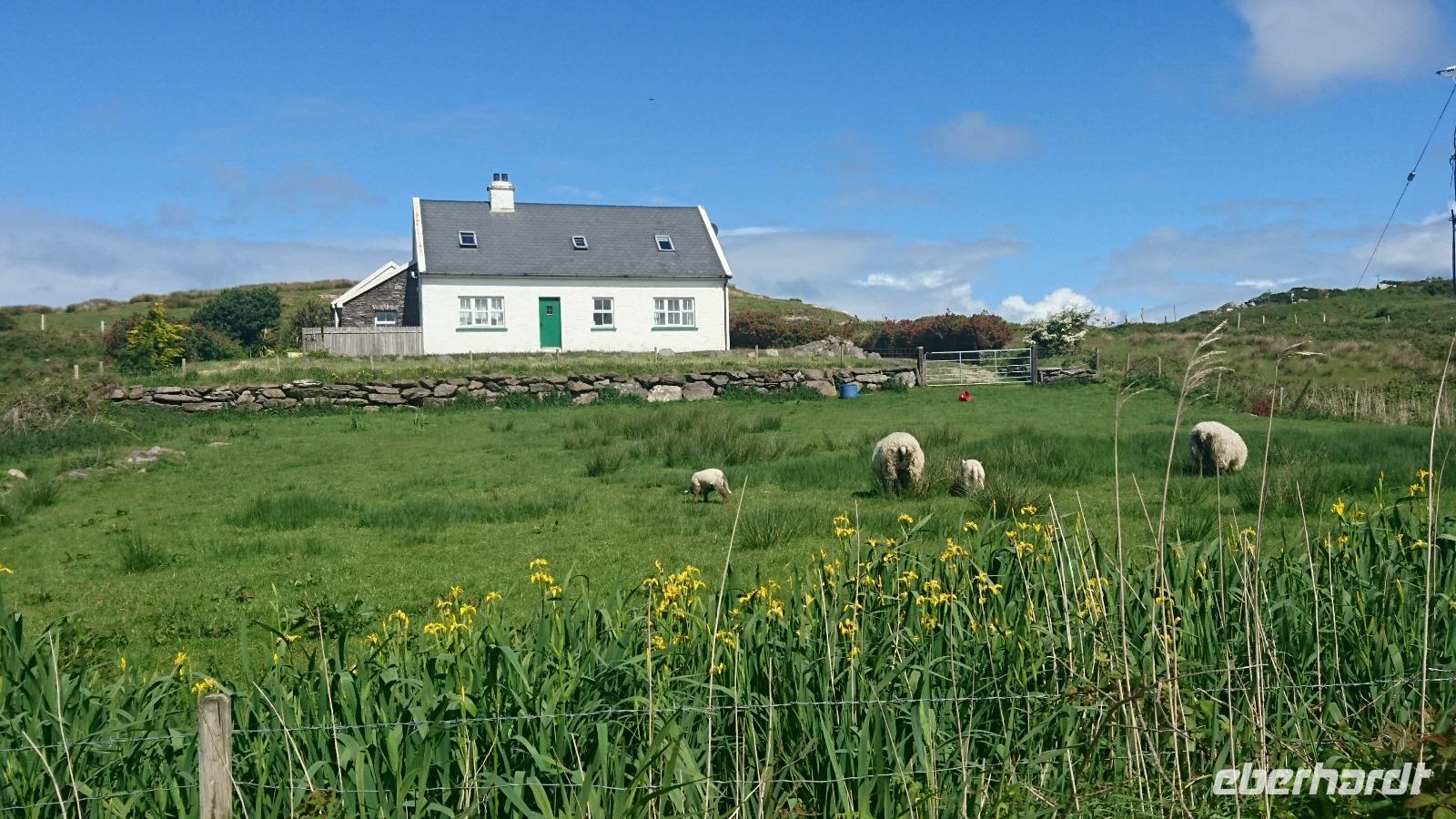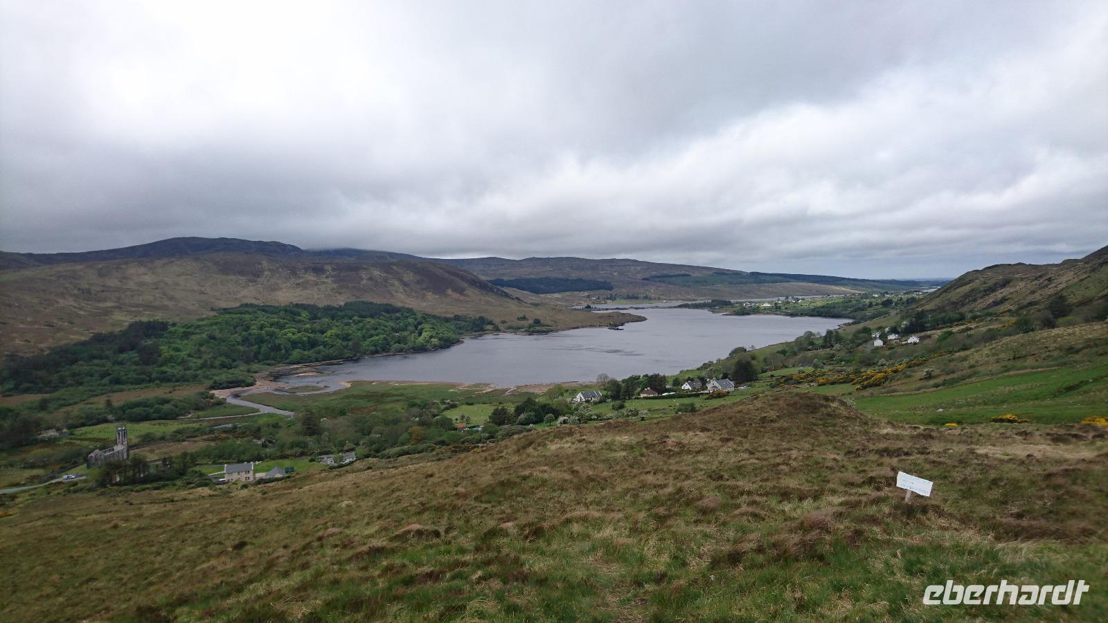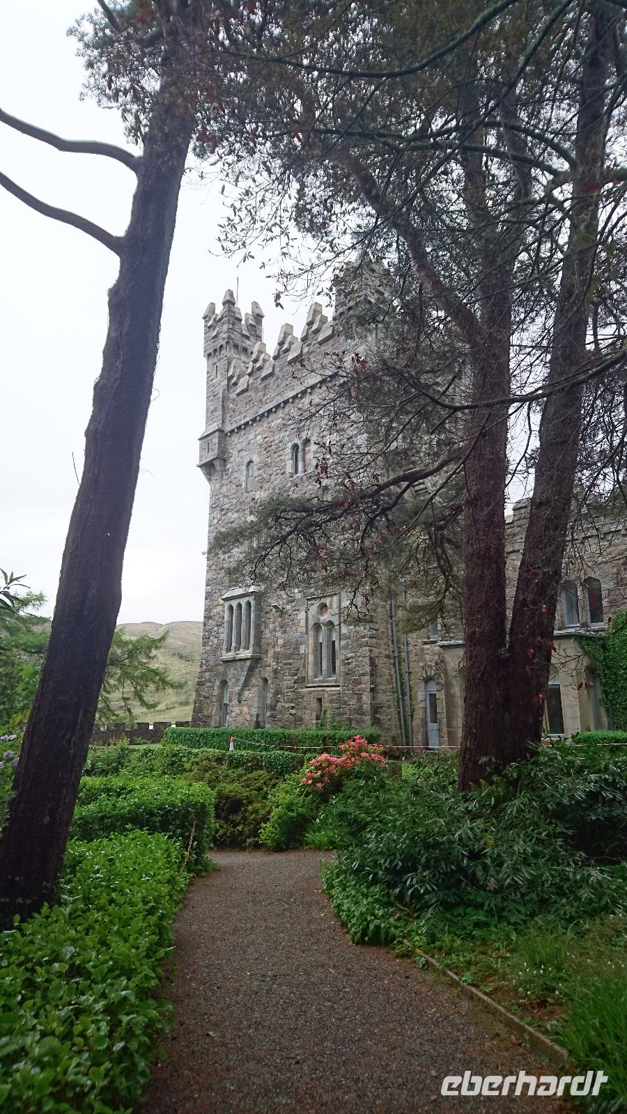 Fakultativ sollte er sein, dieser Ausflugstag. Wir entschieden uns alle dafür und fuhren am Morgen mit in den nahen Nationalpark. Vorbei an Torf- und Heidelandschaften erreichten wir das Visitorcenter und sahen erst einmal einen Film über die Entstehung und die weitere Bewirtschaftung des Parks und des darin einst von Capitain Adaire errichteten Castles. Leider war die Geschichte um die Entstehung dieses kleinen künstlichen Naturwunders nicht schön, da Herr Adaire damals Farmer von ihrem Land vertrieb, um sich ein Jagdrevier zu schaffen. Zum Glück konnte seine ihn um Jahrzehnte überlebende Frau mit eisernem Willen und viel Liebe zum Detail diese Meinung durch gute Taten für Bevölkerung und Land dieses Bild wandeln und die beiden weiteren Besitzer verschrieben sich neben ihren eigentlichen Tätigkeiten den Künsten und machten aus Glenveaugh Castle einen Ort der Künste und hohen Persönlichkeiten dieses Genres. Letzteres besichtigten wir später mit Stefans Führung und hatten noch genügend Zeit, um anschließend die herrlich angelegten Parkanlagen, den Garten in den Mauern oder die schönen Aussichtspunkte auf Tal, Schloss und See zu genießen. Später aßen wir noch etwas zum Mittag und fuhren dann weiter durch den Nationalpark, machten Station am Mount Errigal, dem höchsten Berg Donegals, erreichten dann bei Naran den Atlantikstrand von Narin und fuhren am Nachmittag noch nach Donegal City, um etwas durch den Ort zu bummeln, das alte Castle zu besichtigen, etwas zu trinken oder einfach den netten Ort auf uns wirken zu lassen. Später fuhren wir in unser Hotel in Letterkenny zurück und ließen uns beim Abendessen verwöhnen, ehe wir wieder etwas packten. Denn am nächsten Morgen sollte es wieder weiter gen Süden gehen.