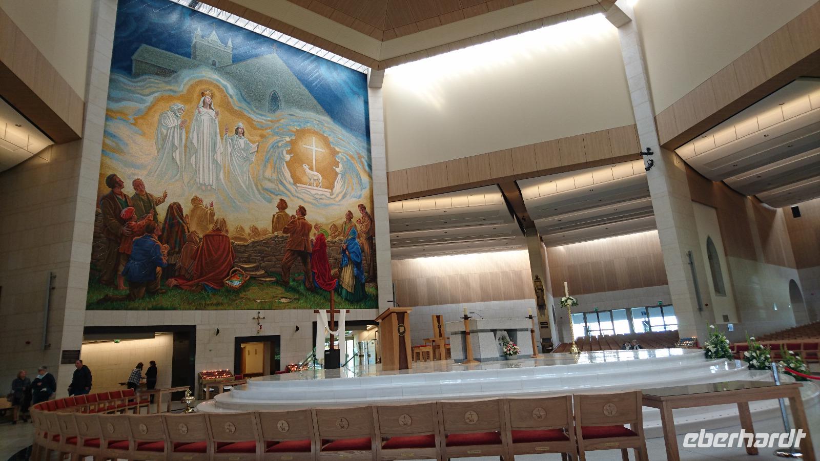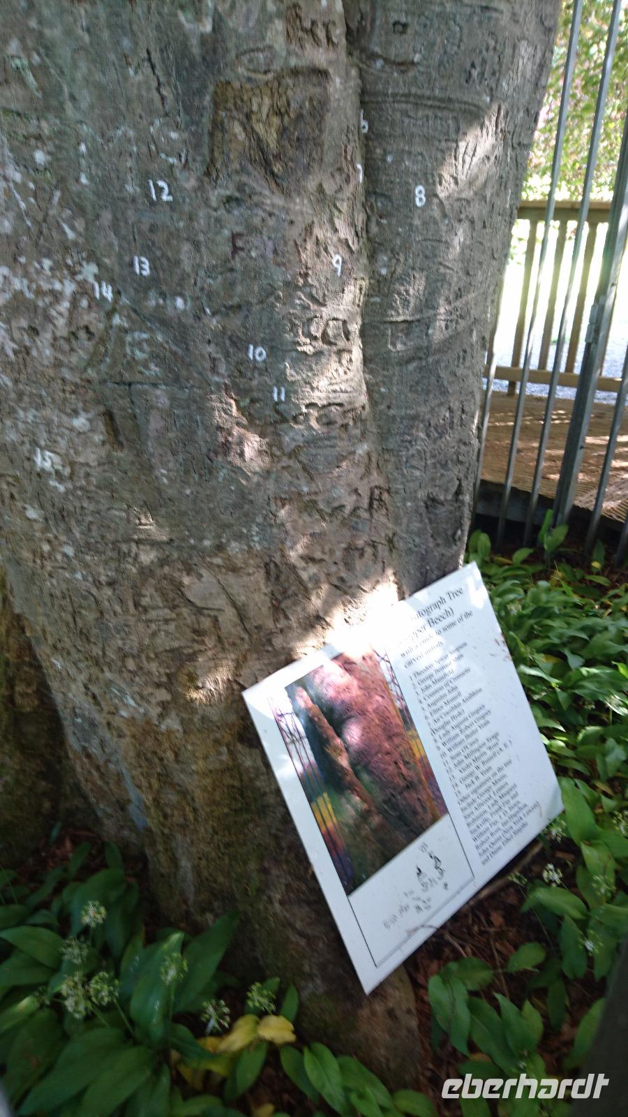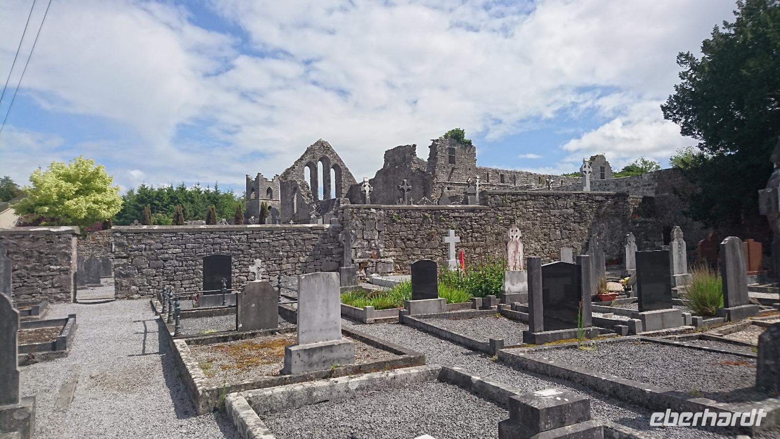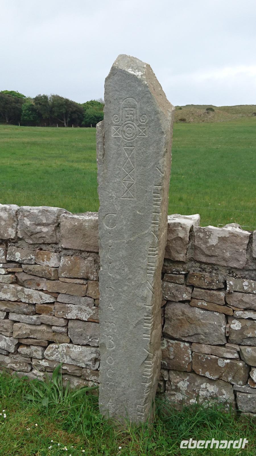 Alt und Neu, weit zurückliegende Geschichte, aktuelle Machtpolitik und immer noch der Glaube, all das bestimmt Irland, bestimmt die Bevölkerung und deren Regierung. All das sollte wir heute sehen und erleben. Zuerst ging es nach Mullaghmore, in dessen Castle bis 1979 der einzige Baron von Mullaghmore, Lord Montbatten lebte, ehe die IRA ihn, mangels greifbarer Ziele in Nordirland, unschön aus dem Leben beförderte. Doch nicht wegen dieser Tat waren wir hier, sondern wegen der herrlichen Steilküste, dem darauf thronenden alten Schloss und der Kontraste, wie wir hier erleben konnten. Später fuhren wir zu jenem Turm, der einst einstürzen soll, wenn der klügste Mensch der Welt daran vorbei geht. Er blieb stehe. Na ja, wir gingen auch nicht daran vorbei, sondern fuhren mit dem Bus. Trotzdem hielten wir an und besuchten den alten Friedhof von Drumcliff mit einem alten keltischen Hochkreuz und vor allem dem Grab des irischen Nationaldichters W.B. Yeats. Nach einem kurzen Aufenthalt dort ging es schon wieder zu Gräbern. Diesmal fanden wir sie in Carrowmore und sie sind heute ca. 7.000 Jahre alt, sollen gar in ihrer Ausrichtung einen Bezug zu Stonehenge und jenen Kulturen, die es errichteten, haben. Ob das wohl stimmt? Auf jeden Fall lauschten wir Stefans Erklärungen zu jener alten Kultur, ehe wir weiter fuhren. In Sligo, unweit von Carrowmore, hielten wir zum Bummeln und zur Mittagspause, genossen etwas Ruhe am Wasser und schon ging es weiter. Der nächste Halt war in Knock, dem Nationalheiligtum, der Pilgerstätte der Iren. Im späten 19. Jahrhundert soll es dort eine inzwischen von der katholischen Kirche anerkannte Marienerscheinung gegeben haben und so entstand in den Siebtigern des letzten Jahrhunderts eine riesige, zu bestimmten Tagen um die 10.000 Menschen fassende Wallfahrtskirche neben der Erscheinungskirche und seither läuft auch das durch die Weihung eines nahen Sees nun heilige Wasser aus Wasserhähnen zu den Pilgern, die es gern mit nach Hause nehmen möchten. Das war für uns ungewöhnlich, jedoch erkennt man als Fremder eh' nie alle Bestandteile der für einen fremden Kultur und so war dies für uns ebenso ein interessanter Stopp. Noch ehe wir unser Hotel in Gort erreichten, ließ Stefan Diane zum Coole Park abbiegen. Dieser gehörte einst Lady Gregory, jener Kunst- und Kulturliebhaberin und glühenden Republikanerin, nach der auch unser heutiges Hotel benannt wurde. In ihrem Park steht in einem ummauerten Garten der Unterschriftenbaum, eine Blutbuche, in der sich alle Größen der damaligen Zeit, die bei Lady Gregory weilten, mit ihrer in den Stamm geschnittenen Unterschrift verewigten. Dank der zugehörigen Hinweistafel entzifferten wir bald die eine oder andere Unterschrift von W.B. Yeats und seinem Bruder Jack, George Bernard Shaw, John Millington Synge, Seán O'Casey, John Masefield, G. W. Russell, George Moore, Augustus John und anderen. Nun jedoch ging es zum Hotel und wir verarbeiteten die vielen Eindrücke des Tages nach dem Abendessen auf unseren Zimmern. Dabei verabschiedeten wir uns von unserer netten und versierten Busfahrerin Diane, die dringend einen anderen Termin wahrnehmen musste.