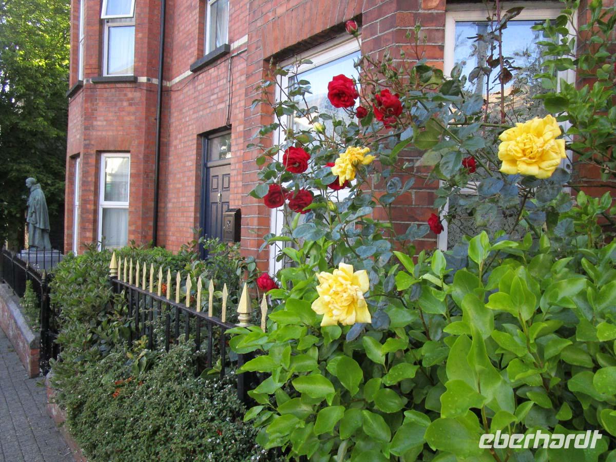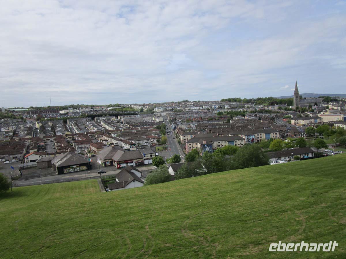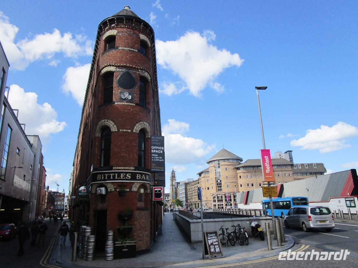 Auf der direkten Reise in die Nordirische Kapitale merken wir kaum, wie wir von der Republik Irland nach Nordirland, also ins vereinigte Königreich überwechseln. Eine Grenze ist nicht zu bemerken. Nur sind plötzlich die Entfernungen in Meilen anstatt Kilometern ausgeschildert.