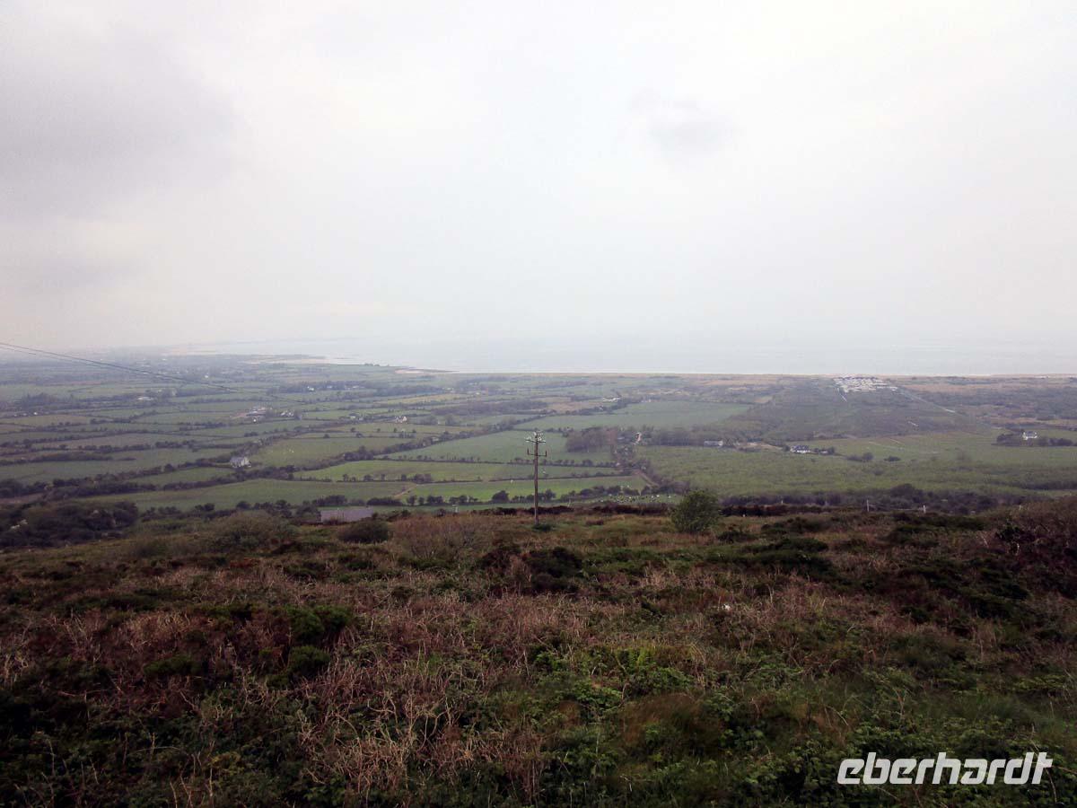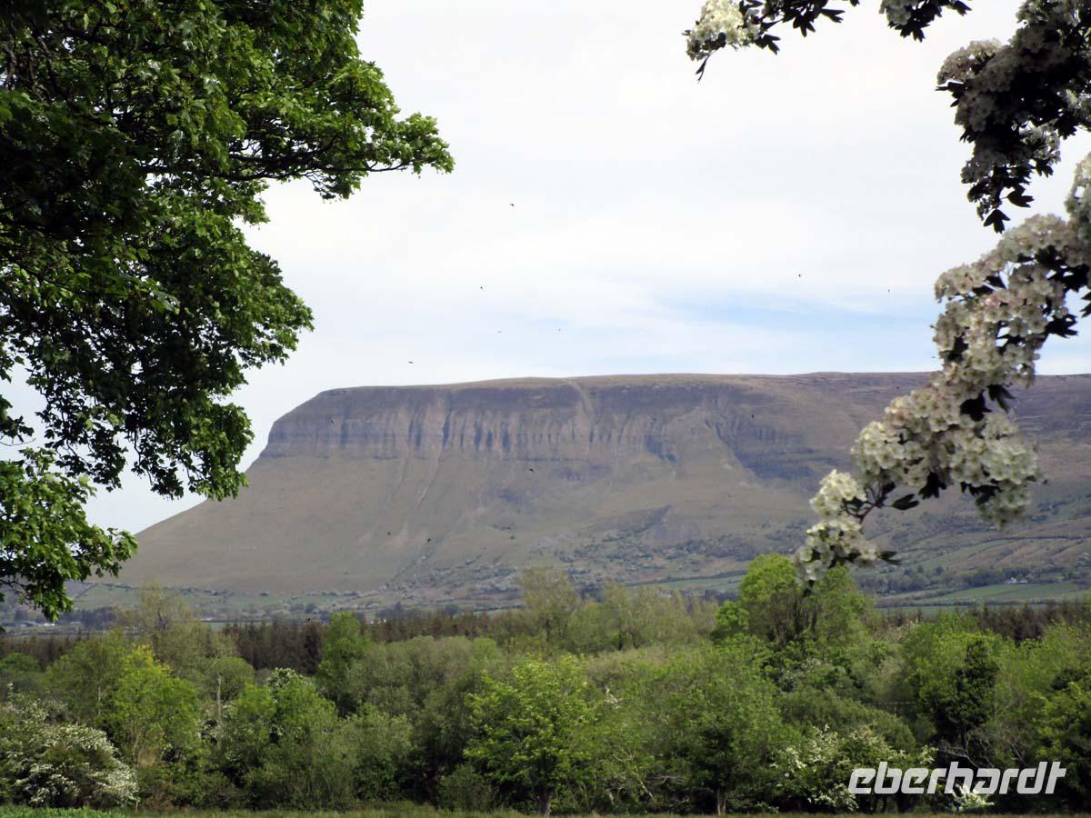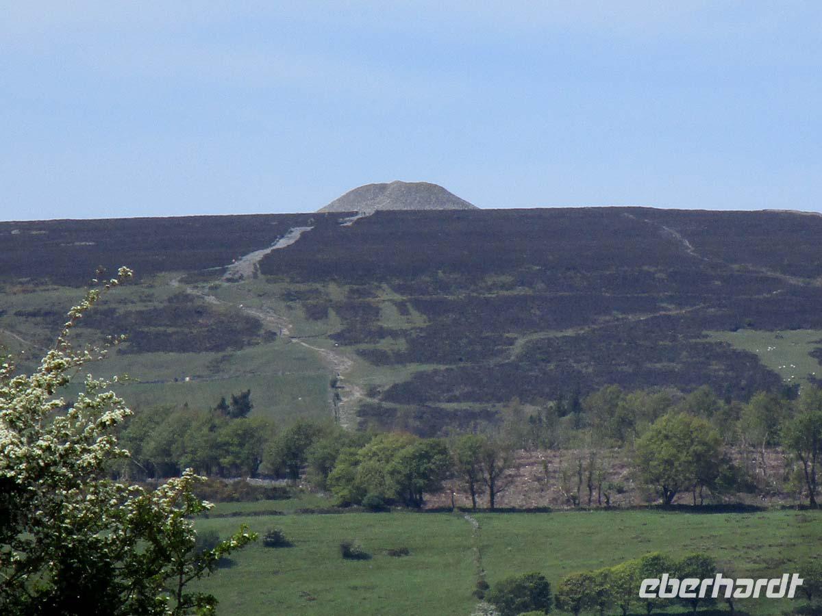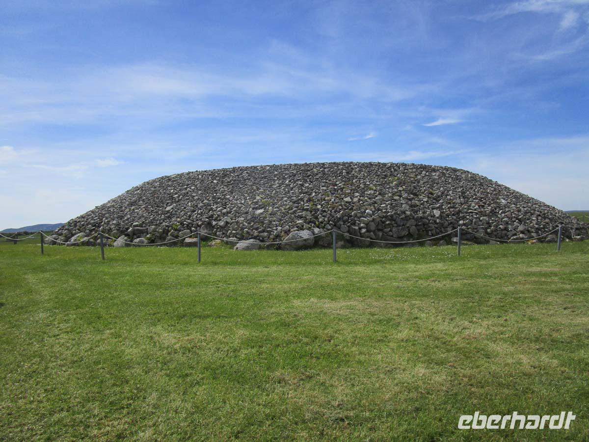 Heute besuchen wir zuerst die kleine Stadt Donegal, welche dem County ihren Namen gegeben hat. Dabei hat sie nicht mal 3000 Einwohner und ist auch nicht die Hauptstadt der Grafschaft. Das ist Lifford. Dafür ist sie aber sehr gut zu überblicken. Vom dreieckigen Hauptplatz, dem Diamond gehen drei Straßen ab. An einer liegt neben der Touristinformation der Friedhof mit den Resten der alten Abtei aus dem Jahr 1474, an der anderen das Donegal Castle, einem Sitz der o´Donells, ebenfalls aus dem 15. Jh. Dazwischen pittoresk bemalte Häuschen, deren Läden zum Flanieren einladen. Den nächsten Stop machen in Drumcliff im County Sligo. Das Dorf würde kein Mensch kennen, wenn hier nicht der erste Literaturnobelpreisträger Irlands begraben worden wäre. W.B. Yeats bekam ihn 1923 für die literarische Umsetzung der irischen Probleme mit England und als wichtigster Vertreter der so genannten irischen Renaissance in der Literatur. Er starb zwar in Frankreich, wollte jedoch immer unterhalb des Ben Bulben, einem richtigen, mit der Mythologie Irlands eng verbundenen Tafelberg begraben sein. Doch nun besuchen wir eines der größten Megalithgräberfelder Irlands: Carrowmore. Die Großsteingräber aus dem 5. -4. Jahrtausend vor Christus nehmen allesamt Bezug auf das größte Grab der Anlage, einen riesigen Cairn, was soviel wie Steinhaufen bedeutet. Unter diesem befindet sich, gut gegraben und rekonstruiert die Grabkammer aus mächtigen Steinen. Einen guten Blick hat man von hier aus auch auf den Berg Knocknarea, auf dessen Spitze sich der größte Megalithgrabhügel Irlands befindet.