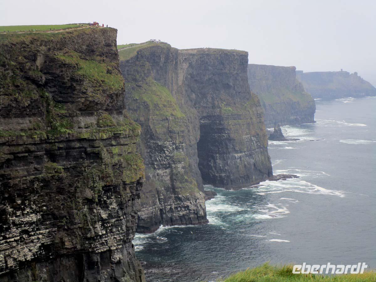 Heute ist die Halbinsel Dingle unser Ziel. Vorher legen wir am Stadtpark noch einen Stop an der Rose of Tralee ein. Diese wird in einem Schönheitswettbewerb im Rahmen eines lokalen Marktes seit den 50er Jahren gewählt, und die Teilnehmerinnen kommen heute sogar aus Übersee. Nachdem wir uns in der sehr gut ausgestatteten Touristinfo mit Material eingedeckt haben, reisen wir zunächst zur Blennerville Windmühle, eine der größten Windmühlen Europas und eine der wenigen, die Irland überhaupt noch zu bieten hat. Der Ring of Dingle ist eine der touristischen Hauptattraktionen Irlands. Schöne Strände, wie z. B. Inch Beach wechseln sich mit atemberaubenden Steilküsten ab, wie z. B. Slea Head, von dem wir sowohl auf die Blasket Islands schauen, als auch am Horizont die Felseninsel Skellig Michael, welche zum Weltkulturerbe gehört. Diese erblicken wir vom Aussichtspunkt Ceann Sratha, an dem sich das Filmset für den Dreh der letzten Starwars-Episode befand. Vorher hatten wir „Behieve Huts", so genannten Bienenkorbhütten vor Slea Head einen Besuch abgestattet. Dies waren seit Urzeiten Halbkugelige Rundbauten aus Trockenmauerwerk in Kragbauweise. Sie dienten z. B. den Mönchen als Zellen, oder aber, zu Gehöhten zusammen gefasst und mit einer Mauer umgeben, auch früheren Farmersfamilien und ihr deren Vieh noch bis in hohe Mittelalter hinein als Unterkunft. Bei Fahan, wo auch wir diese besuchen, stehen sie noch besonders zahlreich in der Landschaft. Kurz vor Dunquin am Blasket Sound blicken wir auf den westlichsten Pub Irlands und decken uns mit leckeren selbst gebackenen Kucken ein. Auch Andenken mit der lokalen, frühgeschichtlichen Ogham-Schrift kann man hier an einem Stand erwerben. Ein Highlight ist eine der ältesten christlichen Kirchen der Insel, das Gallarus Oratory. Das Trockenmauerwerk aus dem 8. Jh. hält auch nach 1300 Jahren den Innenraum noch von Regenwasser frei. Abwechslung von der wilden Natur bietet uns das kleine Städtchen Dingle, in der wir es uns bei Fish and chips, Chowder oder anderen Leckereien gut gehen lassen. Im Anascaul Tal wird Irland seinem Ruf als grüne Insel besonders gerecht. Grüne Wiesen, umrandet von noch grüneren Hecken und dazwischen weiße Punkte (Schafe) bieten ein besonders gutes Klischeebild der Insel. Nachdem wir am Inch Beach nochmals unsere Füße ins Wasser des Atlantiks gehalten haben, begeben wir uns zurück nach Tralee. Nach dem Abendessen brauchen wir nur über die Straße zu gehen, um im nationalen Tanz- und Folktheater „Siamsa Tire" Steptänzern z. B. aus Kanada und Irland zuzuschauen. Das Stück „Anam", was Seele bedeutet bietet zu gälischem Gesang und irischer Instrumentalmusik beeindruckende Beispiele verschiedener Stile dieser künstlerischen Ausdrucksform. Das sollte man sich nicht entgehen lassen, wenn man schon einmal in Tralee ist.