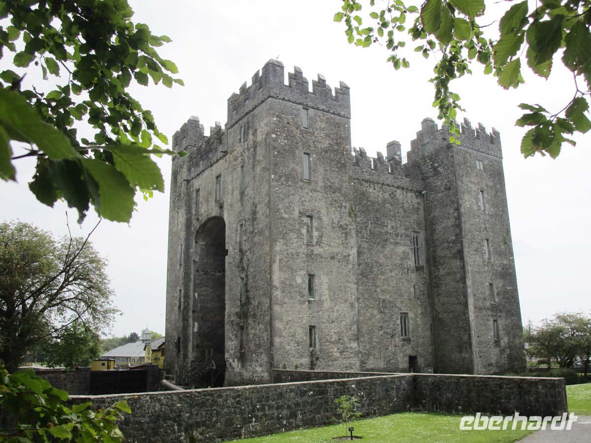 Heute sehen wir zunächst eine Landschaft wie von einem anderen Stern. Die verkarstete Region des Burren. Zu Platten gebrochener Kalkstein macht diese Landschaft aus. Es gibt keine Bäume und die wenige Vegetation duckt sich in die Felsspalten. Wer genau hinschaut, entdeckt seltenen Orchideen und Flechten. Auf unserem Weg liegt das alte Kloster Kilmacduagh mit einem sehr schief stehenden Rundturm. Hier stoppen wir ein erstes Mal. Mit ca. 35 m Höhe besitzt es auch den höchsten noch erhaltenen Rundturm aller irischen Klöster, der zudem schief steht und dessen Spitze 60 cm aus dem Lot ragt. Danach besuchen wir das wohl bekannteste Großsteingrab Irlands, den Poulnabourne Dolmen mit seinem riesigen Deckstein. Es datiert um 4200 v. Chr. und hat wegen seines riesigen flachen Decksteins einen hohen Wiedererkennungswert. Kurze Zeit später legen wir einen Stop an einem Farmladen nahe der Aillwee Höhle ein. Neben der Möglichkeit, Käse aus eigener Produktion und andere lokale Leckereien zu erwerben, befindet sich hier eine der sehr seltenen Toilettenmöglichkeiten auf unserem Weg durch den fast menschenleeren Burren. Tosend spritzt nun die Gischt an die Felsenküste als wir an einem der unwirtlichsten Stellen des Burren kurz hinter Fanore stoppen. Verkarstete Steine, soweit das Auge reicht. Am Mittag steht ein weiterer Höhepunkt an, Die Cliffs of Mohair. Diese fallen bis zu 214 m steil in die Tiefe ab. Unten ist die tosende Brandung zu hören. Das Wetter trübt sich ein und es ist recht kühl an der Küste. Unser Weg führt uns weiter über Ennis zum Bunratty Castle, einem der am besten erhaltenen mittelalterlichen Turmburgen Irlands. Es ist in Folge die vierte, welche an dieser Stelle steht und stammt aus der Mitte des 15. Jh. Nach der Führung durch die Burg haben wir noch Zeit, uns im Freilichtmuseum umzuschauen, und einen Einblick in die Lebensweise der Iren im 18. und 19. Jahrhundert zu bekommen. Verschiedene Cottages, aber auch eine Kirche, eine Schule, etliche Stadthäuser u. v. m. hat man vor dem Abriss gerettet und hierhin umgesetzt. Hier allein könnte man einen ganzen Tag an Zeit investieren. Aber wir reisen weiter nach Tralee, wo wir in unserem zentral gelegenen Hotel die nächsten drei Nächte verbringen werden.