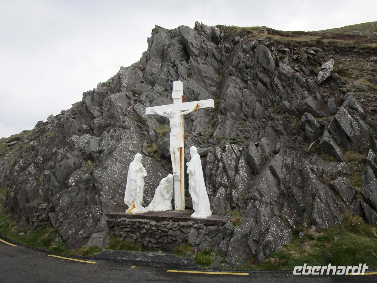 Unsere nächste Station ist der nach Lourdes und Fatima wichtigste Marienwallfahrtsort in Europa, nämlich Knock. Hier pilgern seit dem Ende des 19. Jh. jährlich 1,5 Millionen Pilger hin, weil dort 15 Menschen eine Marienerscheinung an der Kirchenwand beobachtet hatten. Irland ist ja überwiegend katholisch und die Volksfrömmigkeit ist hier mit Händen zu greifen. In Knock war natürlich auch schon der Reisepapst Johannes Paul II sowie Mutter Theresa. Kanister zum Abfüllen des heiligen Wassers kann man je nach Größe für einen Betrag von 5-10 Euro auch gleich erwerben...