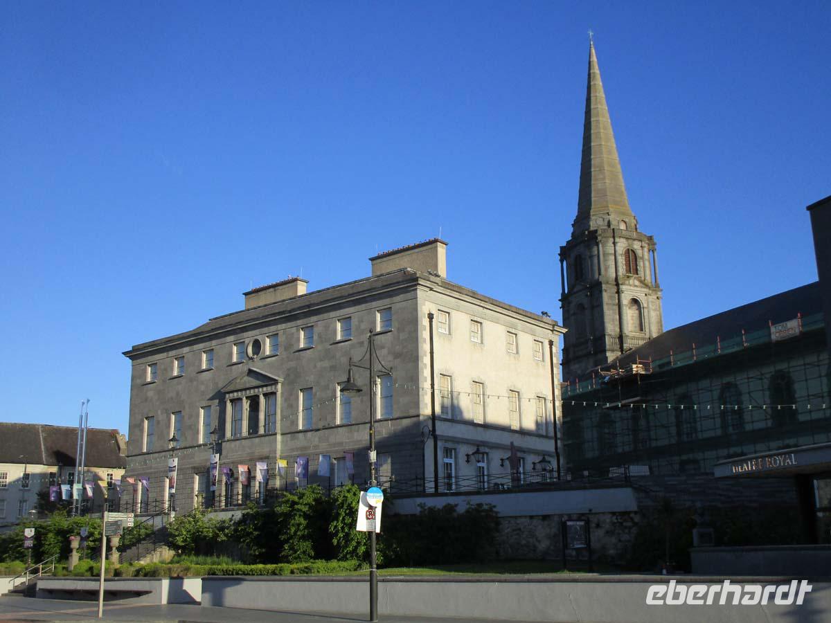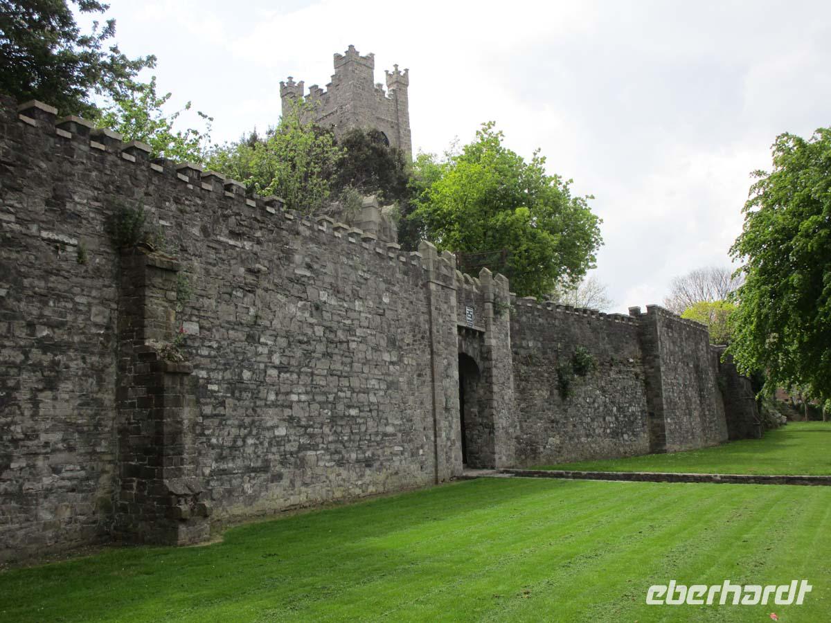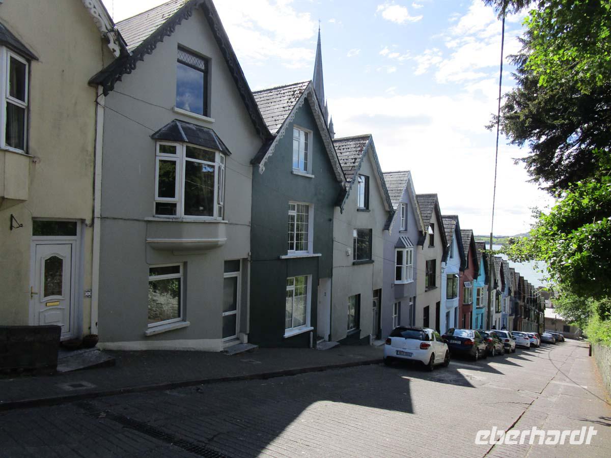 Zu unserem heutigen Ziel in Irlands Südosten ist es ein etwas weiterer Weg. Und so legen wir einen ersten Stop in Macroom ein, dessen Reste der alten Burg heute noch beeindruckend sind. Hier wurde u. a. Sir William Penn geboren, der Gründer des US- Staates Pennsylvania. Auf der Suche nach Toiletten führt uns unser Weg nach Cork hinein, wo wir am River Lee halten und in den Kaufhäusern oder Burger Kings doch auch saubere finden können. Cork ist nach Dublin die zweitgrößte Stadt der Republik Irlands und nennt sich auch selbstbewußt „Irelands real Capital", also die wirkliche Hauptstadt. Corks Seehafen befindet sich bei der kleinen Stadt Cobh, die trotz des immensen Booms von Cork und Umgebung ihr altirisches Flair weitestgehend bewahrt hat. Steile Straßen führen zur Promenade hinab und die Kathedrale St. Colman überragt mächtig mit ihrem 91,4 m hohen Turm die Landschaft. Es ist nach der Kathedrale von Limerick der zweithöchste Irlands. In Cobh legte die Titanic das letzte mal vor ihrer Fahrt in den Abgrund an, woran ein Museum ebenfalls erinnert. Schöne georgianische Häuserzeilen stehen an der grünen Promenade. Beides verleiht der Stadt ein einladend fröhliches Aussehen. Und weil Irland ohne Whiskey nicht denkbar ist, besichtigen wir heute auch eine der größten Destillerien des Landes, die Jamessons Destillery in Midleton. Bereits 1720 gegründet, hat sie sich auf Blended Whiskey spezialisiert. Wir lernen die Produktion kennen und auch den Unterschied zum schottischen Whiskey, dessen Malz mit Torfrauch getrocknet-, und welcher nur zwei- anstatt dreimal wie in Irland gebrannt wird. In Irland verzichtet man bewusst darauf, das Malz mit Rauch zusammen kommen zu lassen, was den irischen Whiskey milder und lieblicher macht. Nach einem Photostop in Dungarvan an dessen wuchtigen Castle aus dem Jahr 1185, erreichen wir am späten Nachmittag unser Hotel in Waterford. Es liegt total zentral am River Suir und vis a vis von Irlands ältestem Profanbau. Es ist ein Befestigungsturm aus der Wikingerzeit, aus dem 10. Jh. Der Reginaldstower. 914 n. Chr. wurde Waterford als Handelsplatz gegründet und hat auch heute noch große Reste der Stadtmauer. Zudem ist es bekannt für seine Glasfabrikation. Waterford Crystal liegt nur 100 m von unserem Hotel entfernt, direkt gegenüber des alten Bischofspalastes. Seit Beginn des 18. Jh. wird hier schönes Glas geblasen. Alles in der historischen Altstadt ist gut fußläufig zu erreichen, sodass man durch die Gassen auch nach dem sehr guten Abendmenü noch einen schönen Verdauungsspaziergang unternehmen kann.