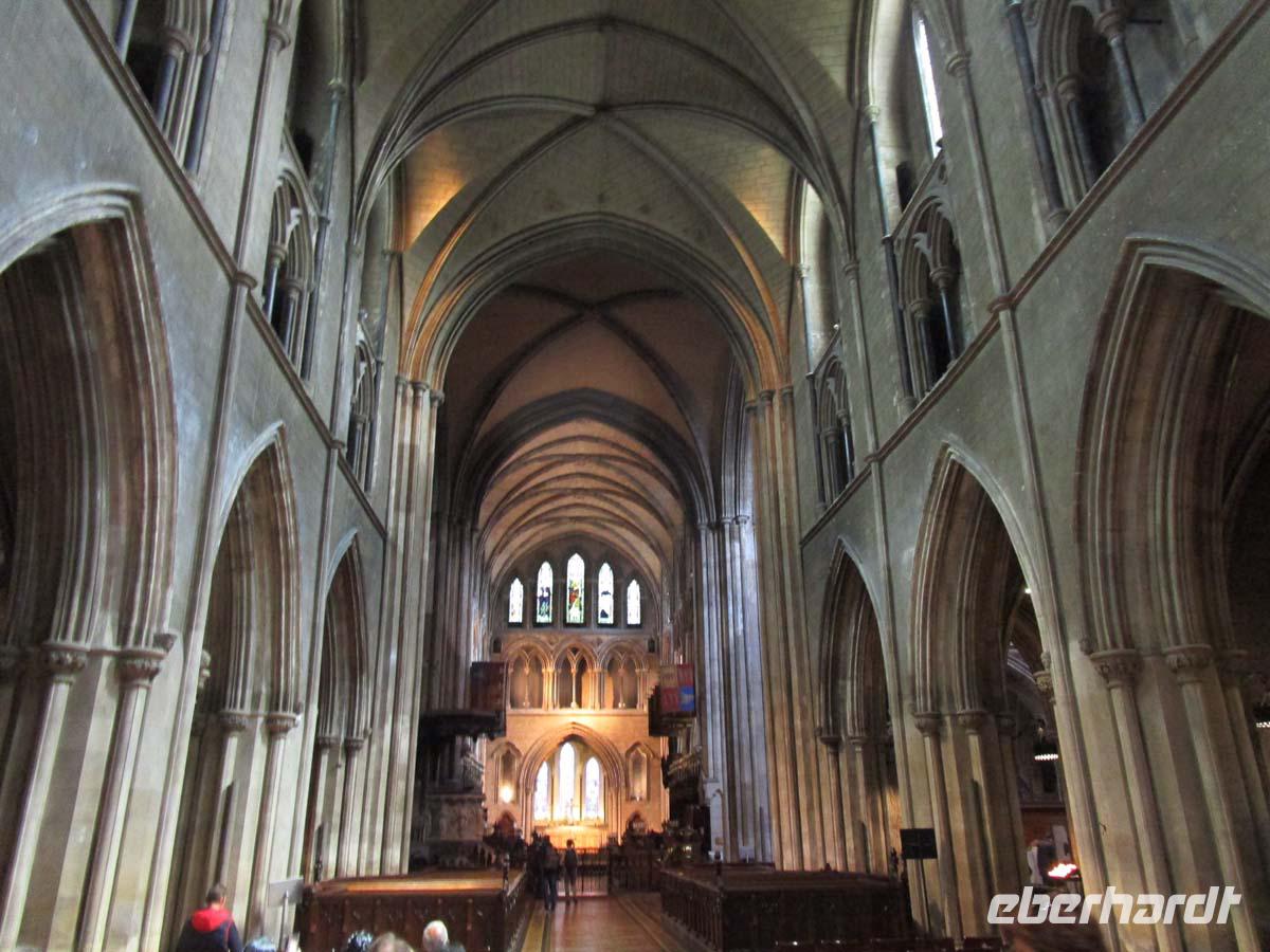 Auf unserem Weg in den Norden machen wir Station in Kilkenny. Es wartet mit einem riesigen Castle auf, in das es zwei unserer Gäste hineinzieht. Die Earls of Ormond haben dort von 1391 bis 1935 gewohnt. Alle anderen schlendern auf einer Rundtour durch die Stadt, sehen die enge Buttergasse, das Rathaus, das Shee-Almhouse und das Haus der der Hexerei beschuldigten Mrs. Kyteler aus dem 14. Jh. Zudem stehen wir vor der heute nicht mehr hier produzierenden Smithwicks Brauerei. Heute wird das Bier in Dublin bei Guinnes gebraut. An der Kathedrale aus dem 13. Jh. machen wir kehrt und lassen es uns bei Kaffee und Kuchen gut sein. In Dublin bereisen wir erst einmal den 808 Hektar großen Phoenix Park, der seinen Namen nicht von dem Vogel, sondern von gälischen Wort für klares Wasser hat. Einer der größten Stadtparks der Welt birgt einen netten viktorianischen „walled garden", den Präsidentenpalast, den Wellington Obelisk mit 65 m Höhe und das Papstkreuz, vor dem Johannes Paul II. 1979 eine Messe vor 1,5 Millionen Menschen las. Heute steht dort ein Eiswagen mit leckerem Gefrohrenen. Wir können schon gegen 14 Uhr einchecken und treffen danach unsere Gästeführerin. Dublin, dessen Name von den Wikingern stammt und schwarzer See bedeutet, ist eine pulsierende Metropole, die jedoch den Charme des 18. und 19. Jahrhunderts nicht verloren hat. Kreuz und quer geht es nun mit dem Bus durch die Stadt. Wir sehen die Christchurch Kathedrale und auch St. Patrik, das Trinitiy College und Stevens Green. Hier stehen auch große Viertel mit georgianischen Bürgerhäusern aus dem 18. Jh., welche die typischen „Dublin Doors" haben. Durch das Guinnes Viertel und an dem Fluß Liffey vorbei, geht es die Daniel o´Connel Street zum Garden of Rememberance und der Needle, einer über 120 m hohen Stahlspitze, die sich Dublin zum Millenium gönnen wollte, die dann aber doch erst 2003 fertig wurde. Am Szeneviertel Temple Bar und der City Hall vorbei kriechen wir meist durch den höllischen Dubliner Verkehr zurück zum Hotel. Nun nehmen wir Abschied von unserem irischen Fahrer David und nach dem Abendessen schon von einem weibl. Reisegast, welche sehr früh in Richtung Hamburg aufbricht. Wir aber können heute Abend noch die Pubs von Dublin unsicher machen, und/oder den gesamten morgigen Vormittag noch die Irische Kapitale entdecken.
