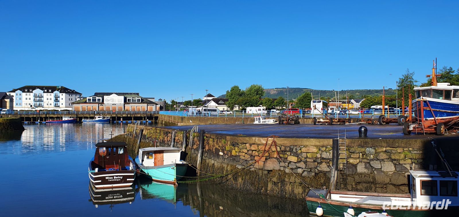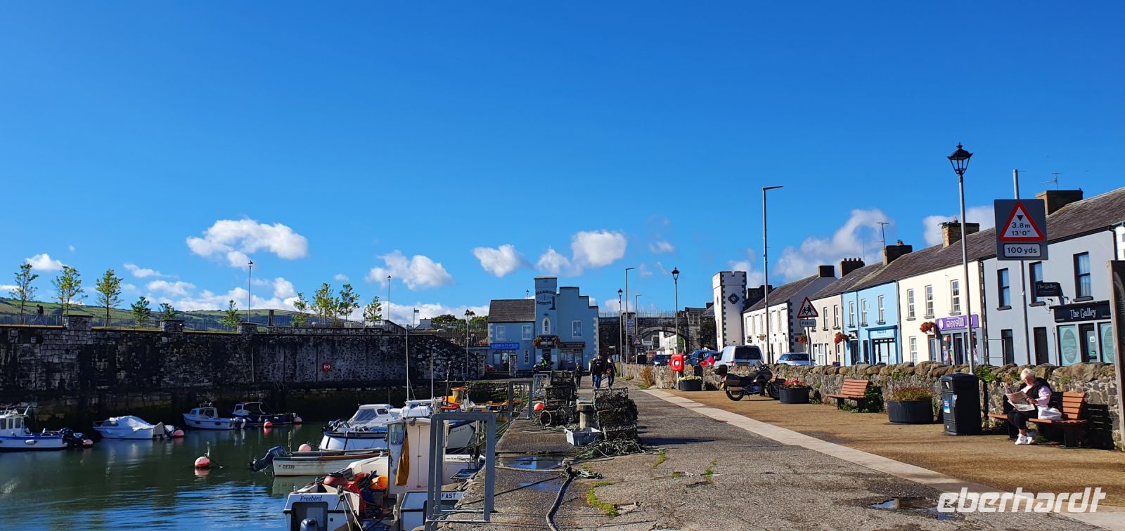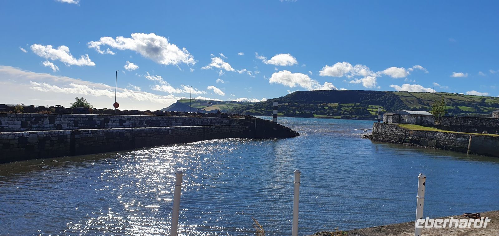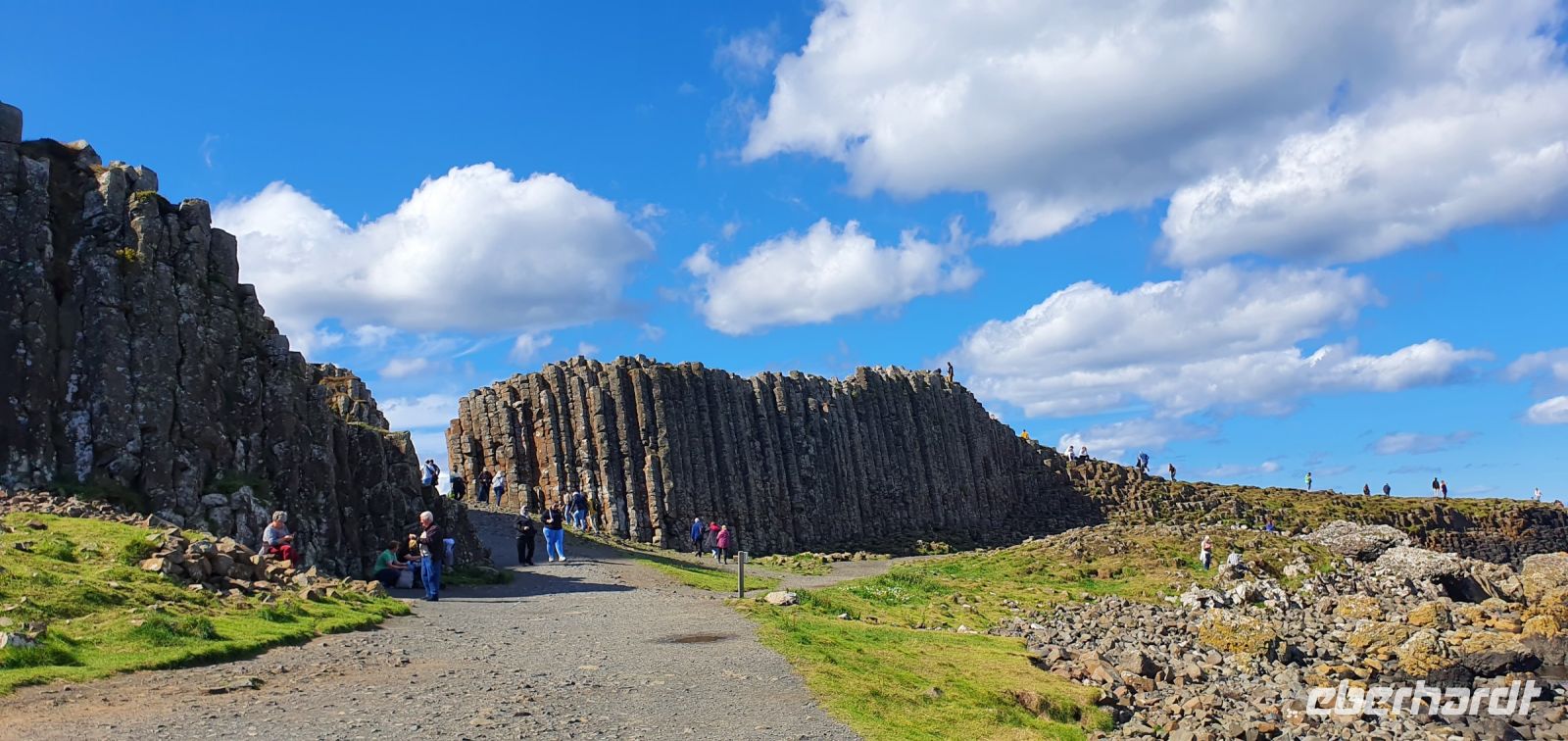 In der Nacht peitschte der Sturm den Regen gegen die Fenster und pfiff gehörig ums Haus. Noch zum Frühstück blickten wir alle sorgenvoll gen Himmel. Aber wie sagt man hier so schön: warte 5 Minuten oder fahre 5 Meilen weiter- und schon hatten wir schönsten blauen Himmel und Sonne zum Start unserer Reise in den Norden. In Carrickfergus ein erster Stopp. Das Castle hier am Hafen diente nach der Machtübernahme der Engländer den englischen Königen als Sitz, wir können am Hafen entlang spazieren und genießen die Morgensonne und den Blick auf die Belfaster Bucht. An der wunderschönen Antrim Coast geht es weiter und hinter jeder Biegung eröffneten sich neue, wundervolle Ausblicke auf die irische See und die Küste. In Carnlough halten wir wieder für eine Pause am Hafen- was für ein idyllischer Ort. Pünktlich zur angemeldeten Zeit dann erreichen wir Giants Causeway- den "Damm des Riesen", wie er auch genannt wird. Die Geschichte dazu hatte ich bereits im Bus erzählt und so starten wir ab Besucherzentrum- ausgerüstet mit Plänen und Audio Guides- zu unsere Erkundungs-Tour. Die Sonne strahlte dazu und ließ das Meer in funkelndem Blau erscheinen, die Felsen tauchte sie in helles Weiß und die Wiesen in sattes Grün mit hellroter Heide. Was für ein Erlebnis! So genossen wir die Zeit hier, durchschritten Finns Tor, fanden seinen Stiefel, den er auf der Flucht verloren hatte und warfen einen Blick auf die Orgel. Leider rauchte der Kamin nicht- er war also nicht zu Hause. Gern wären wir noch länger geblieben. Aber wir wollte ja noch viel mehr erleben, also fuhren wir am frühen Nachmittag zur "Schrägstrichstadt" Derry/ Londonderry. Seit dem 6. Jahrhundert existiert diese Stadt Derry, allerdings enteigneten die Engländer den irischen Adel und vermachten die Stadt 12 Londoner Zünften. Als Dank benannten diese die Stadt in Londonderry um. Um ihre neue protestantische Stadt herum bauten sie eine Stadtmauer. Die katholische Bevölkerung mußte ihre Häuser draußen im Moor- in den Bogsides- bauen. Die geschlossene Stadtmauer ist bis heute erhalten und so spazieren wir darauf entlang und erfahren noch einiges aus der Geschichte. Nun geht es zu letzten Stazion für heute: nach Letterkenny. Hier im Station House, im alten Bahnhof, ist unser Hotel. Wir beziehen unsere Zimmer und treffen uns zu einem leckeren Abendessen wieder. Auch hier erkunden einige von uns noch die Pub-Szene, alle anderen lassen den schönen Tag langsam ausklingen.