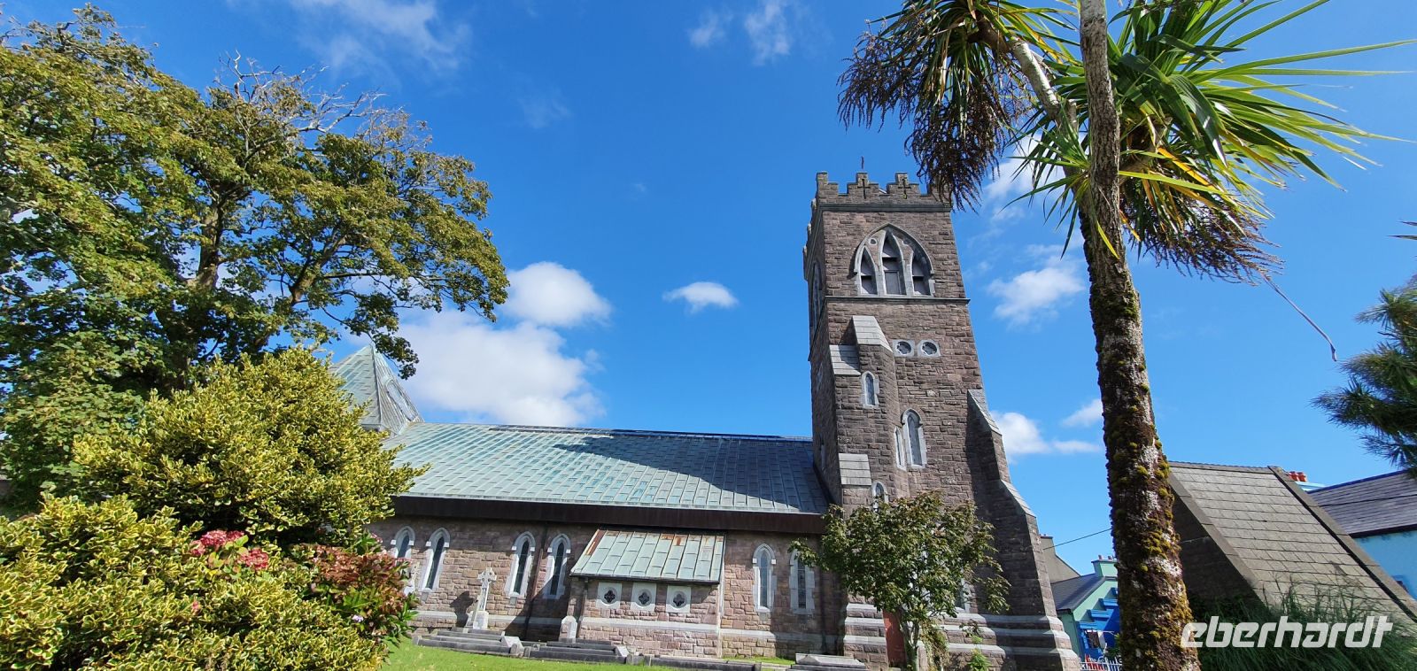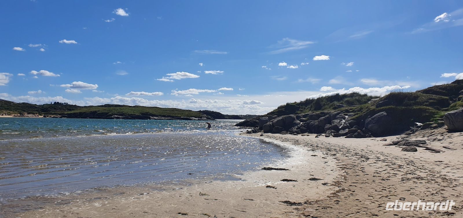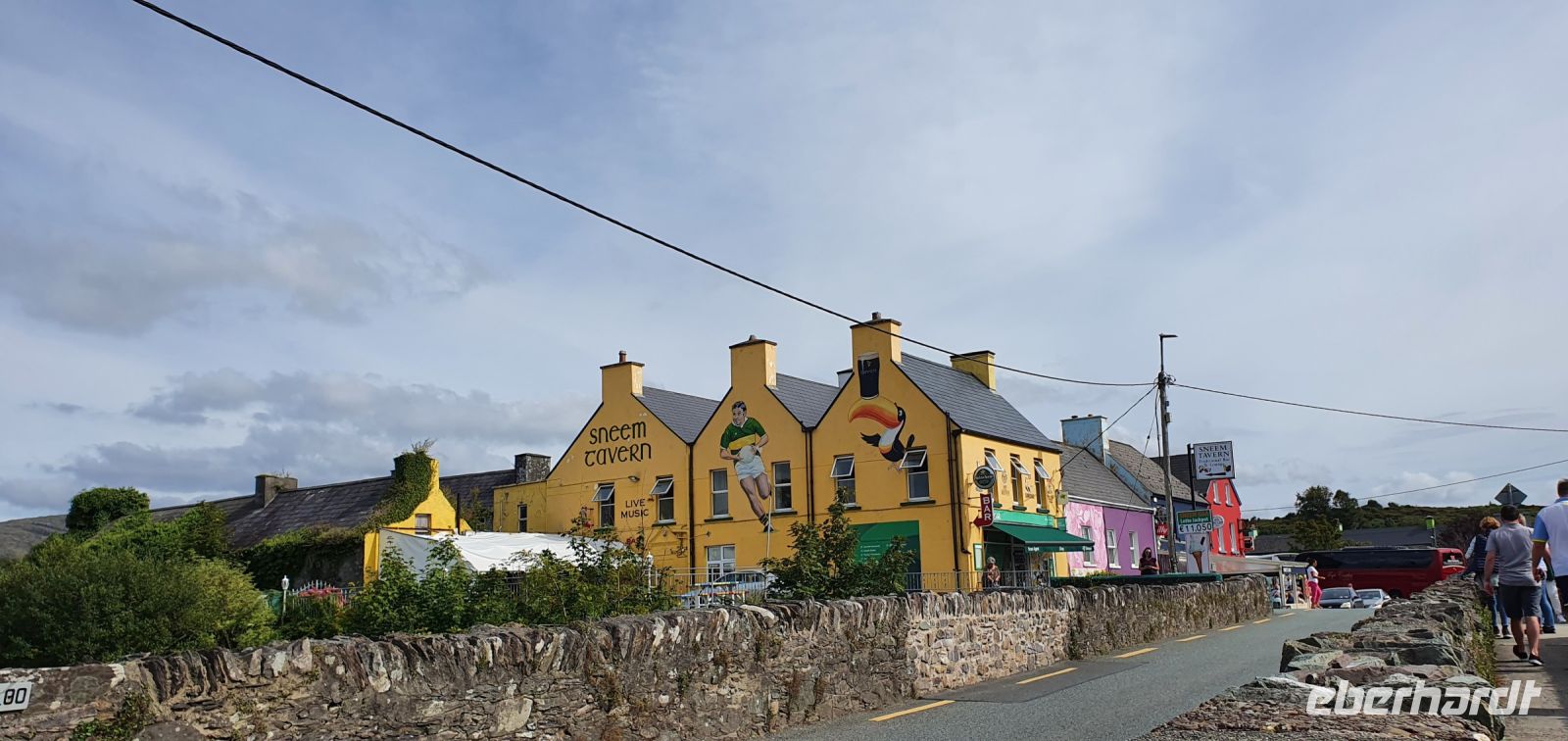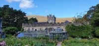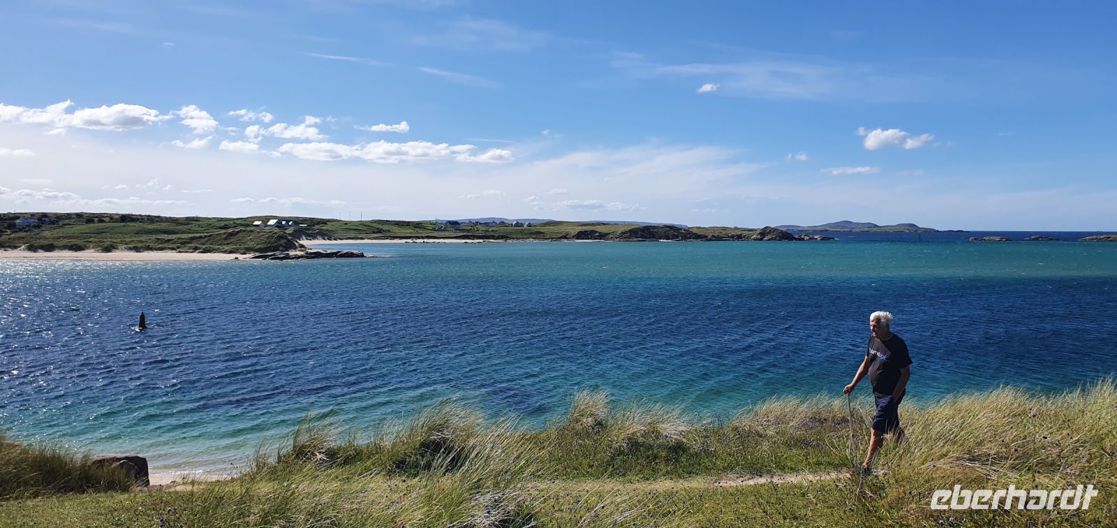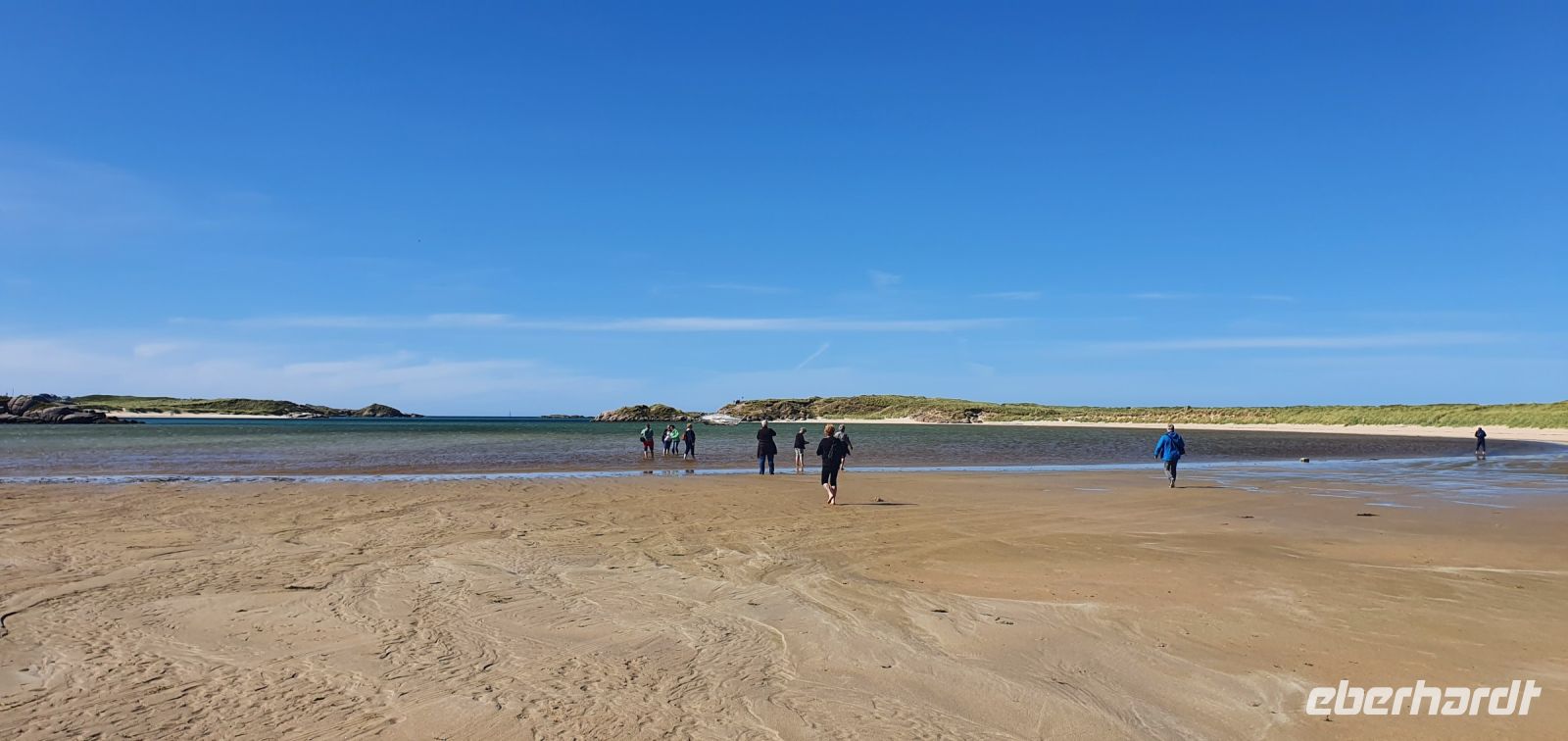 Auch heute morgen begrüßt uns die Sonne und wir starten nach einem guten Frühstück Richtung Norden. Der Glenveagh Nationalpark- der zweitgrößte der sechs Nationalparks Irlands- erwartet uns. Beeindruckend die Bergkette der Derryveagh Mountains. Ihre drei höchsten Gipfel gehören auch zum Nationalpark: der Mount Errigal mit 751 Metern, der Slieve Snacht mit 683 Metern und der Mount Mukish, der an den Tafelberg in Südafrika erinnert. Aber wir sind ja in Irland, und so genießen wir die Fahrt gen Norden. Am Visitor Center des Glenveagh Castle durchschreiten wir einen tollen bewachsenen Halbbogen und starten mit einem kleinen Film zu Geschichte des Areals. Ausgerüstet mit Übersichtskarten kann jeder nun entscheiden, wie er/sie zum nächsten Ziel kommt: mit dem Shuttle zum Castle und dann eine kleine Wanderung zum View Point oder gleich Wandern zum Castle. Wie auch immer-alle genossen die tollen Ausblicke und das Castle mit seinen Gärten im Nationalpark. Wie immer bei einer Rundreise wären wir gern länger geblieben- aber wir wollen ja noch mehr kennenlernen. Und so haben wir mit unserer Busfahrerin Heike eine "Auskennerin", sie wohnt ja schon lange hier, nur ihr Name erinnert an ihre deutsche Mutter. Und so fahren wir nicht gleich zurück sondern zum Strand von Bunbeg- ein Schiffswrack in der Bucht und Sonne satt- golden glänzt das Meer zu unseren Füssen und natürlich ist Zeit für ein Bad - wenn man möchte. Auch wer nur mit den Füssen im Wasser war- wer kann schon behaupten, im Atlantik gestanden zu haben! Wir auf jeden Fall - und so spazieren wir zurück zum Bus, der Besen hilft, den Sand im Bus in Grenzen zu halten und dann fährt uns Heike die Halbinsel entlang zu den schönsten Aussichtspunkten, die man sich vorstellen kann. Fuchsienhecken blühen immer noch und umrahmen quasi den Blick aufs Meer. Schöner geht es wirklich nicht. Mit diesen Eindrücken geht es zurück nach Letterkenny und ein gutes Abendessen im Hotel beschließt unseren gemeinsamen Tag. Nicht aber den unserer Nachtschwärmer- sie erkunden neue Pubs und werden fündig.