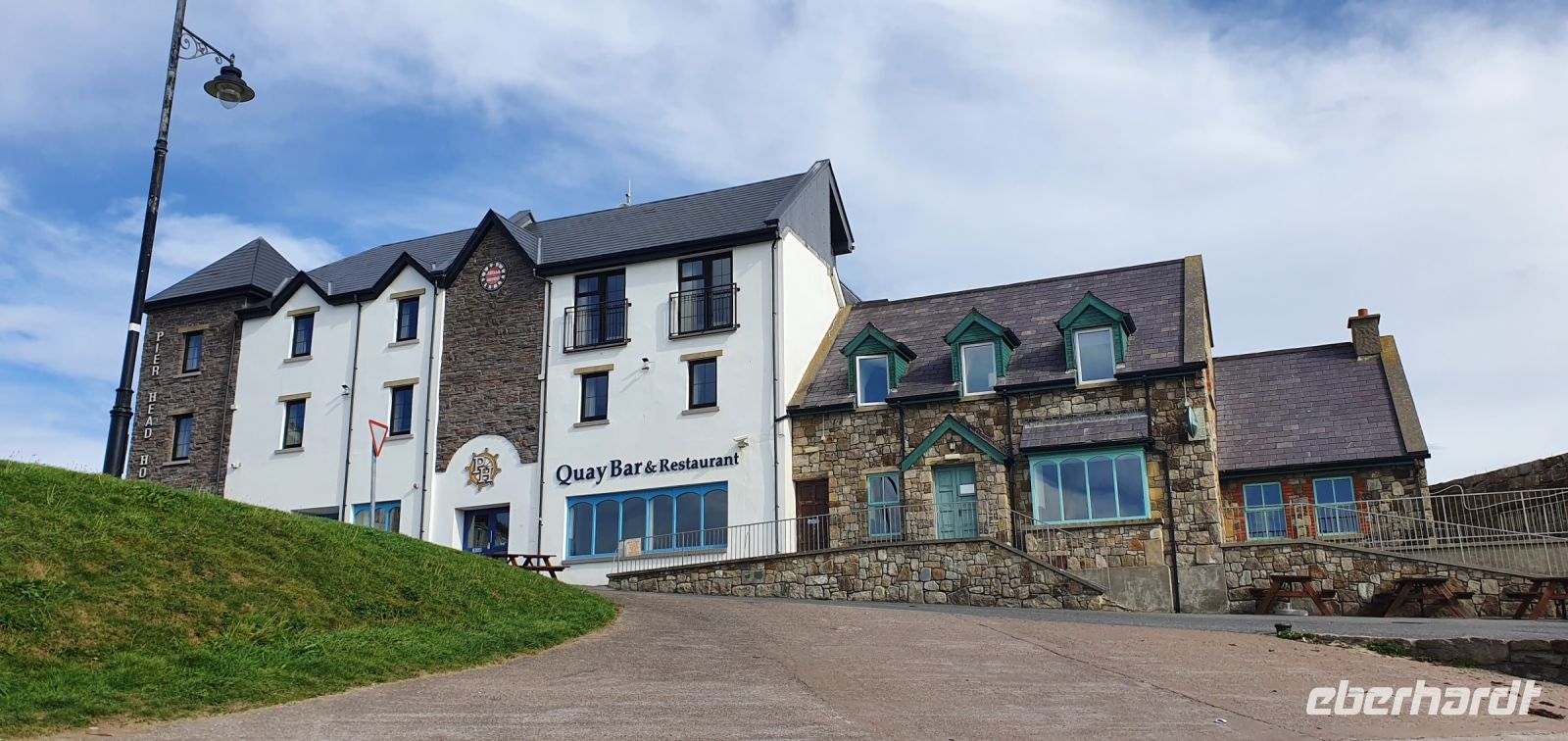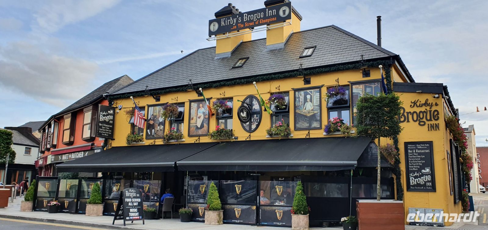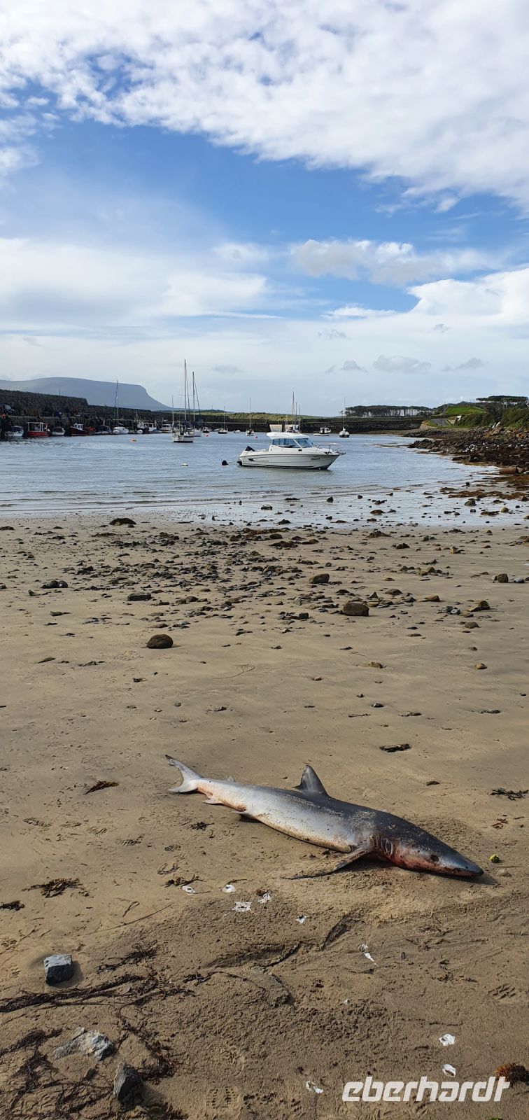 Heute verabschieden wir uns von unserem Hotel im alten Bahnhof in Letterkenny und fahren gen Süden. Das ist unsere neue Richtung auf dem Wild Atlantic Way, dem wir folgen. Mit 2500 Kilometern ist er die längste zusammenhängende Küstenstraße der Welt. Und auf direktem Weg geht es auch an die Küste, Mullaghmore ist unser erstes Ziel. Wie können am Hafen entlang spazieren und eine (unheimliche) Entdeckung machen: ein Hai liegt am Strand, mehr als einen Meter lang und leider nicht mehr am Leben. Für viele die erste Begegnung mit einem Hai. Dann folgen wir der Küstenstraße und stoppen natürlich am View-Point mit Blick auf das Classiebown Castle. Malerisch liegt es über dem Strand und den Buchten. Ein toller Ausblick. Und ein weiteres Highlight liegt vor uns, wir erreichen Sligo, die größte Stadt im Nordwesten Irlands. Nur 10 Kilometer entfernt erhebt sich das Wahrzeichen der Region: der Tafelberg Ben Bulben. Mit seinen 527 Metern ist er schon von weitem sichtbar. Dann tauchen wir ein in Geschichte pur: die Megalith-Gräber von Carrowmore erzählen spannende Geschichten über die frühe Besiedlung, den Umgang mit Ahnen und das Zusammenleben. Bei einem Spaziergang über die Anlagen erzählt uns Steve davon, er zeigt uns die Gräber, die Dolmen und Megalithe. Eines der Gräber ist "begehbar" gestaltet so dass wir einen Einblick über die Vorstellungen und Riten früherer Zeit bekommen. Natürlich darf die Geschichte von Königin Maeve oder Meadhbha nicht fehlen. Die Kriegerkönigin soll mit voller Rüstung, mit ihrem Lieblingsschwert und -Schild stehend begesetzt worden sein. Eine riesige Pyramide aus Steinen bedeckt ihr Grab auf dem Berg Knocknaera unweit von hier und ist schon von weitem sichtbar. Eigentlich nehmen ja viele Steine als Erinnerung mit- hier aber bringen sie eher Steine mit: die Kriegerkönigin soll keine Möglichkeit bekommen, je wieder aufzuerstehen. Wir verabschieden uns und setzen unsere Fahrt fort- Galway, das quirlige, bunte Städtchen im gleichnamigen County erwartet uns. Unweit des Eyre Square können wir parken und wer möchte spaziert mit mir Richtung Kathedrale. Es macht großen Spass durch die bunten und geschmückten Straßen zu laufen, dem Treiben rund um Geschäfte und Cafes zuzusehen und das Flair zu genießen. Ein kleiner Abstecher muss sein: zur St. Nicolas Kirche. Hinter ihr steht die Ruine eines Hauses, eigentlich nur noch eine Wand mit einem Fenster. Hier soll eine Redewendung ihren Ursprung haben: nämlich dass Bürgermeister Lynch seinen Sohn, der wegen Mordes verurteilt war eigenhändig aufknüpfte, weil sich niemand sonst traute... der Rest ist Geschichte. Am Fluss Corrib entlang geht es schließlich über die Salmon Weir-Bridge, die Lachs-Wehr -Brücke zur Kathedrale. Hier kann man oft Angler in ihren Fischerhosen sehen, wie sie mitten im Fluss stehen und Lachse angeln. Die Kathedrale können wir schon von weitem sehen. Ihr grünes Kuppeldach leuchtet weithin. Von innen leuchtet es in sattem Blau. Der Boden ist mit Marmor in unterschiedlichen Farben ausgekleidet- alle stammen aber aus Irland. Die restliche Zeit genießt jeder wie er/sie möchte und am späten Nachmittag treffen wir uns wieder am Bus. Heike bringt uns nach Gort- hier werden wir für die nächsten Nächte bleiben: im Lady Gregory Hotel.