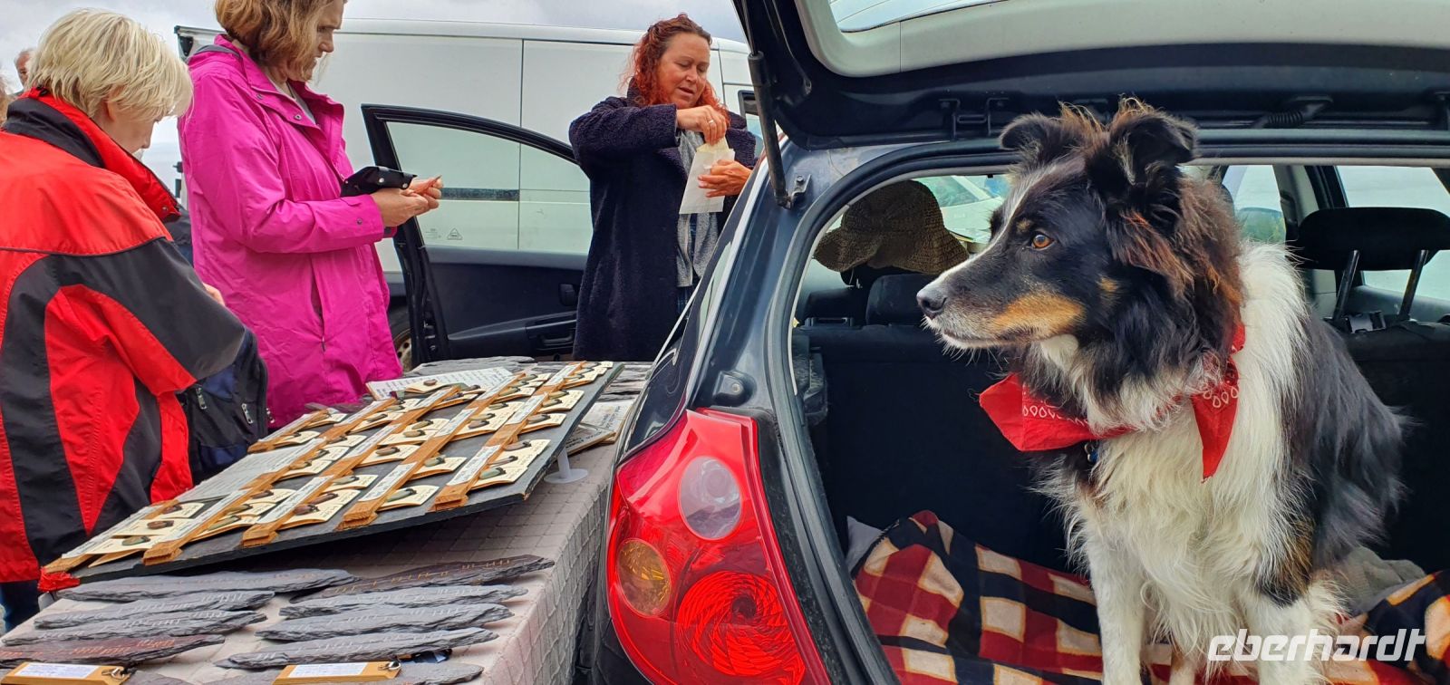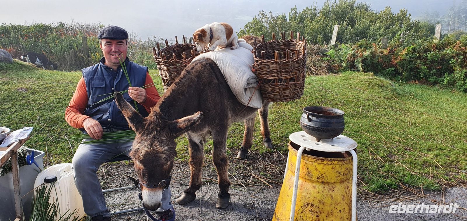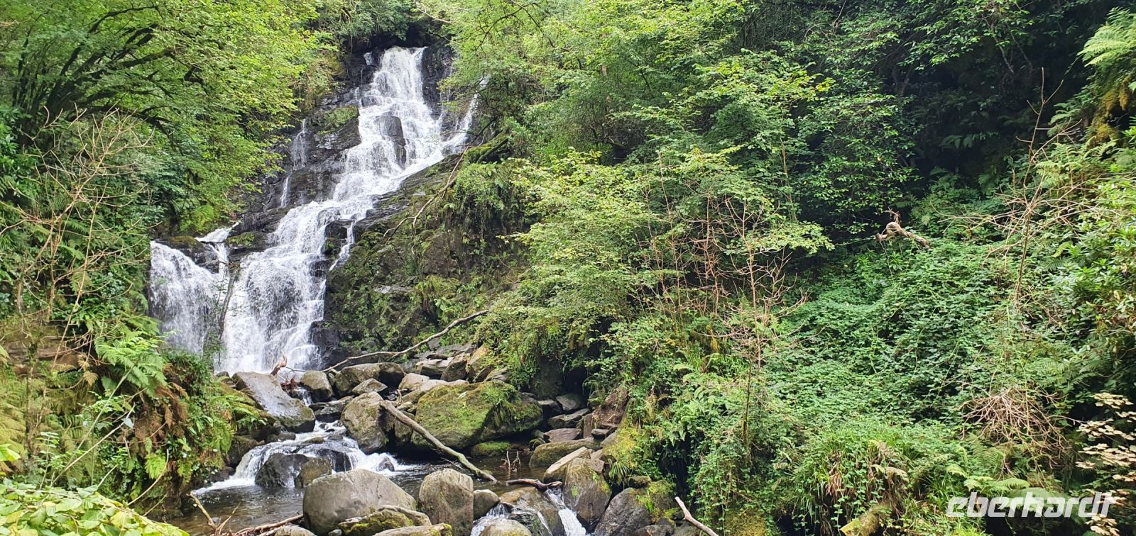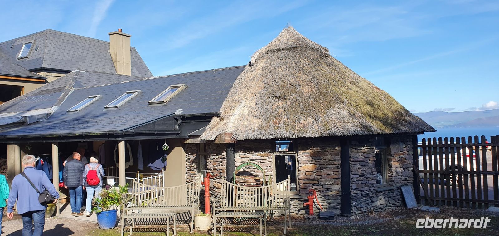 Heute lockt der berühmte Ring of Kerry. Via Castlemain geht es zunächst durch Killorglin. Hier steht an der Brücke ein ganz besonderes Denkmal: für Puck- den Ziegenbock! Einmal im Jahr wird tatsächlich ein wilder Ziegenbock für 3 Tage zum König gekrönt und Puck Fair gefeiert. Am Aussichtspunkt am River Caragh werden wir von Bauern mit ihrem Esel und Hündchen und einem Antik-Stand erwartet. Wir sind schon ziemlich weit oben und nur langsam hebt sich hier der Morgennebel. So zaubert er wundervolle Bilder in die Landschaft. In Kells schließlich erwartet uns Brendan mit seinen Hütehunden. Er demonstriert uns unterhaltsam, wie die Hunde die Schafe punktgenau zum Ziel bringen. Wir genießen die Sonne und sie Aussicht auf die Bucht bevor es weitergeht. Wir folgen dem Wild Atlantic Way und machen einen besonderen Stopp: am Skellig Chocolate Shop. Hier wird diese Köstlichkeit hergestellt, wir können verschiedene Geschmacksrichtungen probieren und natürlich landet etliches davon in unseren Taschen. Einige von uns spazieren hinunter zum Strand und ganz Mutige baden auch. Skellig Michael- die Inseln im Atlantik wurden auch durch die Star Wars Saga berühmt, die hier teilweise verfilmt wurden. Sie geben der Schokolade übrigens ihren Namen. Unsere Fahrt führ uns weiter nach Waterville. Auch hier ein ganz besonderes Denkmal: Charlie Chaplin. Er hat diesen Ort geliebt und kam oft zur Sommerfrische hierher. Ihm folgten bald viele Stars und Sternchen Hollywoods. Wir können unsere Mittagspause hier verbringen, bummeln an der Promenade oder am Ufer der Bucht. Wir folgen der Küstenlinie und stoppen natürlich am Chom a Chiste Aussichtspunkt. 3 Inseln erheben sich im Altlantik- der Bulle, die Kuh und das Kalb genannt- nach den hier vorbeiziehenden Walen. Immer wieder haben wir auf der Fahrt wunderschöne Ausblicke auf das Land und das Meer. In Sneem stoppen wir wieder für einen kleinen Rundgang. Viele spazieren zur Brücke über den Sneem, spektakulär rauscht der Fluss hier über Felsen und Steine. Der bunte Marktplatz lädt zum Bummeln ein und auch das Eis schmeckt. Unser Eberhardt- Reisebär bekommt einen neuen Freund: Ein Bär mit grünem Pullover und weißen Lämmern drauf :-) Weiter geht es entlang der Küstenstraße bis Kenmare und zurück ins Landesinnere. Hier in den Bergen gibt es einen Aussichtspunkt, der Ladys View genannt wird. Königin Victoria war hier mit ihren Hofdamen und sie sollen ob der Schönheit des Ortes hoch entzückt gewesen sein. Auch wir genießen den Blick auf die Seen und ein von mir heimlich vorbereitetes Picknick: Käse aus der Region mit Trauben, Brot, Tomaten und natürlich Keksen. Am späten Nachmittag erreichen wir den Torc Wasserfall. Ein kurzer Spaziergang und schon stehen wir davor. Idyllisch stürzt hier das Wasser aus mehr als 50 Metern Höhe hinunter. Über Killarney geht es schließlich zurück zum Hotel und ein leckeres Abendessen beschließt diesen schönen Tag