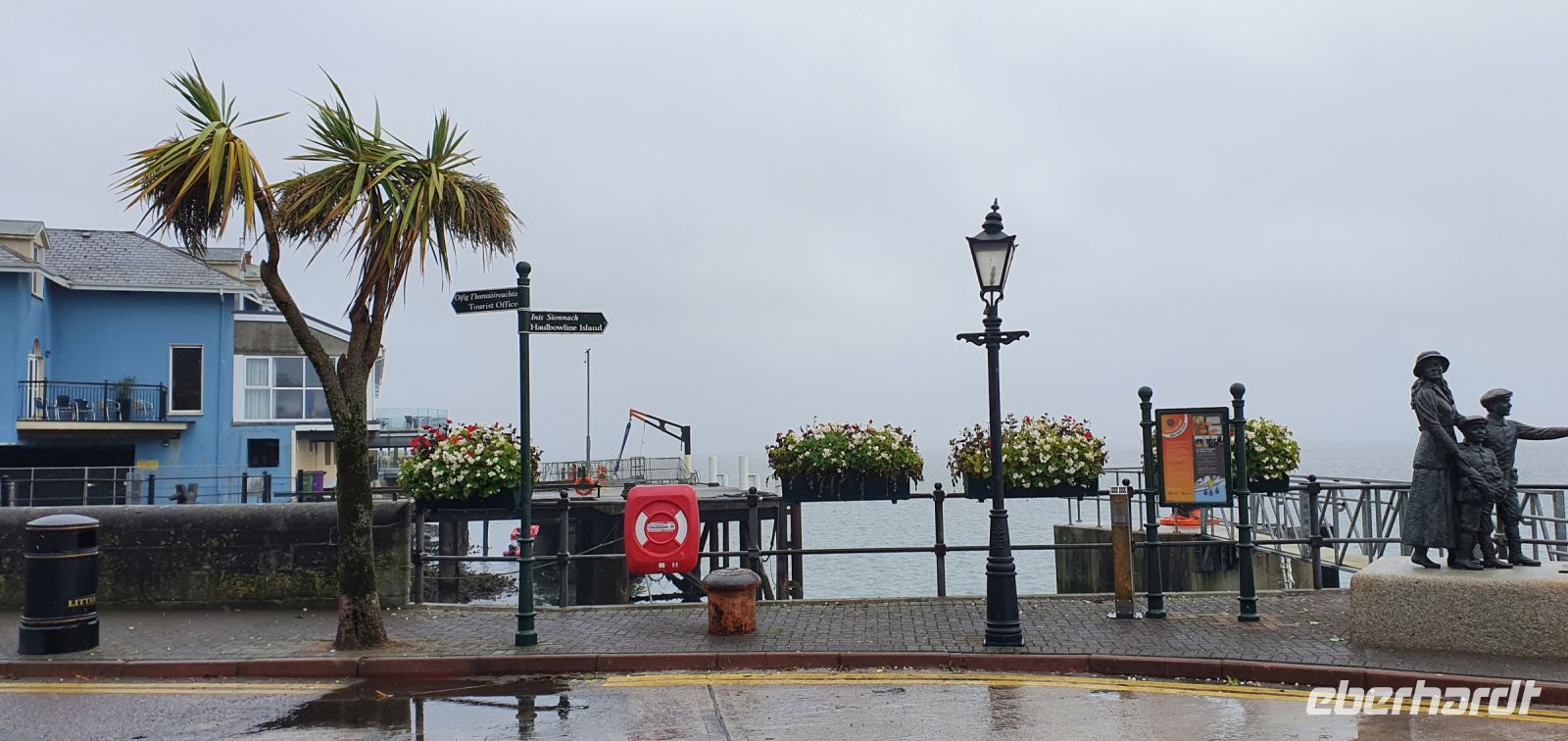 Wieder heißt es Koffer laden, unsere Rundreise erreicht seinen südlichsten Punkt: Cobh. Mit einer Servicepause erreichen wir schließlich die historische Hafenstadt, die an einem der größten Naturhäfen der Welt liegt. Leider nieselt es heute ständig und so besuchen viele das Geschichtsmuseum im viktorianischen Museum. Es erinnert u.a. an das Auslaufen der Titanic, die hier die letzten Passagiere an Bord nahm. Der Rest ihrer Geschichte ist bekannt. Vor dem Cogb Heritage Center erinnert ein Denkmal an Anni Moore. Sie war die erste Einwanderin, die in Ellis Island registriert wurde. Auch sie verließ Irland mit ihren Brüdern von Cobh aus. Wir hatten noch Zeit für ein wenig Bummeln an der Promenade, leider mit sehr verregneter Sicht auf den Hafen und das Meer. Heike fuhr uns dann nach Midleton. Hier hat eine der bekanntesten Destillerien Irlands seinen Sitz: Jameson. Während einer kurzweiligen Führung erfuhren wir vieles über die Herstellung dieses besonderen Whiskeys. Auch über die Produktions- und Lebensbedingungen der Menschen hier. Schon in Dublin, wo Jameson einst gegründet wurde, wurde viel Augenmerk auf gute Lebensverhältnisse und gelegt. Natürlich durfte eine Verkostung nicht fehlen und so probierten wir einen amerikanischen Boubon, einen schottischen Torf-Whisky und einen Jameson. Da fiel die Entscheidung, welcher am besten war, nicht schwer. Die freie Zeit nutzen viele für einen kleinen Drink an der Bar, die Eintrittskarte war schließlich ein Ticket für ein Freigetränk, oder zum Einkaufen im Shop. Am Nachmittag hieß es dann: weiterfahren. Wir folgten der Küstenstraße und kamen schließlich an unserem Ziel für heute an: Waterford. Leider regnete es immer noch so dass wir auf einen Spaziergang an der (sehenswerten) Promenade verzichteten und lieber im Hotel blieben. Beim gemeinsamen Abendessen ließen wir den Tag noch einmal Revue passieren und verabschiedeten uns: bis morgen.