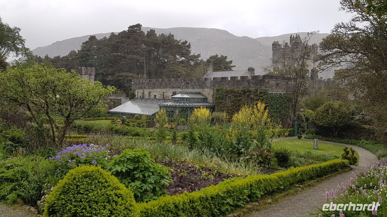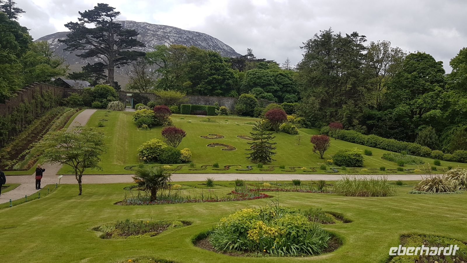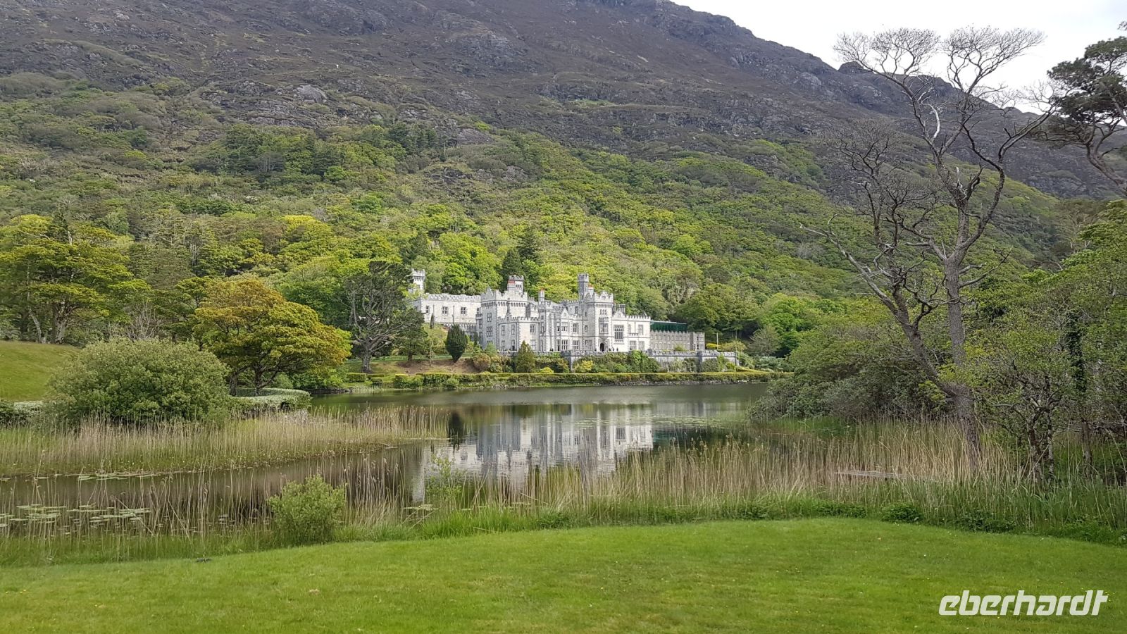Heute erwartete uns ein Tag mit atemberaubender Landschaft. Nicht weit hinter Galway erreichten wir Connemara. Weite Gletschertäler werden umrahmt von mächtigen Bergen, die sich in den zahlreichen malerischen Seen spiegeln. An mehreren Stellen hielt unser Bus, damit wir besonders schöne Fotos von dieser beeindruckenden Landschaft machen konnten. Am Mittag erreichten wir schließlich Kylemore Abbey nicht weit vom Nationalpark Connemara entfernt. Das heutige Benediktinerinnenkloster war einst als Schloss direkt an einem Seeufer errichtet worden. Die Lage des Anwesens ist traumhaft. Wir genossen die herrlichen Ausblicke in eine atemberaubende Landschaft. Im Souvenirgeschäft werden auch Produkte aus hauseigener Herstellung angeboten, zum Beispiel Seifen und Schokolade.