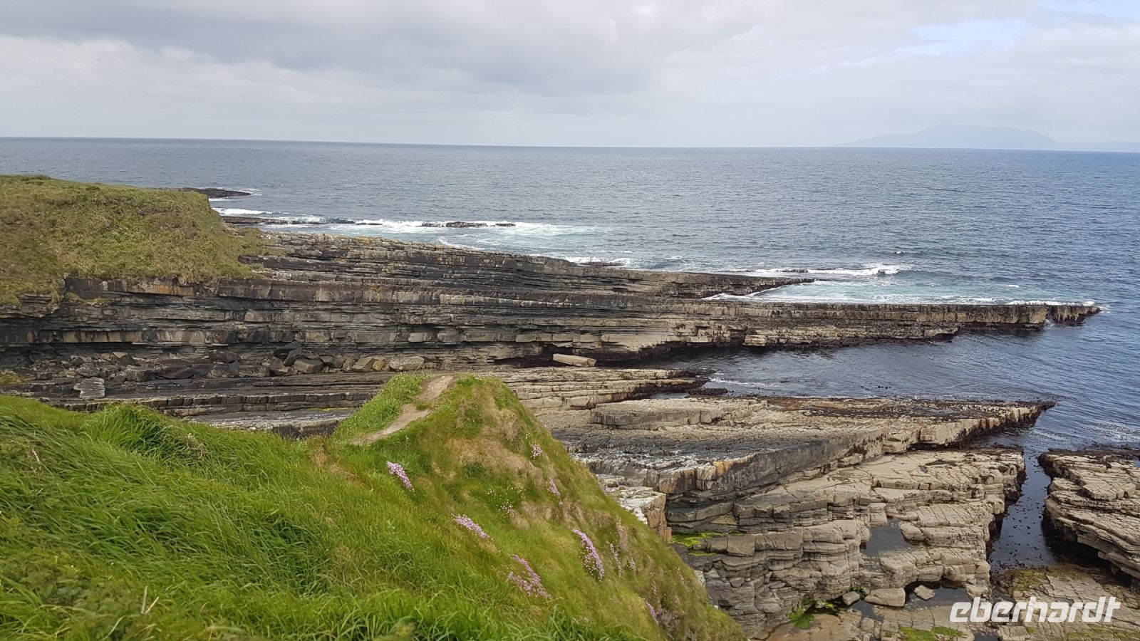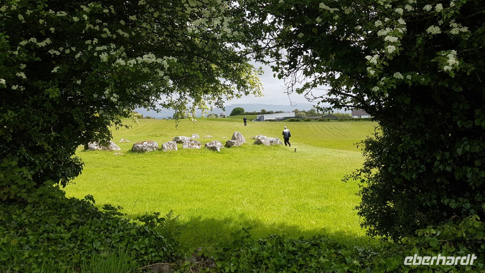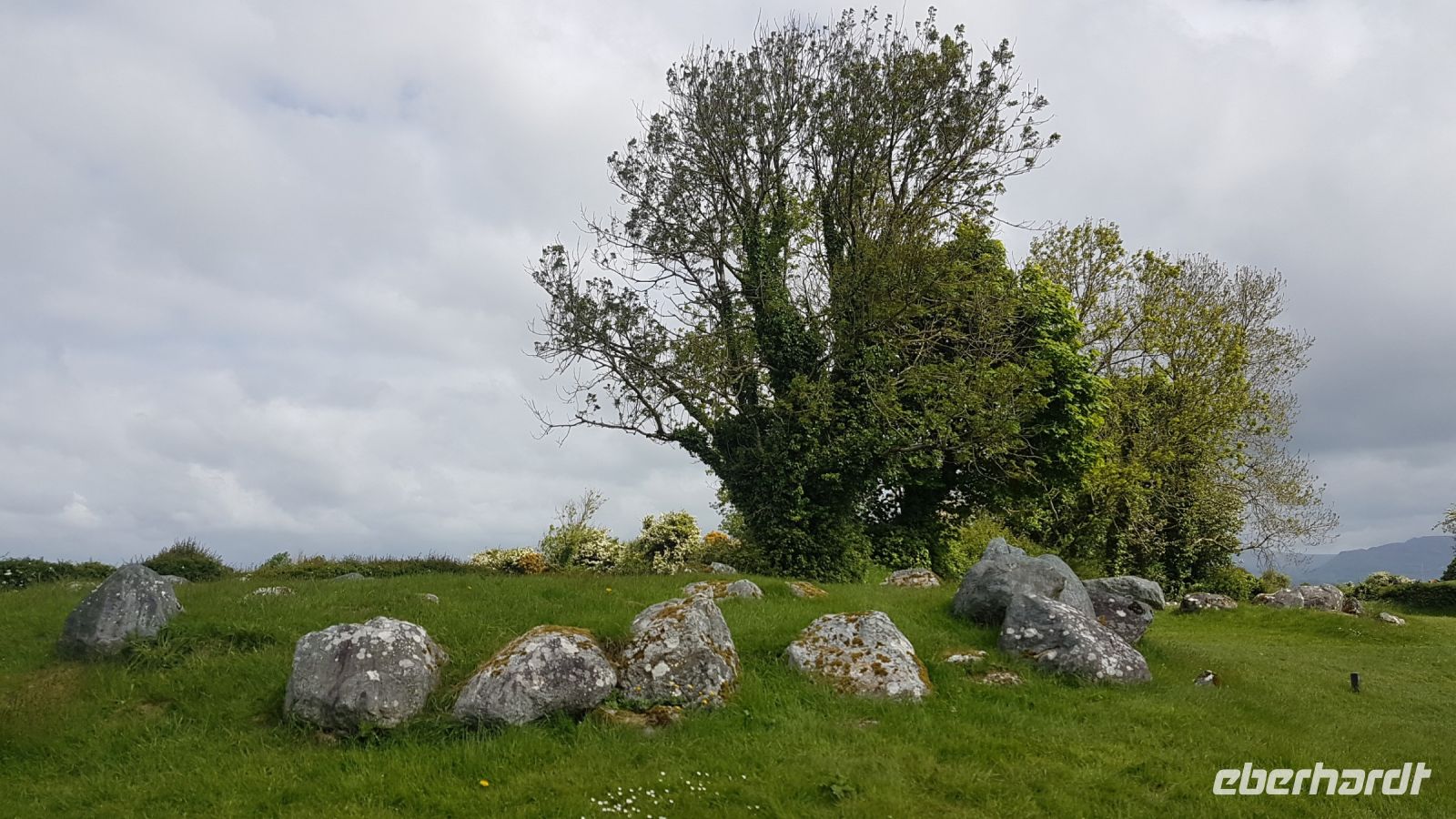 Am Morgen verließen wir Letterkenny in Richtung Süden. Der erste Halt fand am Mullaghmore Head statt, dort erlebten wir, wie die Wellen des Atlantik an die Felsen schlagen, über denen sich sattgrüne Wiesen erstrecken. Wir genossen diese beeindruckende Landschaft. Danach passierten wir Drumcliff, wo der berühmte irische Dichter William Butler Yeats begraben liegt. Im Jahr 1923 wurde ihm - als erstem Iren - der Literatur-Nobelpreis verliehen. Auch ein altes Hochkreuz und die Reste eines Rundturms einer früheren Abtei konnten wir sehen. Der kleine Friedhof liegt zu Füßen des weithin sichtbaren und beeindruckenden Tafelbergs Ben Bulben. Danach fuhren wir zu den Megalith-Steigräbern in Carrowmore. Jahrtausende alte Gräber vermitteln uns noch heute einen Bezug zu den Menschen dieser Epoche. Wir spazierten zwischen den Steingräbern umher und erfuhren auf einem Informationsblatt die wichtigsten Details eines jeden Grabes. Dort verbrachten wir auch unsere Mittagspause.
