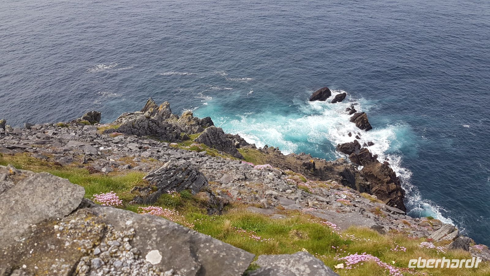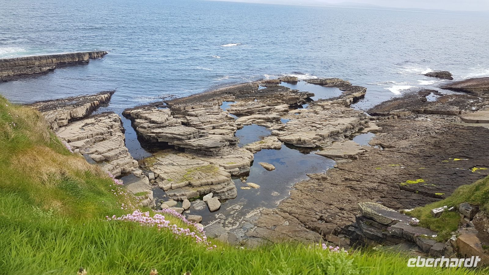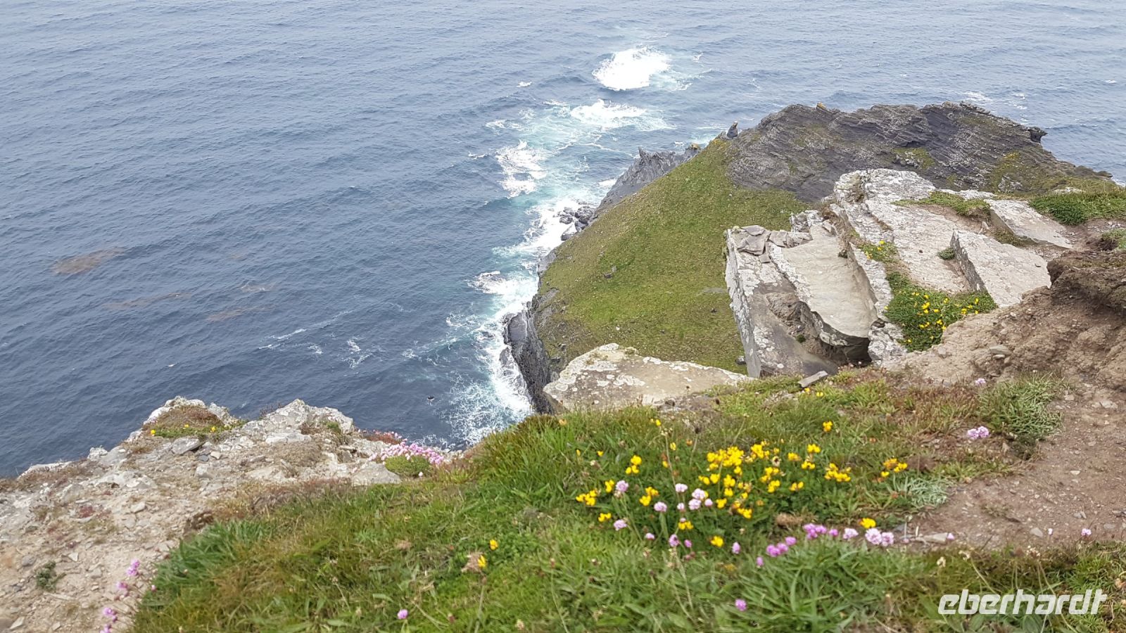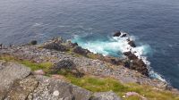 Am Morgen verließen wir Letterkenny in Richtung Süden. Der erste Halt fand am Mullaghmore Head statt, dort erlebten wir, wie die Wellen des Atlantik an die Felsen schlagen, über denen sich sattgrüne Wiesen erstrecken. Wir genossen diese beeindruckende Landschaft. Danach passierten wir Drumcliff, wo der berühmte irische Dichter William Butler Yeats begraben liegt. Im Jahr 1923 wurde ihm - als erstem Iren - der Literatur-Nobelpreis verliehen. Auch ein altes Hochkreuz und die Reste eines Rundturms einer früheren Abtei konnten wir sehen. Der kleine Friedhof liegt zu Füßen des weithin sichtbaren und beeindruckenden Tafelbergs Ben Bulben. Danach fuhren wir zu den Megalith-Steigräbern in Carrowmore. Jahrtausende alte Gräber vermitteln uns noch heute einen Bezug zu den Menschen dieser Epoche. Wir spazierten zwischen den Steingräbern umher und erfuhren auf einem Informationsblatt die wichtigsten Details eines jeden Grabes. Dort verbrachten wir auch unsere Mittagspause.