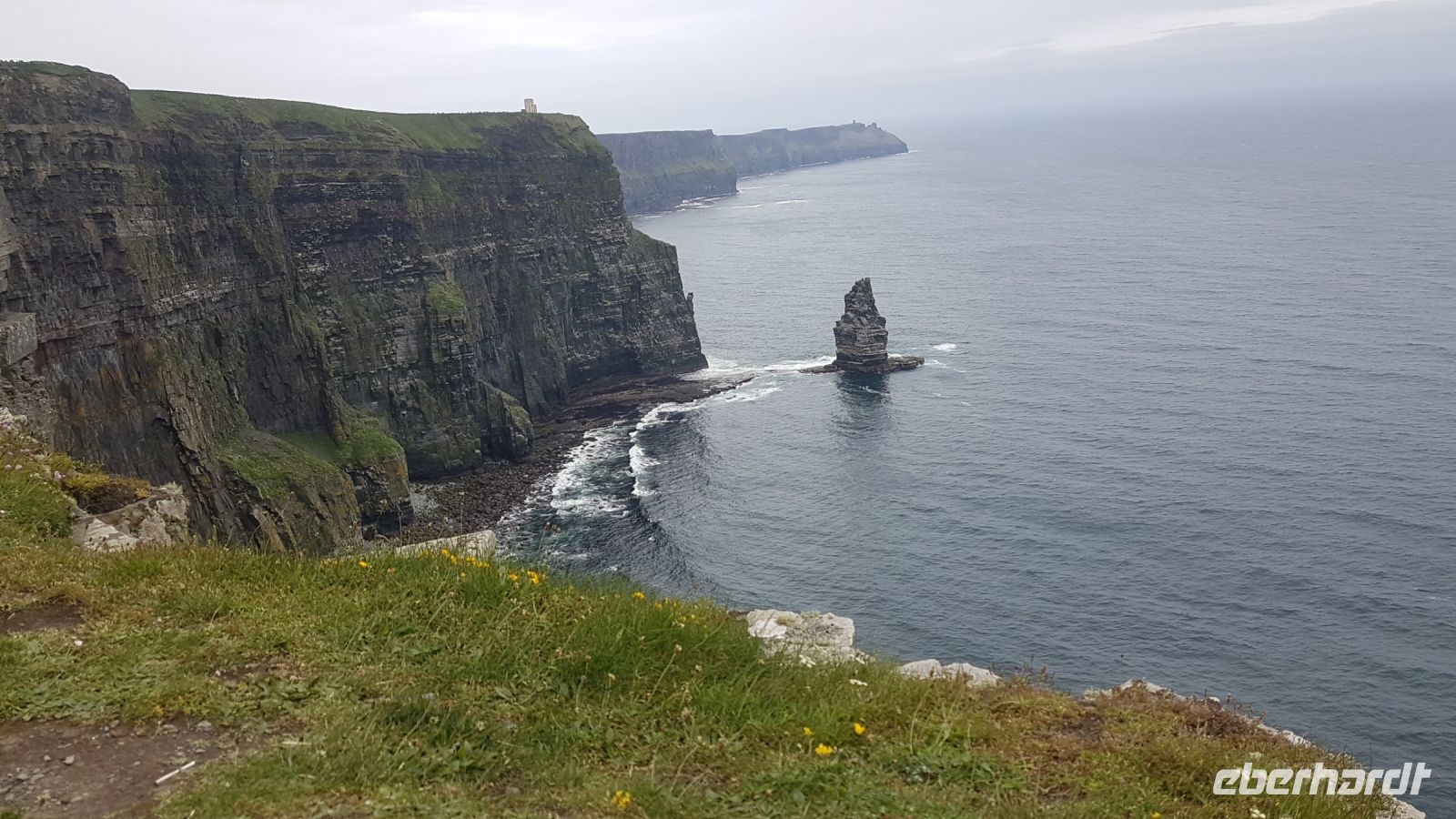 Nach einigen weiteren Kilometern erreichten wir schließlich eine der bedeutendsten Sehenswürdigkeiten im Land: die Cliffs of Moher. Wir erkundeten die weltberühmten Felsen von verschiedenen Aussichtspunkten aus. Die imposanten Klippen erheben sich hier in einer Höhe von über 200 Metern aus dem Meer. Den Nachmittag verbrachten wir in Bunratty. In diesem Ort gibt es eine alte Wehrburg, die aus dem 15. Jahrhundert stammt. Wir erkundeten die schmalen Gänge und Treppen, sahen prähistorische Hirschgeweihe. Im liebevoll neben dem Castle angelegten Folkpark erfuhren wir viel über das frühere Leben der Iren in dieser Gegend. Gebäude aus verschiedenen Epochen wurden hier wieder aufgebaut, alte Handwerkskunst wird vorgestellt und zahlreiche Haustiere wie Ziegen, Schweine und Hühner werden - zur Freude der Besucher - gehalten.