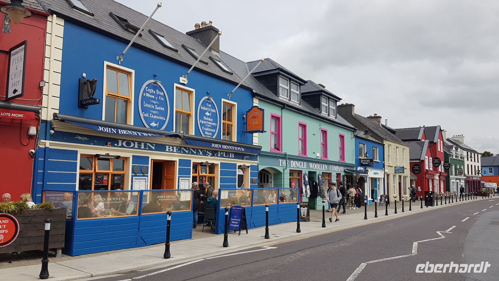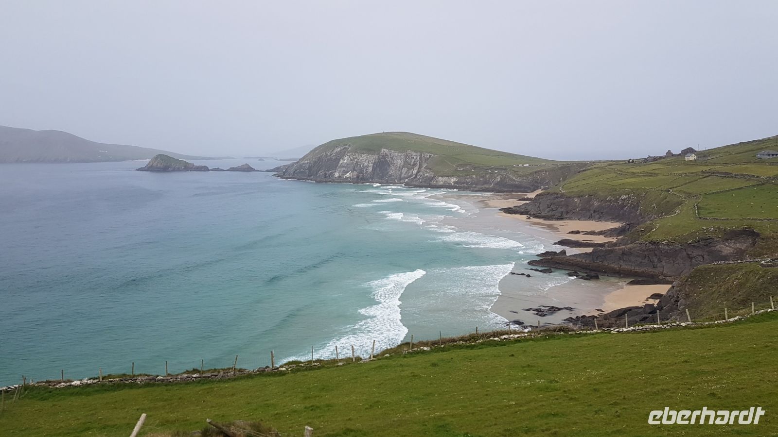 Nicht lange nach unserem Frühstück in Tralee trafen wir uns wieder in unserem Bus. An der Blennerville Windmühle legten wir den ersten Stopp dieses Tages ein für Fotos. Den weiteren Tag verbrachten wir auf einer vergnüglichen Rundreise über die Dingle Halbinsel bei sehr schönem Wetter. Wir sahen sogenannte Bienenkorbhütten, das sind frühchristliche Behausungen der Bauern in dieser Gegend. Auch wunderbare Ausblicke boten sich uns vom Slea Head Drive aus, das ist eine Küstenstraße, von der wir die Blasket-Inseln sehen konnten. Im hübschen Städtchen Dingle verbrachten wir unsere Mittagspause, einige probierten Fish & Chips oder leckere Eiscreme. Unser letzter Halt auf der Halbinsel war am Strand von Inch Beach, wo einige Windsurfer auf die beste Welle warteten. Wir spazierten über den breiten Sandstrand und genossen den Nachmittag am Meer. Den Abend verbrachten wir wieder in unserem Hotel Brandon in Tralee.