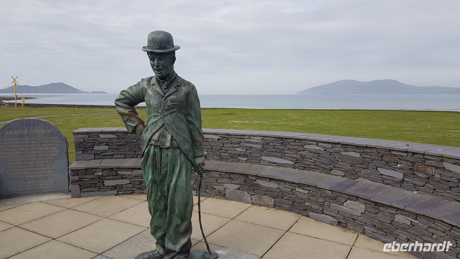 Heute stand der berühmte Ring of Kerry auf unserem Programm. Bei schönem Wetter konnten wir diese traumhafte Küstenstraße genießen. Mehrmals hielten wir an für Fotos von der atemberaubenden Landschaft. Von Gletschern geformte Berge lösen sich ab mit Tälern, Seen, malerischen Buchten, breiten Stränden und dem Blick auf den Atlantik. Am späten Vormittag statteten wir dem berühmten Charlie Chaplin einen Besuch ab. In Waterville steht seine Statue, mit der wir uns gern fotografieren ließen. Er ist hier in guter Erinnerung, oft verbrachte er in Waterville erholsame Tage.