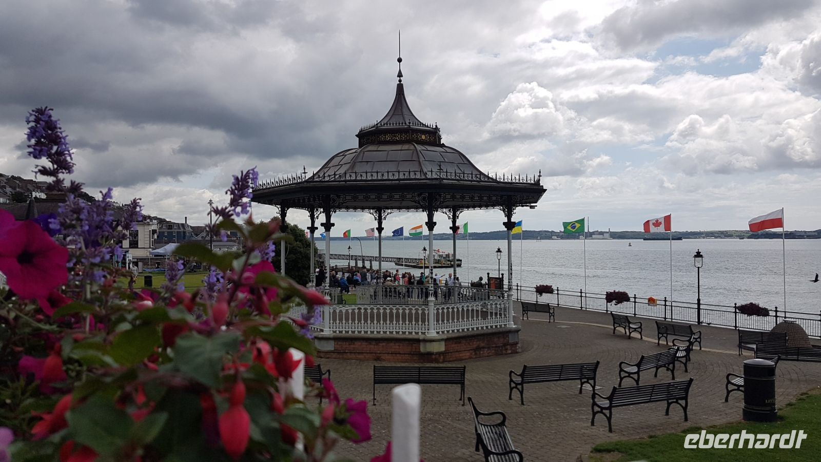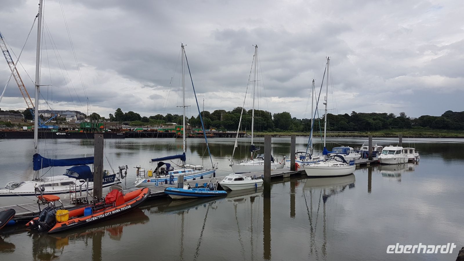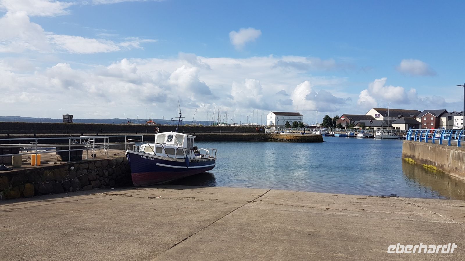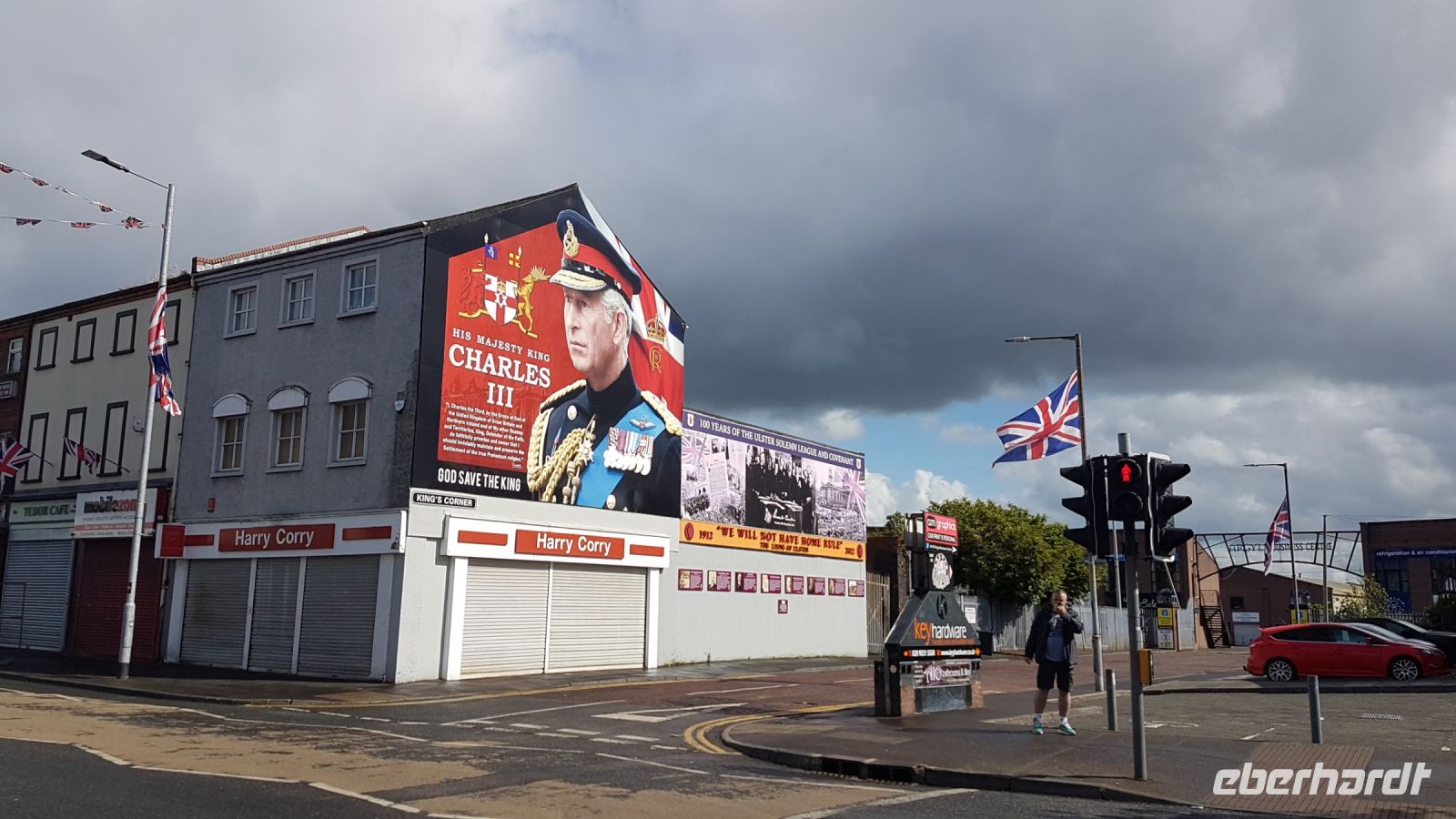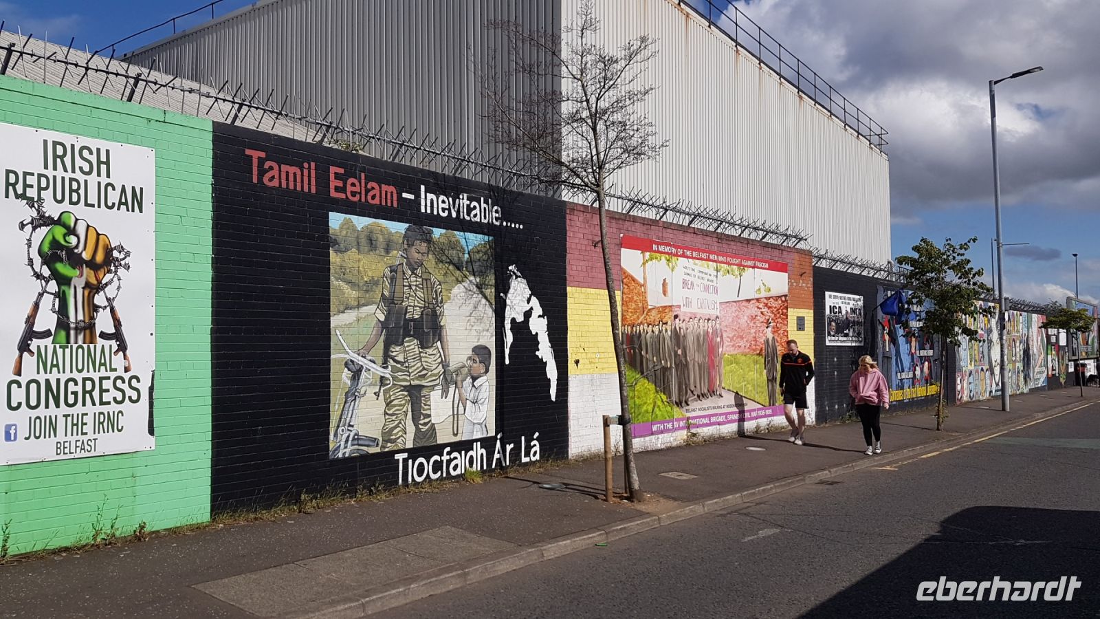 Nicht lange nach unserer Abfahrt vom Hotel erreichten wir Carrickfergus. Hier stoppte unser Bus für ein paar schöne Fotos vom Castle im Ort, das sich an einem kleinen Hafen befindet. Danach begann unsere herrliche Fahrt entlang der Antrim Coast Road. Das ist eine Küstenstraße, die uns an Sandstränden, Klippen und vom Meer umtosten Felsen entlang führt. In Carnlough legten wir einen Stopp ein und fotografierten den kleinen Hafen. Bald erreichten wir eine der bekanntesten Sehenswürdigkeiten Nordirlands. Am Giant's Causeway besuchten wir die vor 60 Millionen Jahren entstandenen zumeist sechseckigen Basaltsäulen. Wir kletterten auf diesem Wunder der Natur umher, das seit 1986 zum Unesco Weltkulturerbe gehört. Während unseres Aufenthaltes hier erwischte uns ein heftiger aber kurzer Regenguss. Glücklicherweise kam die Sonne danach wieder hervor und trocknete unsere nasse Kleidung. Am Nachmittag bestiegen wir wieder unseren Bus und fuhren dann nach Derry / Londonderry, die letzte Stadt in Nordirland, bevor wir wieder in die Republik Irland hereinfahren würden. In dieser Stadt sind die blutigen Konflikte zwischen Protestanten und Katholiken noch gut in Erinnerung, zahlreiche Wandbilder und auch Monumente erinnern an diese schreckliche Zeit. Aber Derry / Londonderry heißt auch The Walled Town, weil das Zentrum komplett von einer noch intakten Stadtmauer eingeschlossen wird. Wir stiegen hinauf auf die Mauer und spazierten auf ihr entlang. Den Abend verbrachten wir im Station House Hotel in Letterkenny.