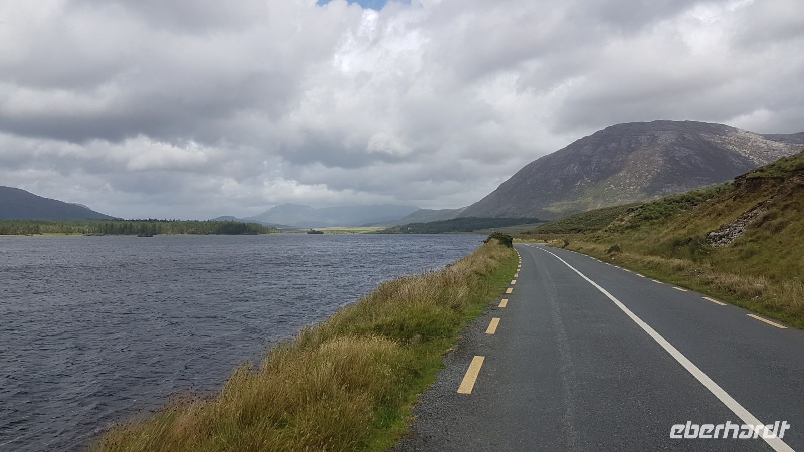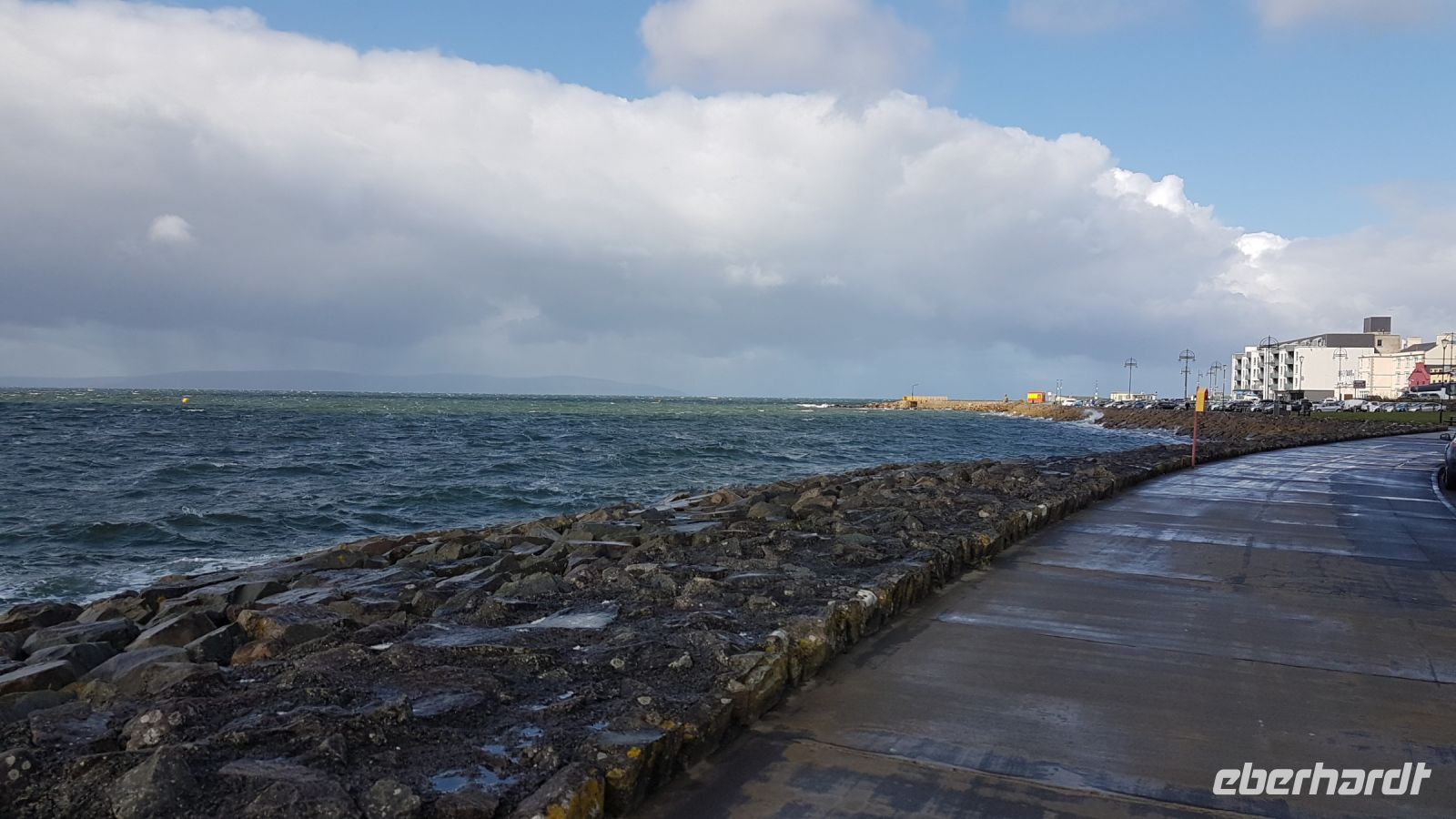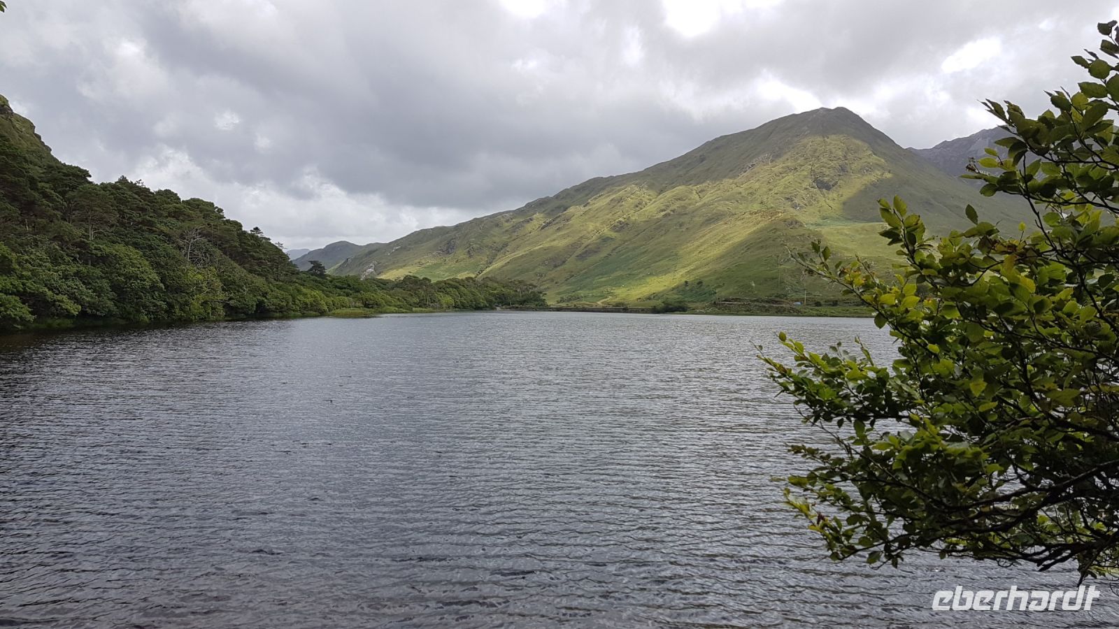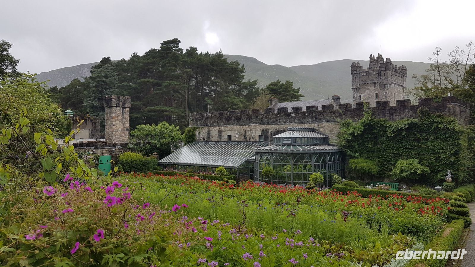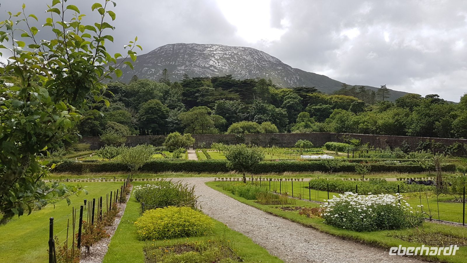 Heute erwartete uns ein Tag mit atemberaubender Landschaft. Doch am Morgen mussten wir zunächst feststellen, dass im Hotel der Strom ausgefallen war, und das nicht nur im Haus, sondern in der ganzen Gegend. In der Nacht hatte es gestürmt, und so waren wohl Teile des lokalen Stromnetzes beschädigt worden. Nach einem „kalten“ Frühstück ohne Kaffee, brachen wir dennoch wie geplant auf. Aber unser erster Halt führte uns in Salthill in ein Café, wo wir von unserer Reiseleiterin Connie erfuhren, dass uns Eberhardt TRAVEL auf unseren Morgenkaffee einlädt. So verbrachten wir eine gemütliche Pause mit Blick auf die Galway Bucht bei Kaffee, Cappuccino, Tee und anderen Getränken. Frisch gestärkt nach dieser Pause bestiegen wir wieder unseren Bus. Nicht weit mussten wir fahren und erreichten Connemara. Weite Gletschertäler werden umrahmt von mächtigen Bergen, die sich in den zahlreichen malerischen Seen spiegeln. An mehreren Stellen hielt unser Bus, damit wir besonders schöne Fotos von dieser beeindruckenden Landschaft machen konnten. Am Mittag erreichten wir schließlich Kylemore Abbey nicht weit vom Nationalpark Connemara entfernt. Das heutige Benediktinerinnenkloster war einst als Schloss direkt an einem Seeufer errichtet worden. Die Lage des Anwesens ist traumhaft. Wir genossen die herrlichen Ausblicke in eine atemberaubende Landschaft und einen Spaziergang im viktorianischen Walled Garden. Im Souvenirgeschäft werden auch Produkte aus hauseigener Herstellung angeboten, zum Beispiel Seifen und Schokolade. Am Abend ließen wir uns in unserem Hotel in Gort das Abendessen gemeinsam schmecken, danach bekamen alle als weitere kleine Geste wegen des Stromausfalls am Morgen einen Irish Coffee von unserem Reiseveranstalter spendiert.