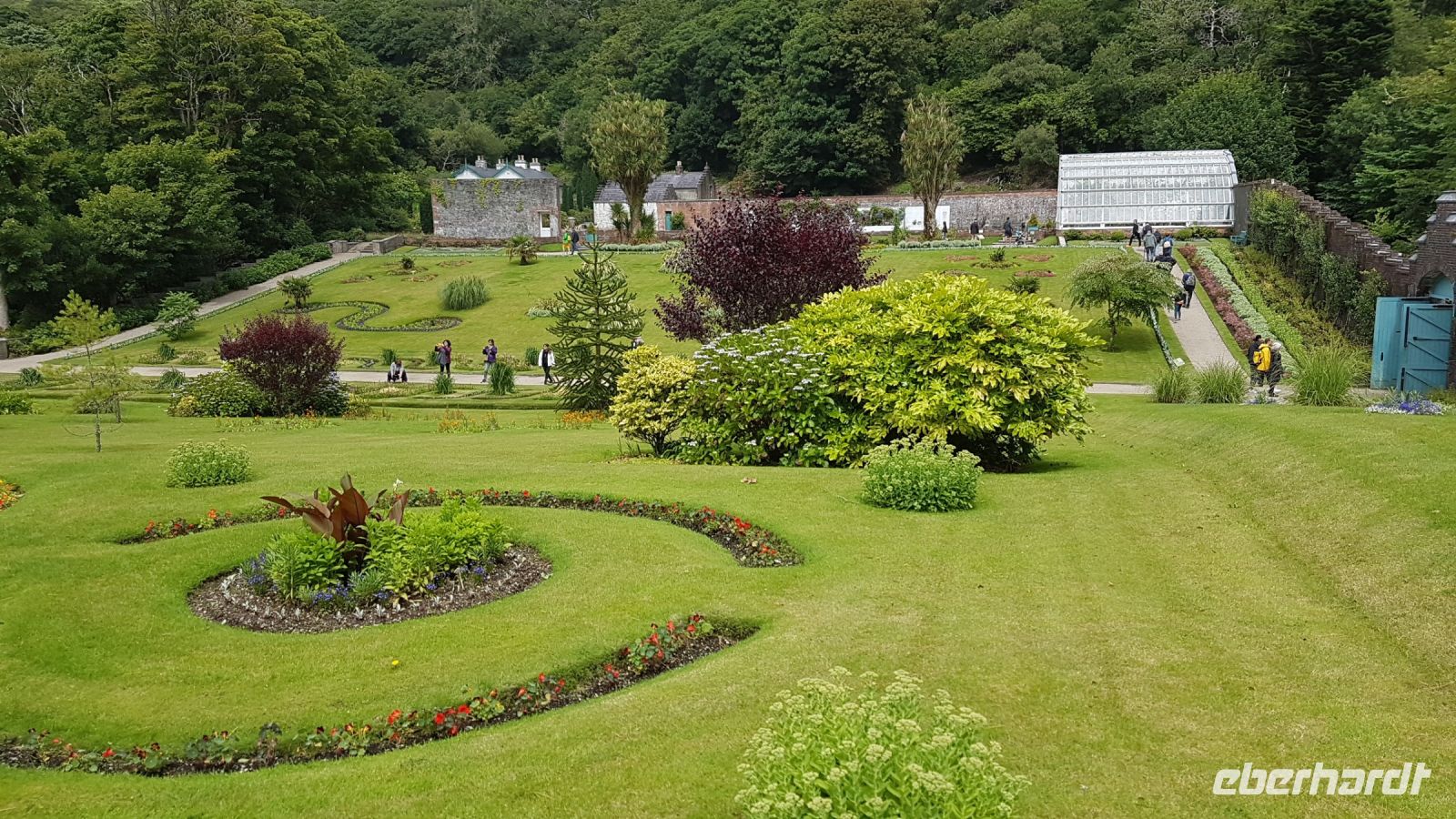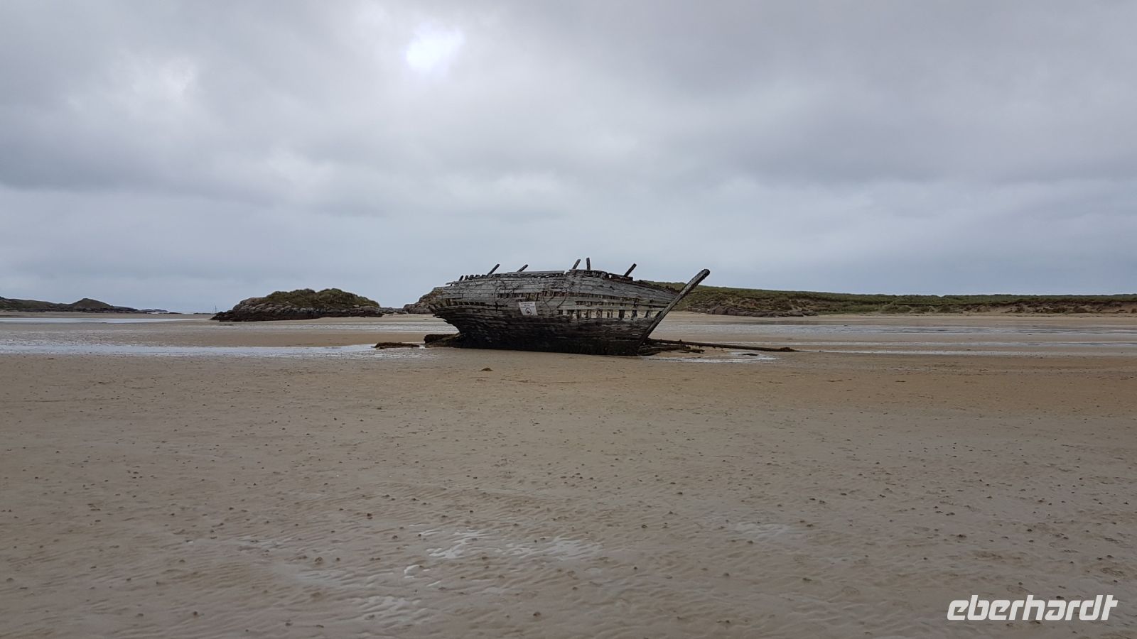 Am Morgen stärkten wir uns in unserem Station House Hotel an einem leckeren Frühstück. Dann brachen wir auf in Richtung Glenveagh Nationalpark. Zunächst sahen wir einen Film über die Entstehung des Nationalparks und vor allem über die Erbauer und Besitzer des Castles, das sich inmitten von rauer und karger Berglandschaft am idyllischen Ufer des Loch Veagh befindet. Es ist ein im Stil der schottischen Aristokratie errichtetes Schloss, es diente einst als Jagdschloss. Wir spazierten durch herrlich angelegte Gärten, einige Gäste wandelten in den stilvoll eingerichteten Räumen von Glenveagh Castle. Wir staunten über den Küchengarten und bunte Blumenbeete, genossen den beruhigenden Blick über den See, der sich zu Füßen des kleinen Schlosses erstreckt. Leider wurde unser Besuch hier durch heftige Regengüsse begleitet, so dass der Regenschirm unser ständiger Begleiter war. Nach diesem wunderschönen Besuch hieß es Abschied nehmen, wir verließen den Nationalpark, um das County Donegal zu erkunden. Zunächst fuhren wir Richtung Westen, bis wir die berühmte Küstenstraße „Wild Atlantik Way" erreichten. Unterwegs hielten wir mehrere Male an, um die beeindruckende Natur im Foto festzuhalten: von Gletschern geformte weite Täler, karg bewachsene imposante Berge, alte Kirchen und hübsche Dörfer. Aber auch breite Sandstrände konnten wir entdecken. An einem davon, Bunbeg Beach, verbrachten wir eine erholsame Stunde bei zumindest trockenem Wetter. Das Besondere hier ist ein altes Schiffswrack namens Bad Eddi, das den hier entstandenen Fotos besonderen Charme verleiht. Nach diesem erlebnisreichen und beeindruckenden Ausflug erreichten wir am frühen Abend wieder unser Hotel. Wir ließen uns das Abendessen schmecken und den Tag gemütlich ausklingen.