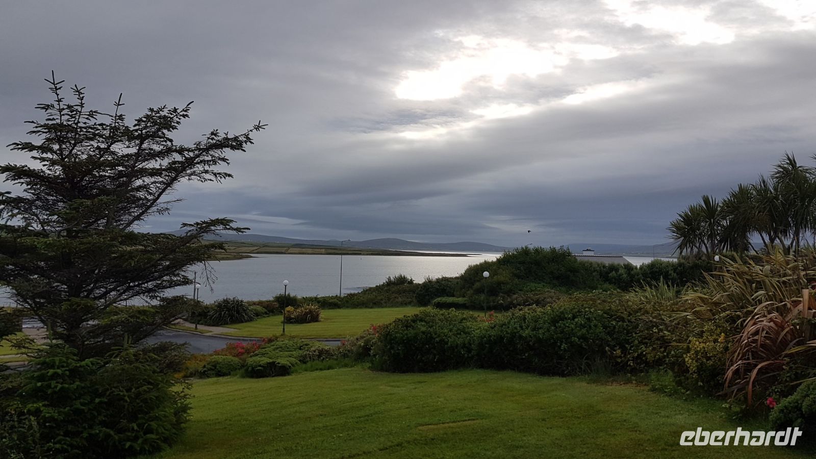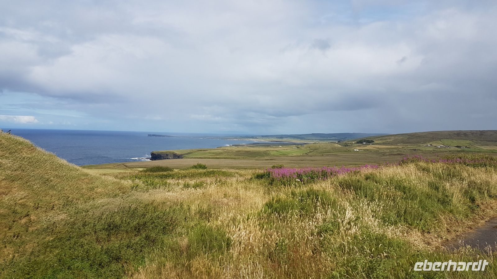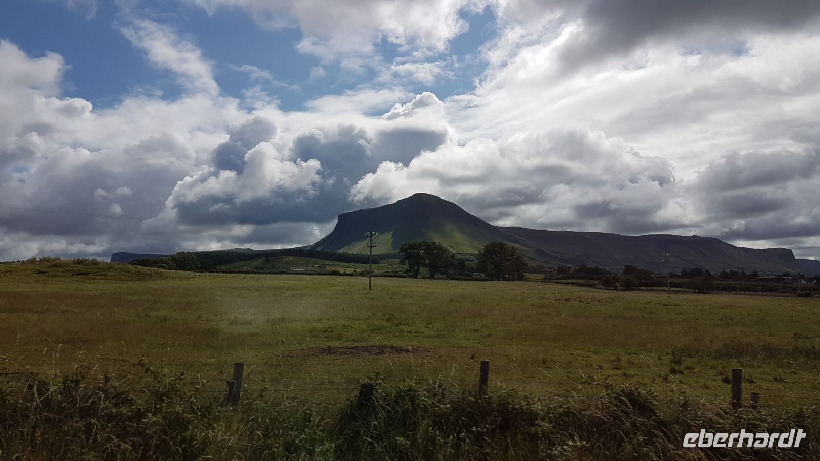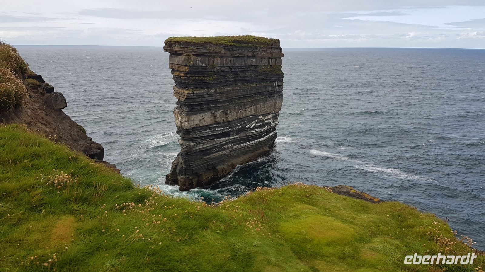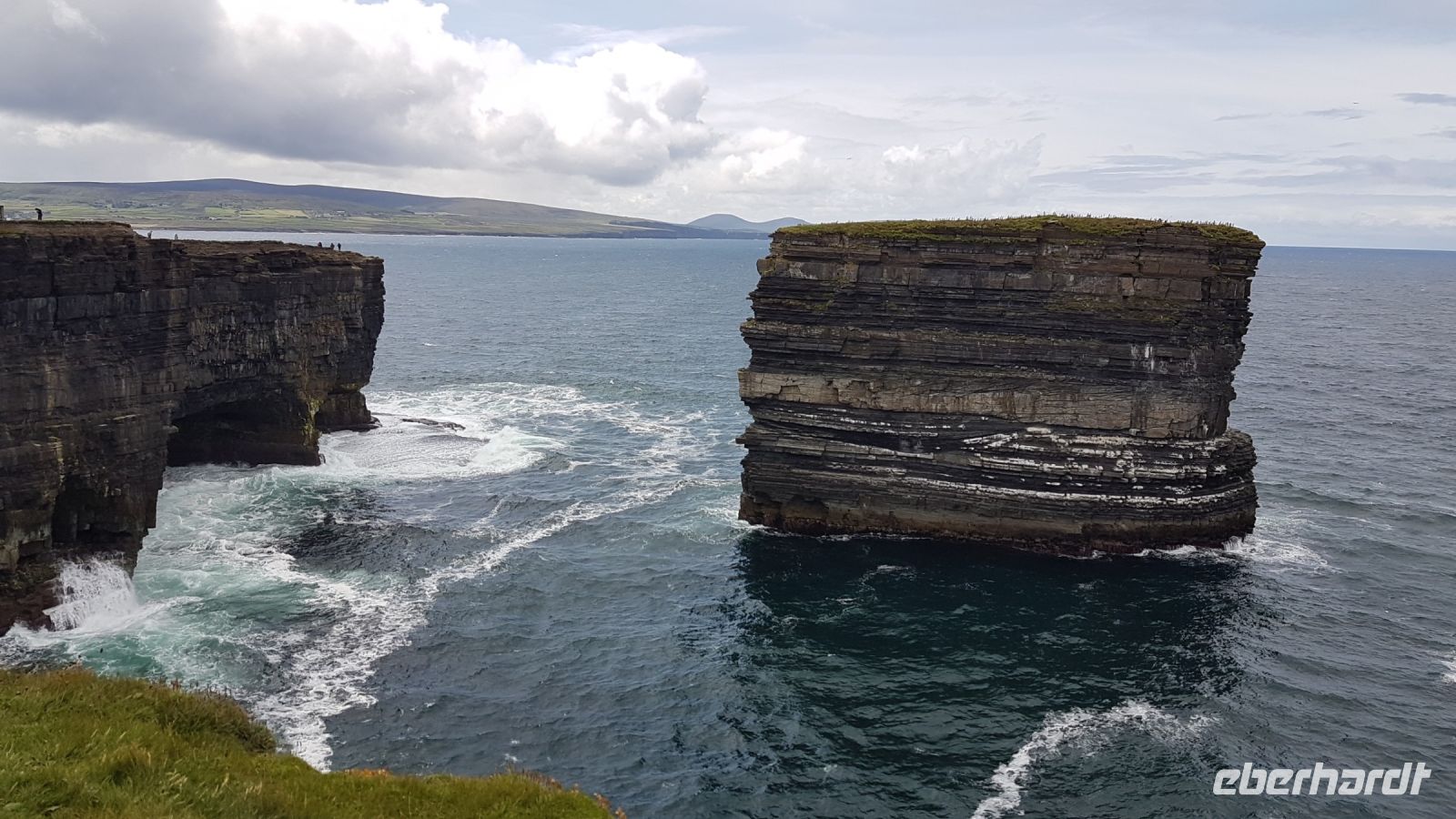 Am Morgen verließen wir Letterkenny in Richtung Süden. Unterwegs passierten wir den markanten Tafelberg Ben Bulben, um den sich alte Legenden ranken, und auch Drumcliff, wo der berühmte irische Dichter William Butler Yeats begraben liegt. Im Jahr 1923 wurde ihm - als erstem Iren - der Literatur-Nobelpreis verliehen. Auch ein altes Hochkreuz und die Reste eines Rundturms einer früheren Abtei konnten wir sehen. Danach fuhren wir zu den Megalith-Steigräbern in Carrowmore. Jahrtausende alte Gräber vermitteln uns noch heute einen Bezug zu den Menschen dieser Epoche. Wir spazierten zwischen den Steingräbern umher und erfuhren auf einem Informationsblatt die wichtigsten Details eines jeden Grabes. Dort verbrachten wir auch unsere Mittagspause. Wir erreichten recht bald wieder die Küste und den Wild Atlantic Way. Am Downpatrick Head, einem etwa 50 Meter hohen Felspfeiler, der einsam der Brandung trotzt, machten wir einen Spaziergang über den Klippen. Anfangs blieb es noch trocken, so dass wir beeindruckende Fotos machen konnten. Während unseres Besuches dort setzte allerdings auch Regen ein, später aber gab es auch wieder sonnige Abschnitte. Nach unserem Besuch am Downpatrick Head fuhren wir zum Besucherzentrum von Ceide Fields. Wir erfuhren viel Interessantes über diese prähistorische Stätte. Vor etwa 5000-6000 Jahren siedelten hier Menschen, die als Bauern von Feldarbeit und Viehzucht lebten. Den Abend ließen wir in unserem Broadhaven Hotel ausklingen, das durch seine besondere Lage direkt an der Küste besticht.