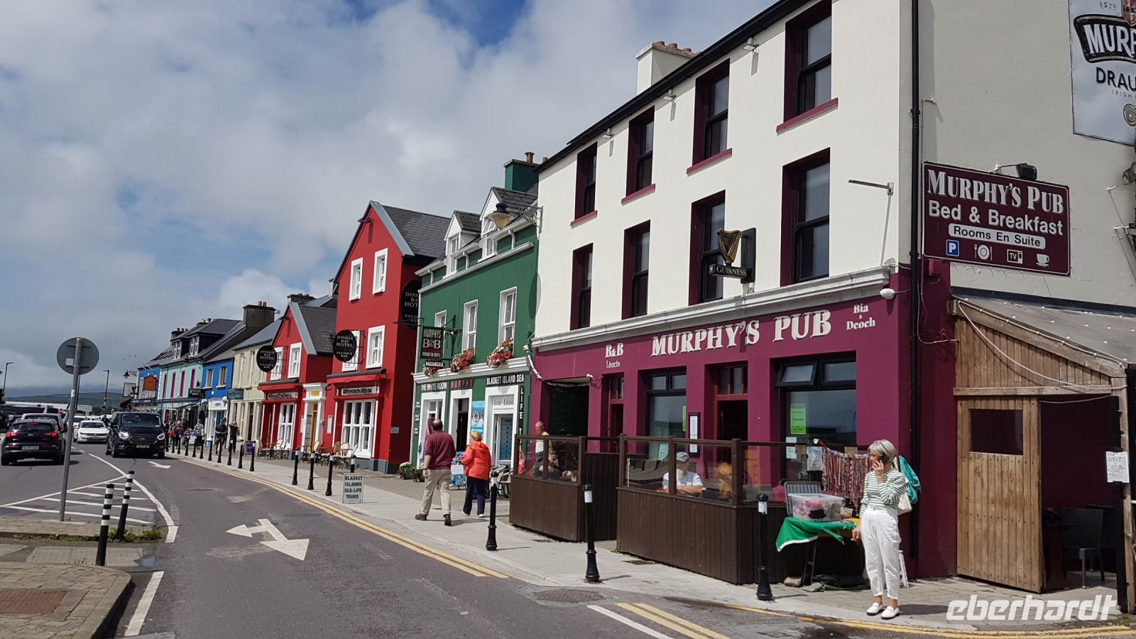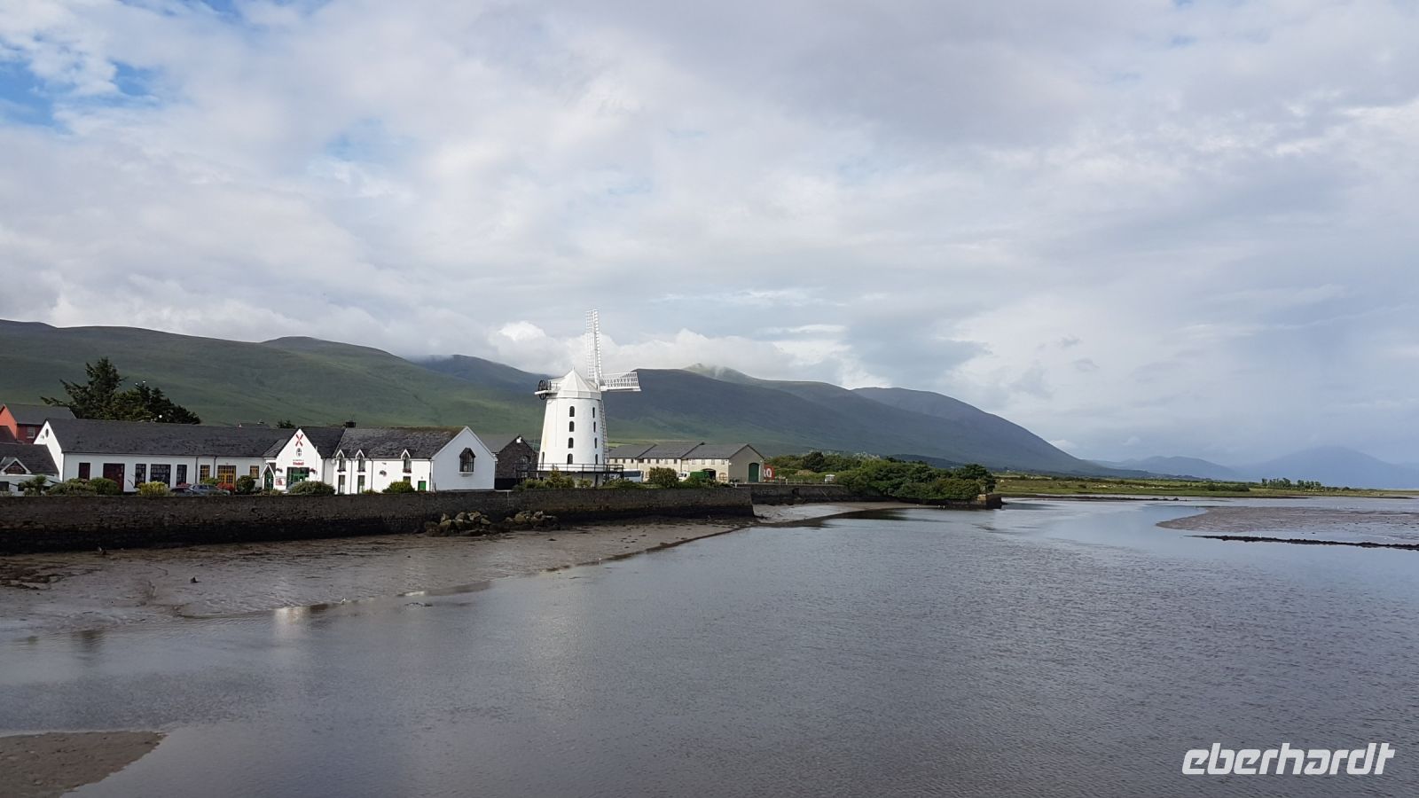 Nicht lange nach unserem Frühstück in Tralee trafen wir uns wieder in unserem Bus. An der Blennerville Windmühle legten wir den ersten Stopp dieses Tages ein für Fotos. Den weiteren Tag verbrachten wir auf einer vergnüglichen Rundreise über die Dingle Halbinsel bei sehr schönem Wetter. Wir sahen sogenannte Bienenkorbhütten, das sind frühchristliche Behausungen der Bauern in dieser Gegend. Auch wunderbare Ausblicke boten sich uns vom Slea Head Drive aus, das ist eine Küstenstraße, von der wir die Blasket-Inseln sehen konnten. Im hübschen Städtchen Dingle verbrachten wir unsere Mittagspause, einige probierten Fish & Chips oder leckere Eiscreme. Unser letzter Halt auf der Halbinsel war am Strand von Inch Beach, wo einige Windsurfer auf die beste Welle warteten. Wir spazierten über den breiten Sandstrand und genossen den Nachmittag am Meer. Den Abend verbrachten wir wieder in unserem Hotel Brandon in Tralee. Ein besonderes Vergnügen war der Besuch der irischen Tanz- und Musikshow Celtic Steps, die wir im Konferenzzentrum unseres Hotels an diesem Abend erleben konnten.