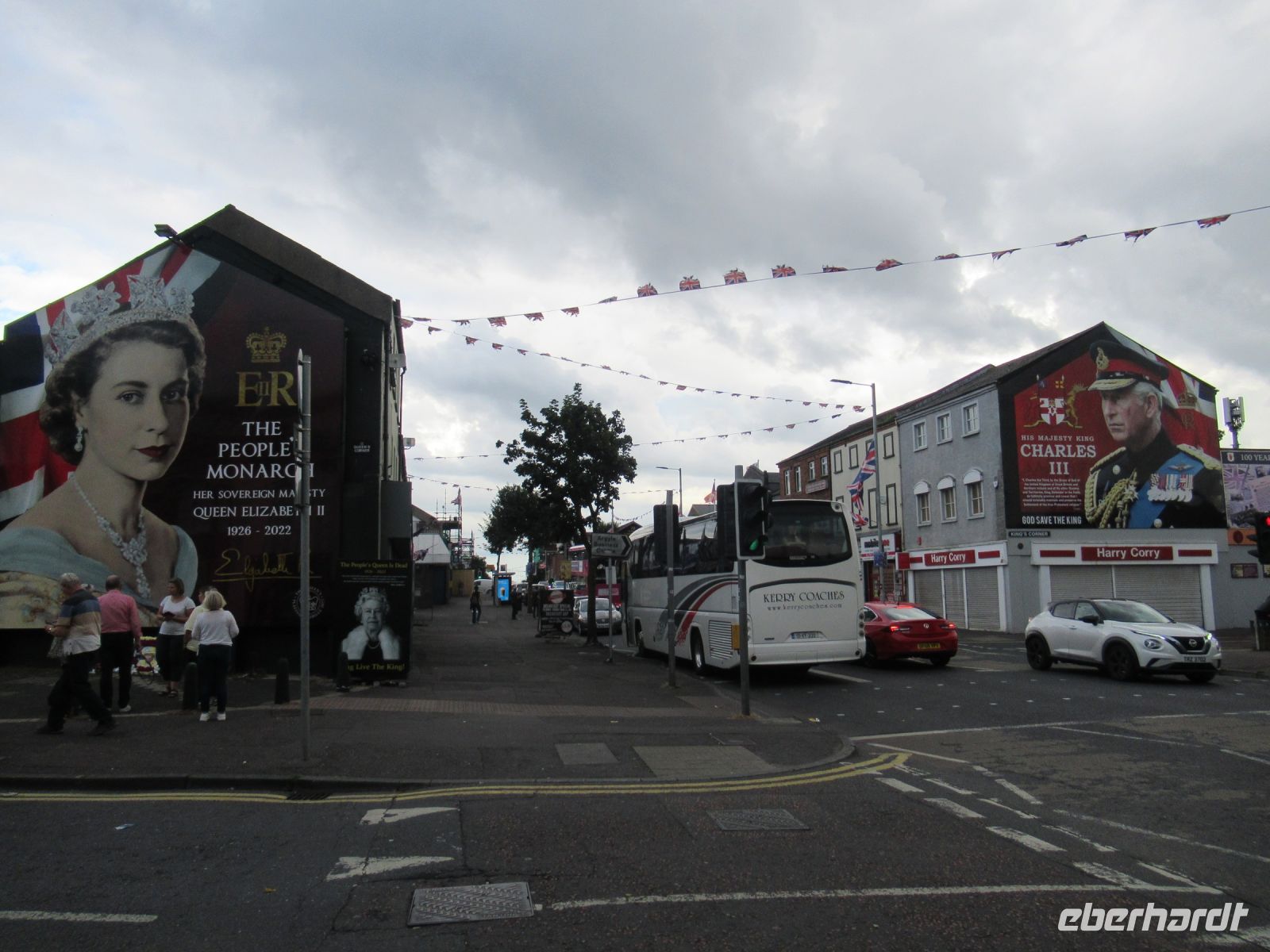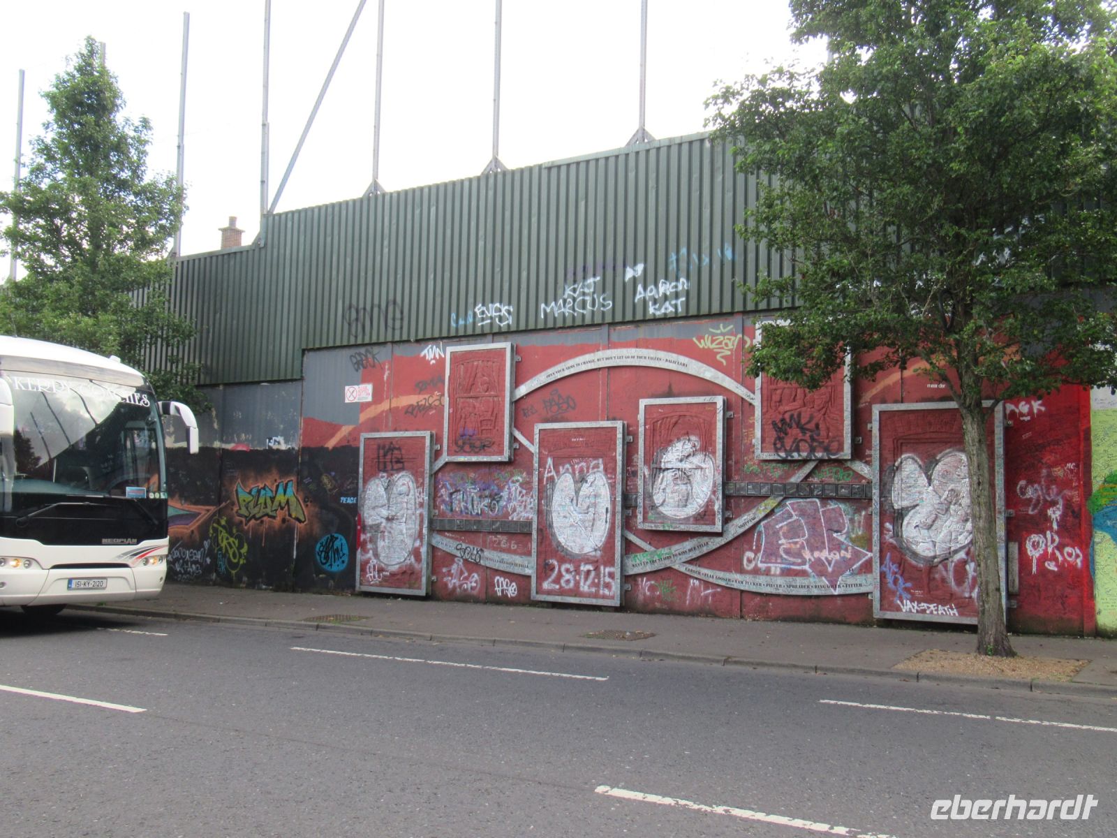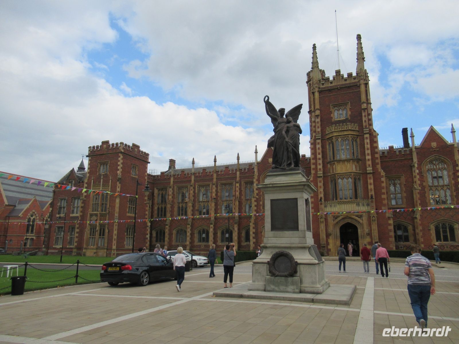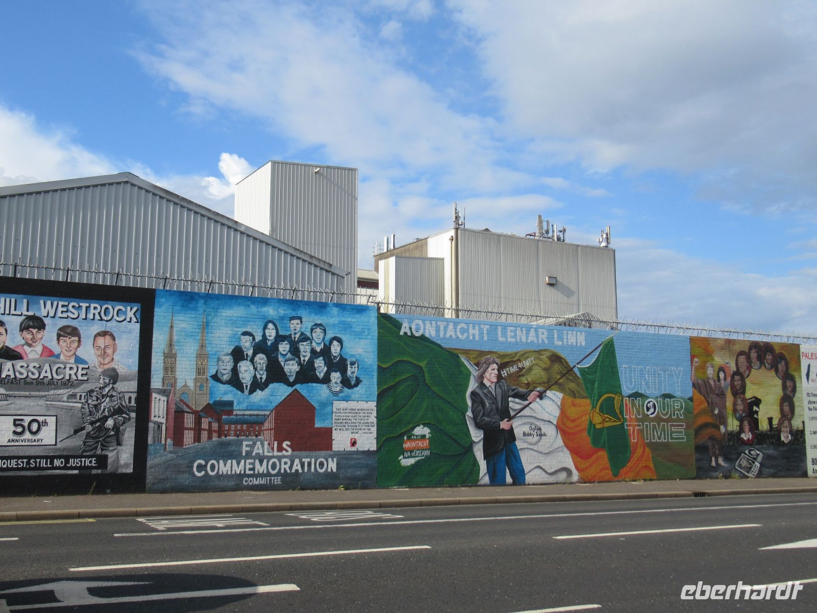 Von Berlin, München und Frankfurt flogen wir heute nach Dublin. Leider gab es Flugverspätungen, so dass die zuerst gelandeten Reisegäste auf die anderen warten mußten. Gemeinsam ging es dann zu unserem Bus, wo wir schon von unserer irischen Fahrerin Heike erwartet wurden. Die Autobahn in Richtung Norden führte uns an für die irische Geschichte historischen Orten vorbei. In Belfast zeigte uns die Stadtführerin Bibi das prächtige Rathaus, die altehrwürdige Universtät, den "schiefen Turm" von Belfast und das Titanicmuseum. Natürlich hielten wir auch in der Shankillroad und an der Friedensmauer, um von den früheren Unruhen zu hören, die großen Bilder anzuschauen und im Foto festzuhalten.