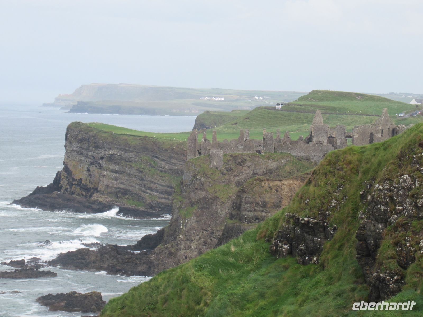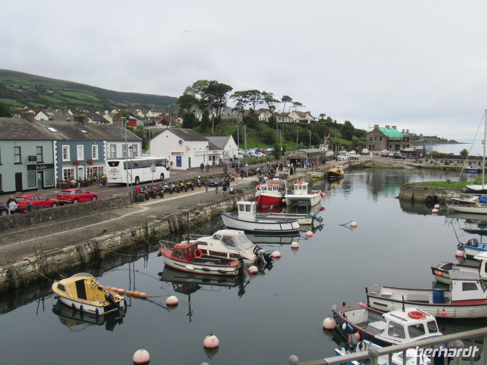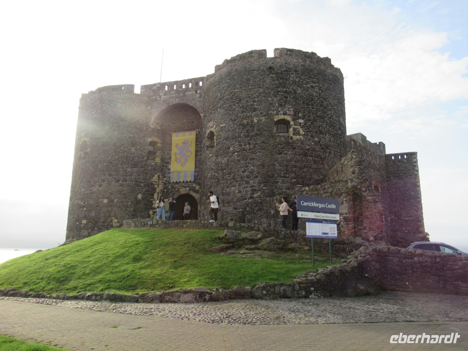 Nach einem Full Irish Breakfast machten wir uns gestärkt auf den Weg. Schon nach kurzer Fahrzeit erschloß sich uns ein überraschender Blick auf das wehrhafte Carrickfergus - Castle. Grund genug für einen Fotostopp. Weiter ging es an der Causeway Coast entlang. So hatten wir immer wieder schöne Blicke auf die Küste und auch auf die typisch irischen Ortschaften. Im kleinen Hafen von Carnlogh legten wir eine Pause ein, ehe es zum Ausblick nach Schottland und einer spektakulären Seilbrücke ging. Dann fuhren wir an die Nordküste zum absoluten Highlight des heutigen Tages: dem Weltkulturerbe " Giant`s Causeway". Auf dem "Weg des Riesen" machten wir es diesem gleich, indem jeder auf seiner eigenen "Wanderroute" auf den Basaltsäulen herumkraxelte. An der Nordküste entdeckten wir die Ruine des Dunluce Castle; ein Teil ist schon ins Meer gerutscht. Beim Spaziergang auf der Stadtmauer von Derry hatten wir den Blick sowohl auf den Stadtkern, als auch auf die außerhalb liegenden Bezirke mit den an den "Blutigen Sonntag" erinnernden Hausfassaden, dem wunderschönen Rathaus und der Freundschaftsbrücke.Hier zeigte Petrus uns, was ein echter irischer Regenguss ist. Am späten Nachmittag erreichten wir unser Hotel in Letterkenny, wo uns schon das Abendbrot erwartete.