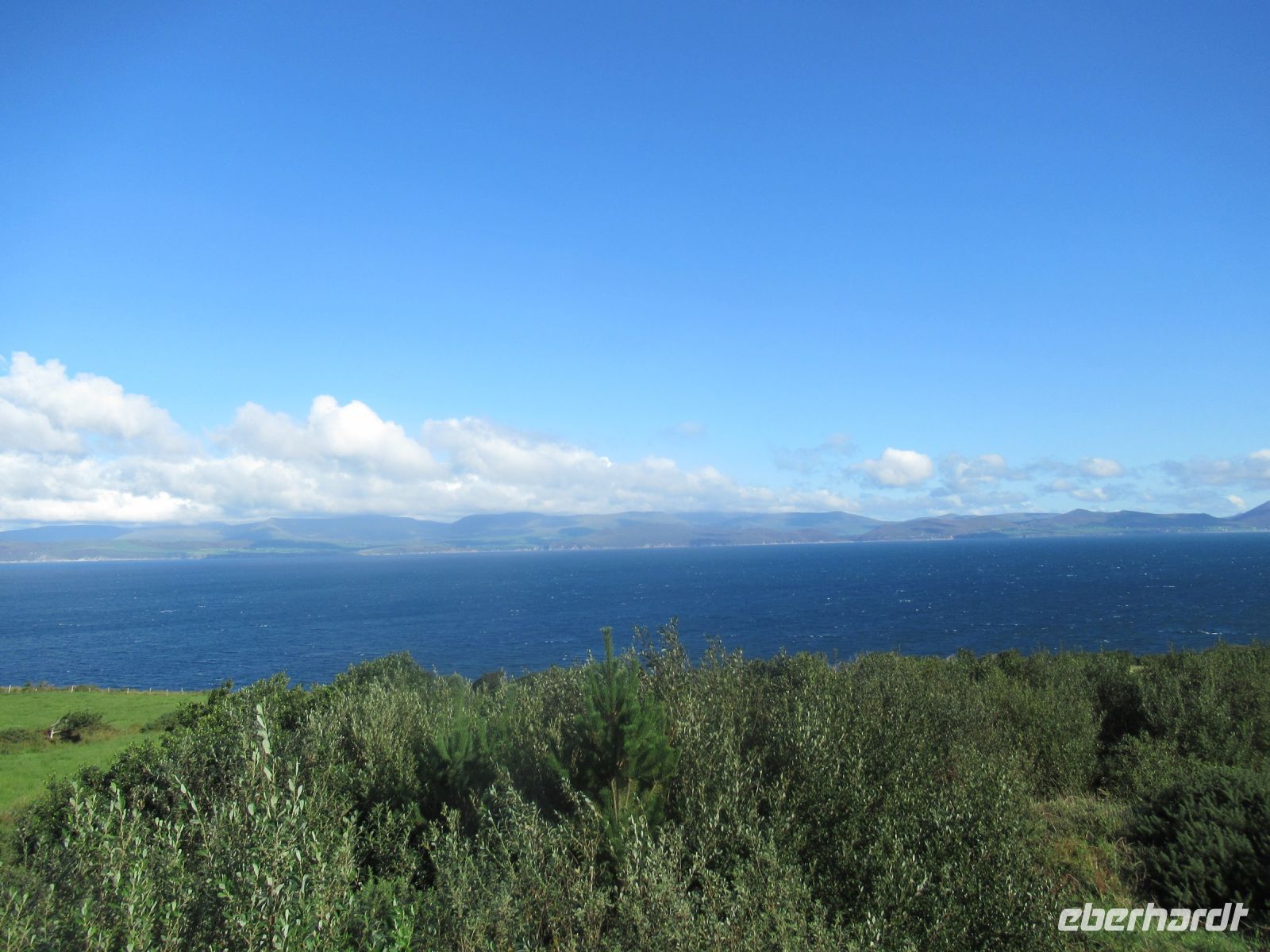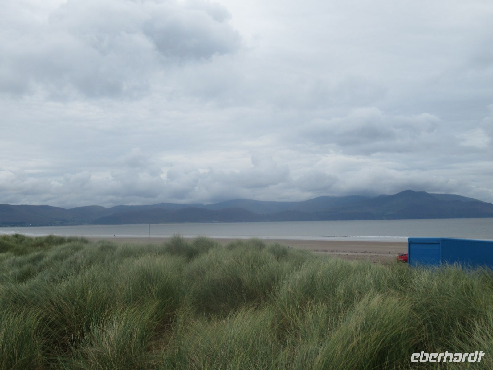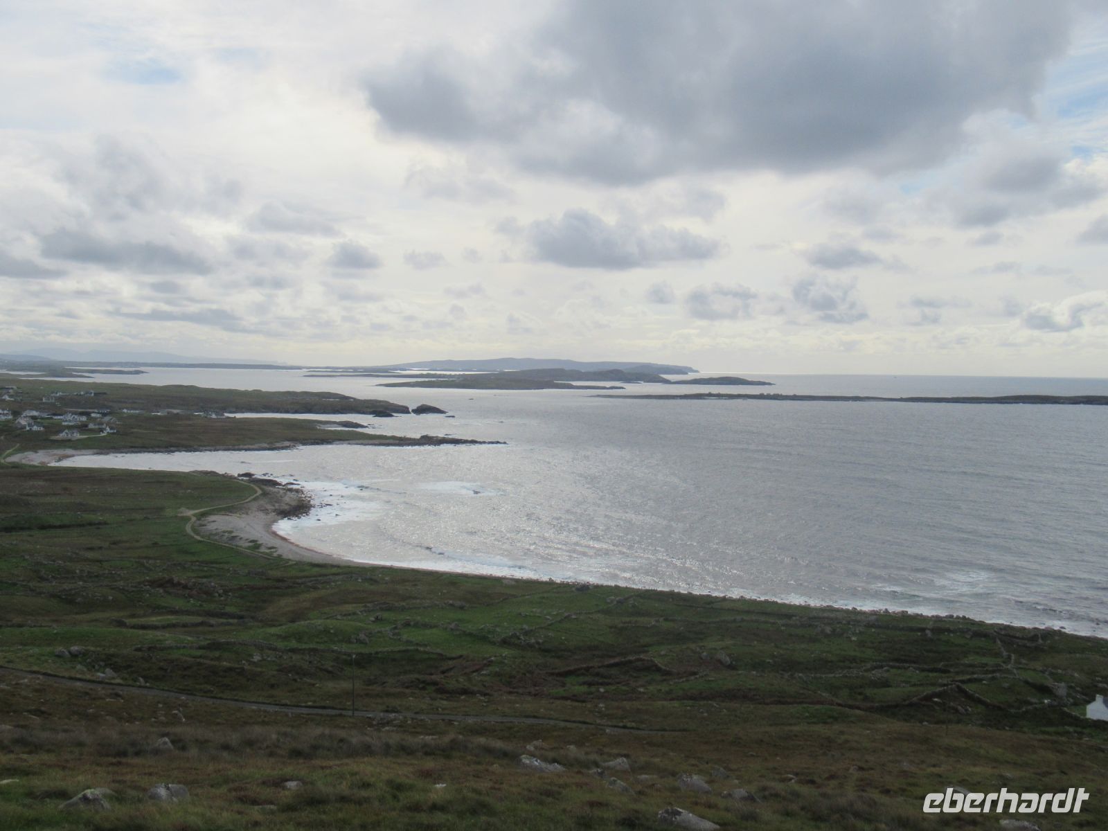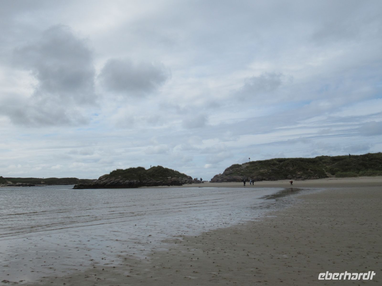Heute konnten wir ohne Koffer aufbrechen. Es ging zunächst nicht an die Küste, sondern in einen der Nationalparks. Im Glenveagh Nationalpark zeigte uns ein Film zunächst, wie es zur Anlage dieses Kleinods in einer völlig kahlen und menschenleeren Gegend kam. Dann brachten uns Busse in den Park, wo jeder sich seine Route für den Spaziergang durch die verschiedenen Gartenbereiche aussuchte. Einige besuchten auch das Schloß mit seiner speziellen Einrichtung, erfuhren von ehemals hochrangigen Gästen und den "Scherzen" des Hausherren mit diesen. Ein kräftiger kurzer irischer Regenguß sorgte dafür ,dass wir uns in der Teestube wiedertrafen. Am Nachmittag entdeckten wir dann die vielfache und abwechslungsreiche Landschaft des County Doniga mit den Derryveagh Mountains. Am Strand von Bunbeg wollten wir eigentlich baden. Aber durch den Regen am Vormittag war der Strand doch etwas feucht, so dass es bei eunem gemütlichen Strandspaziergang blieb; und danach hatte Heike die Kaffee- Bar eröffnet -sehr willkommen! Auf dem Weg nach Letterkenny genossen wir immer wieder fantastische Ausblicke auf die Küste Donigals.