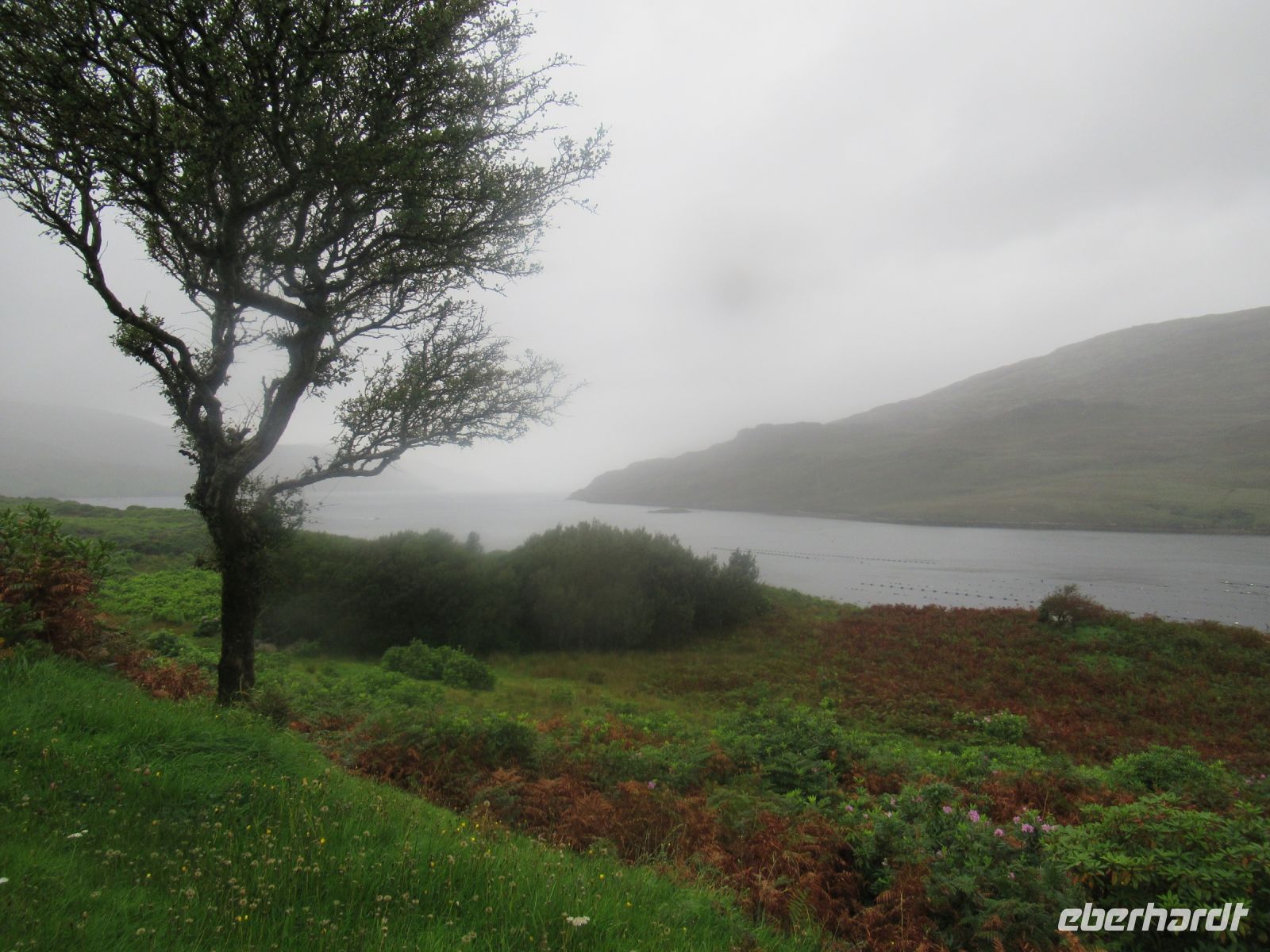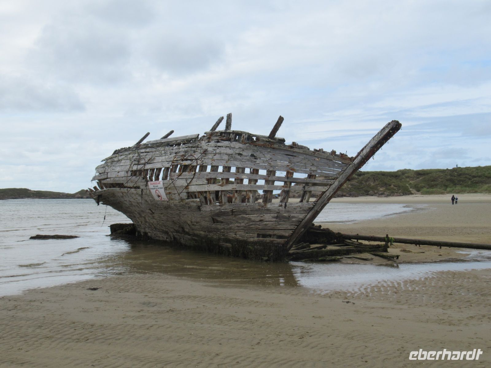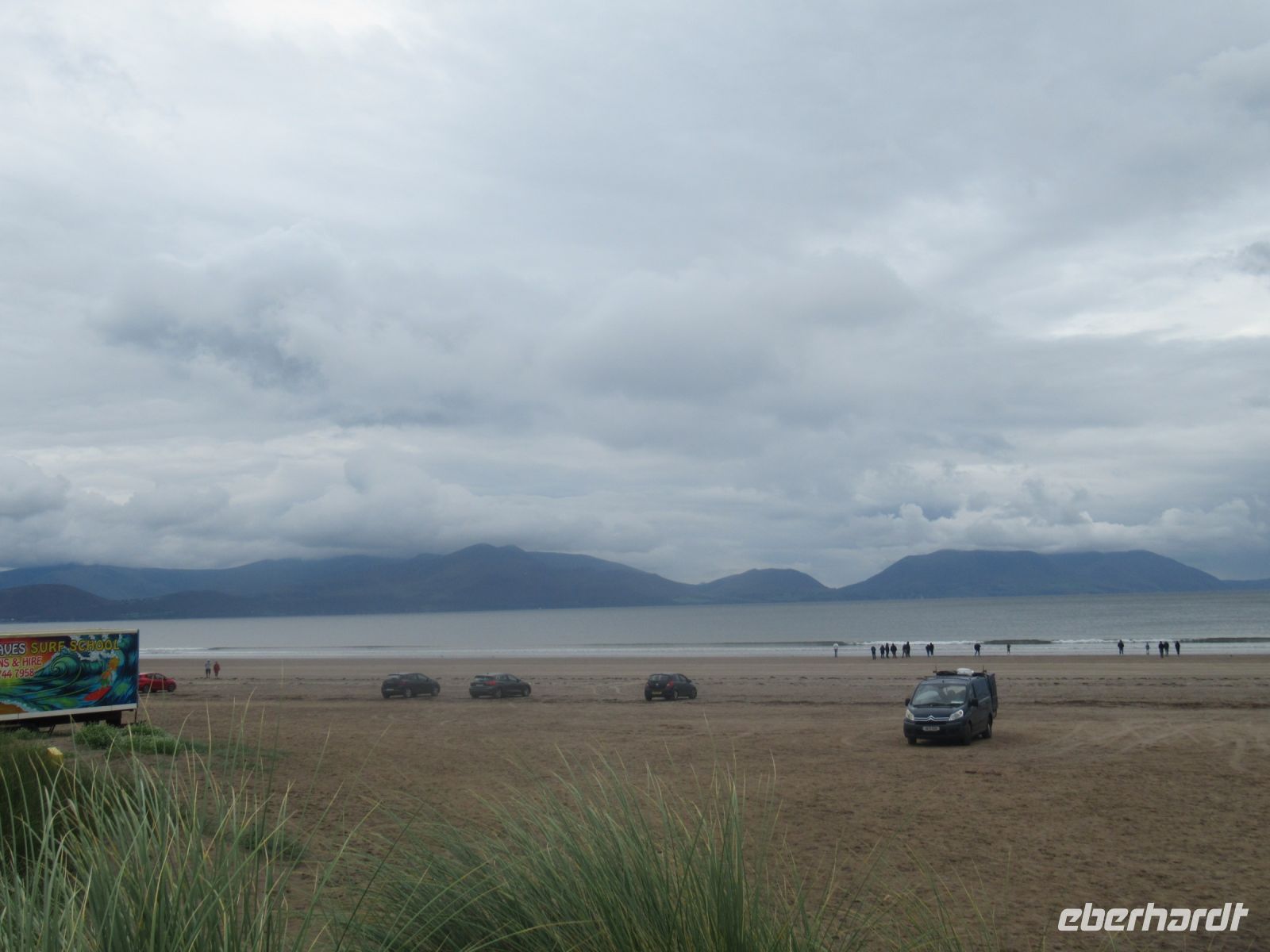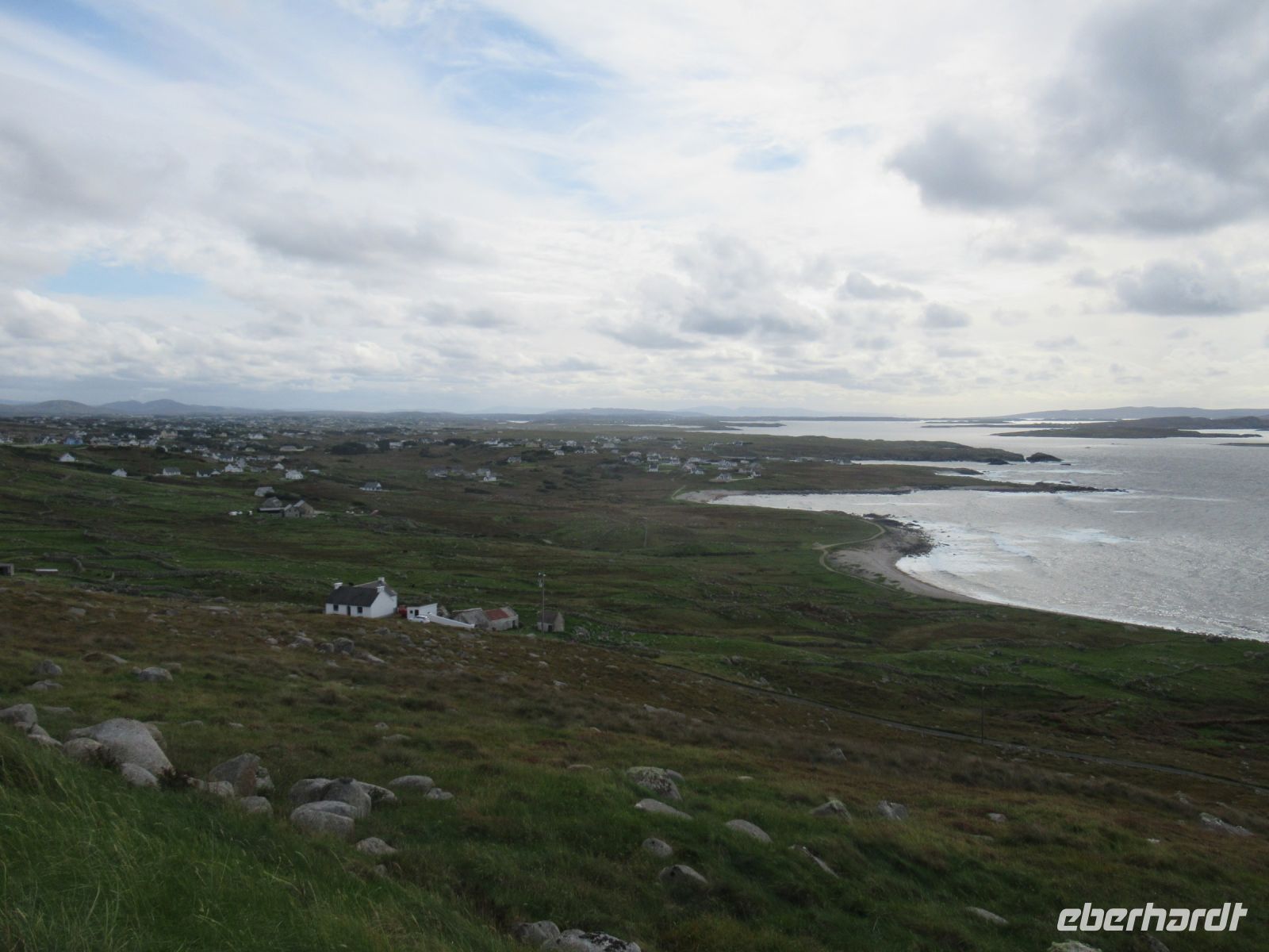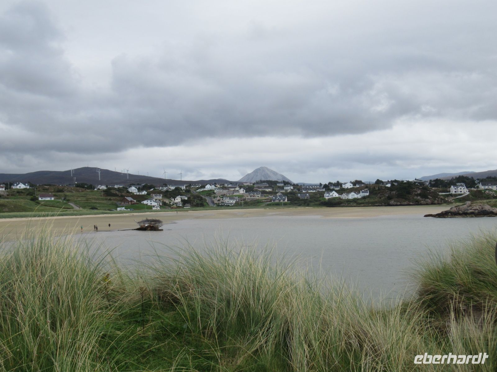 Heute konnten wir ohne Koffer aufbrechen. Es ging zunächst nicht an die Küste, sondern in einen der Nationalparks. Im Glenveagh Nationalpark zeigte uns ein Film zunächst, wie es zur Anlage dieses Kleinods in einer völlig kahlen und menschenleeren Gegend kam. Dann brachten uns Busse in den Park, wo jeder sich seine Route für den Spaziergang durch die verschiedenen Gartenbereiche aussuchte. Einige besuchten auch das Schloß mit seiner speziellen Einrichtung, erfuhren von ehemals hochrangigen Gästen und den "Scherzen" des Hausherren mit diesen. Ein kräftiger kurzer irischer Regenguß sorgte dafür ,dass wir uns in der Teestube wiedertrafen. Am Nachmittag entdeckten wir dann die vielfache und abwechslungsreiche Landschaft des County Doniga mit den Derryveagh Mountains. Am Strand von Bunbeg wollten wir eigentlich baden. Aber durch den Regen am Vormittag war der Strand doch etwas feucht, so dass es bei eunem gemütlichen Strandspaziergang blieb; und danach hatte Heike die Kaffee- Bar eröffnet -sehr willkommen! Auf dem Weg nach Letterkenny genossen wir immer wieder fantastische Ausblicke auf die Küste Donigals.