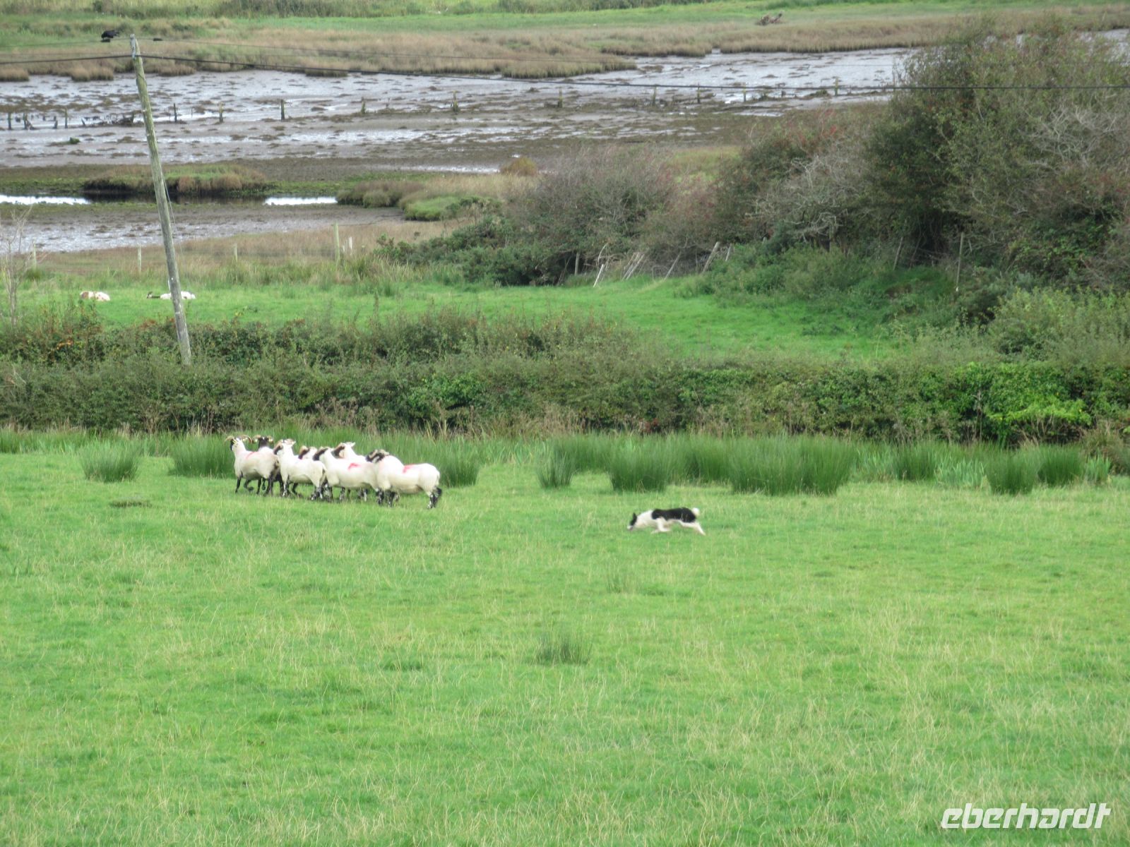 Durch den südlichen Teil des Donigal fuhren wir am Vormittag zum Schäfer. Dieser demonstrierte uns, wie er mit seinem Border- Collie die das ganze Jahr über frei weidenden Schafe findet und zum Scheren und Impfen holt.Wir wissen nun: Eigentlich arbeitet der Hund; und wie gern! (Aber erst nach langem Training mit dem Schäfer.) Auf dem Megalithfriedhof von Carrowmore erhielten wir Einblick in die Lebensweise und vor allem in die verschiedenen Arten der Gräber der Steinzeitmenschen. Besonders beeindruckend ist der große Dolmen.