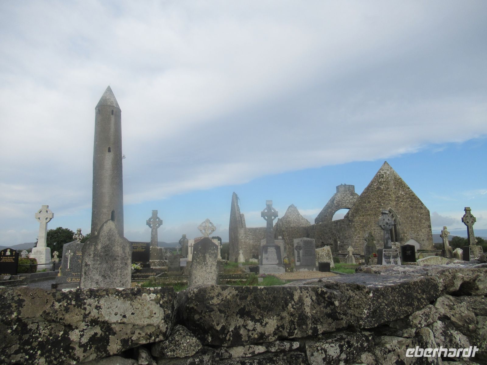 Auf dem Weg zu unseren heutigen Sehenswürdigkeiten fuhren wir zunächst etwas abwegs zum Kloster von Kilmacdough. Die weitläufige ehemalige Klosteranlage beeindruckt vor allem durch die gut erhaltenen Kirchenruinen, Rundkreuze und dem guterhaltenen Rundturm. Die berühmten Cliffs of Moher muß natürlich jeder Irland- Reisende gesehen haben.Am Lemaneh Castle erfuhren wir die Geschichte der"Roten Mary".Bei herrlichem Sommerwetter konnten wir die Wege entlang der kilometerlangen Klippen genießen Dann ging es weiter Richtung Süden , durch die Stadt Adare mit ihren hübschen Cottages nach Bunratty. Dort erwartete uns ein mittelalterlich gewandeter Herr zur Schlossführung. Nach eigenen Erkundungen im Schloß entdeckten wir dann im Folkpark wie die Menschen der verschiedenen Schichten früher lebten und wohnten. Auch eine Schule und eine Arztpraxis konnte man besuchen. Natürlich gab es auch zu jeder Zeit einen Pub1