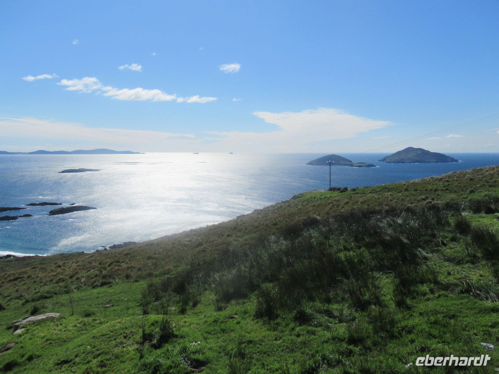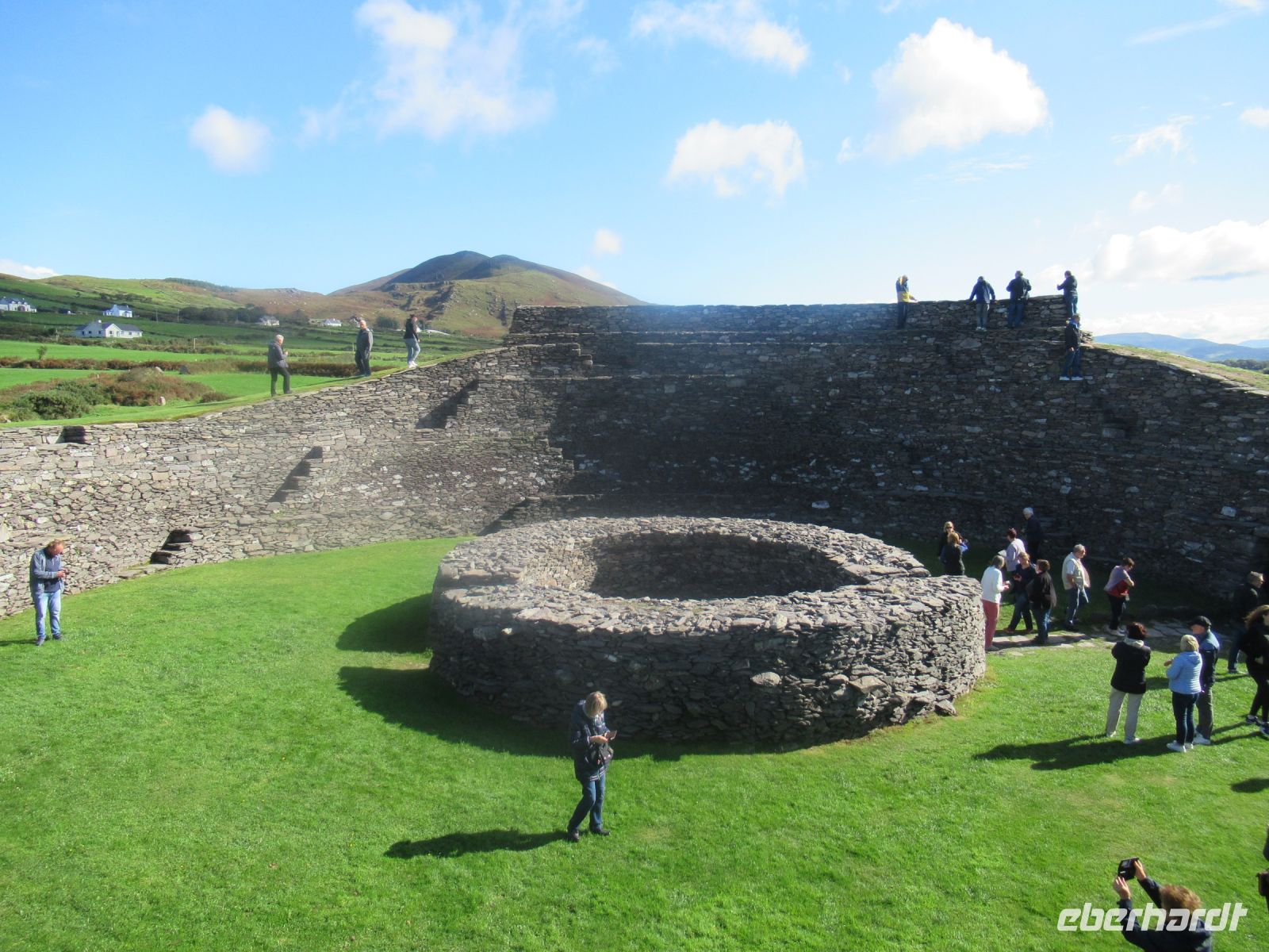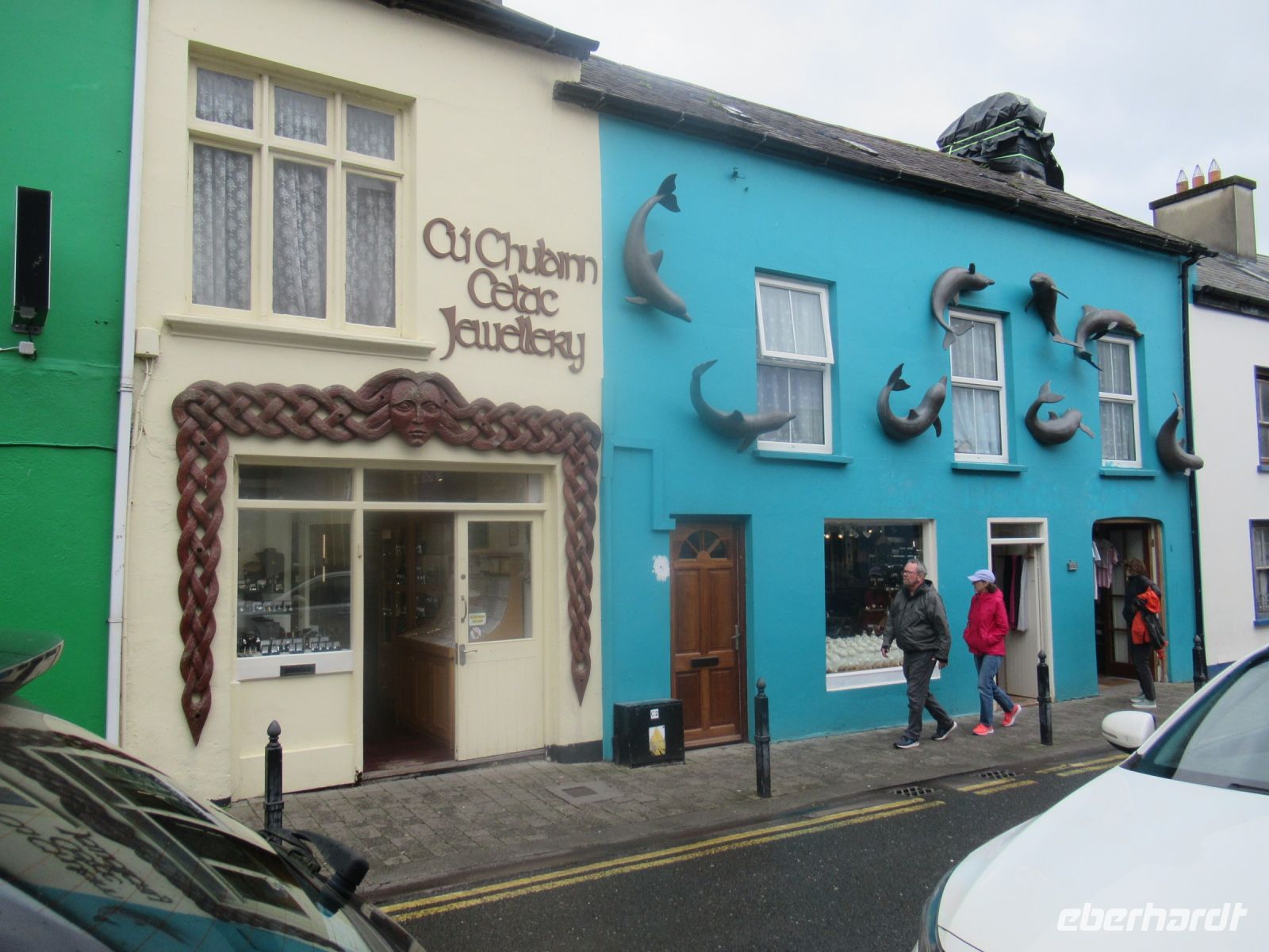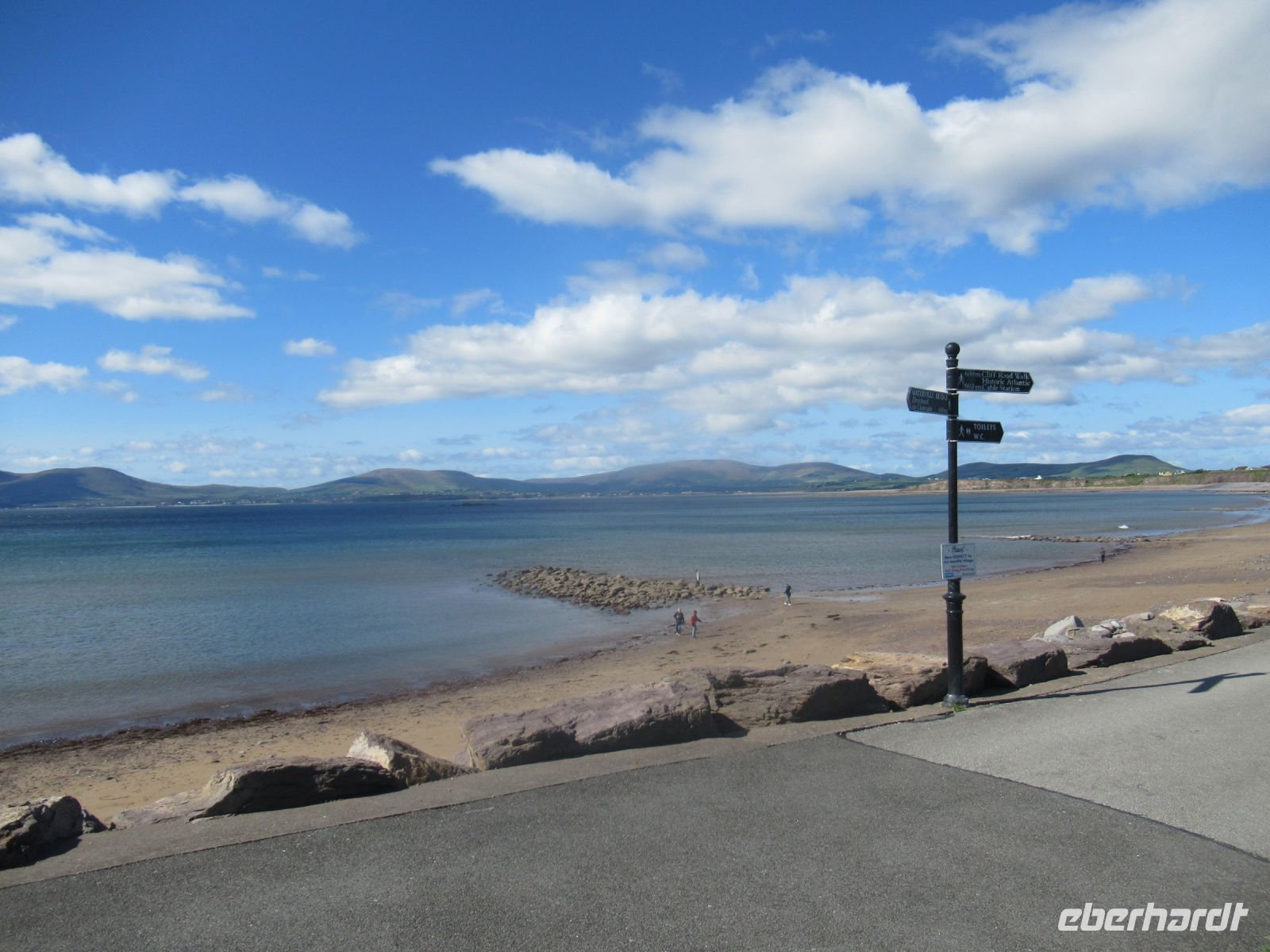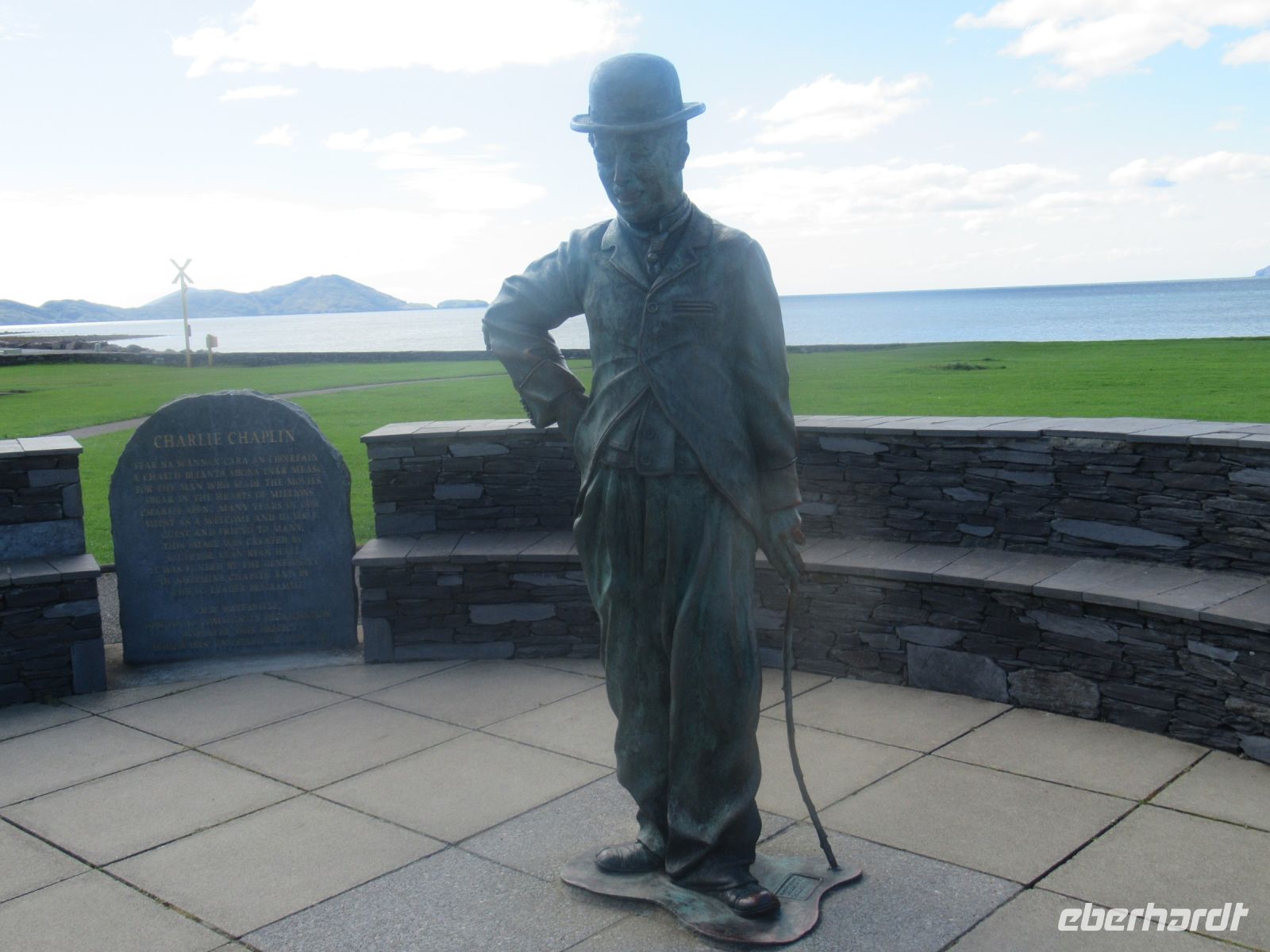 Heute hatten wir überwiegend herrlichen Sonnenschein. Außerdem versüßten wir uns den Morgen mit einem Irish Coffee. Hmm - lecker! An der Südseite der Dingle Bay hatten wir einen Blick auf die gestern bereiste Küstenseite. In Cahersiveen bogen wir ab, um einen Abstecher zum Cahergal Stonefort zu unternehmen.Beim Herumklettern in dessen Innerem konnten wir das bauliche Geschick und strategische Denken der Steinzeitmenschen nachempfinden und die Aussicht genießen.Weiter ging es zu einer Kostprobe in eine Schokoladenmanufaktur und nach Waterville, das seinem Lieblingsgast- Charlie Chaplin- ein Denkmal gesetzt hat, welches gern als Fotomotiv genutzt wird. In vielen Fotos wurden
