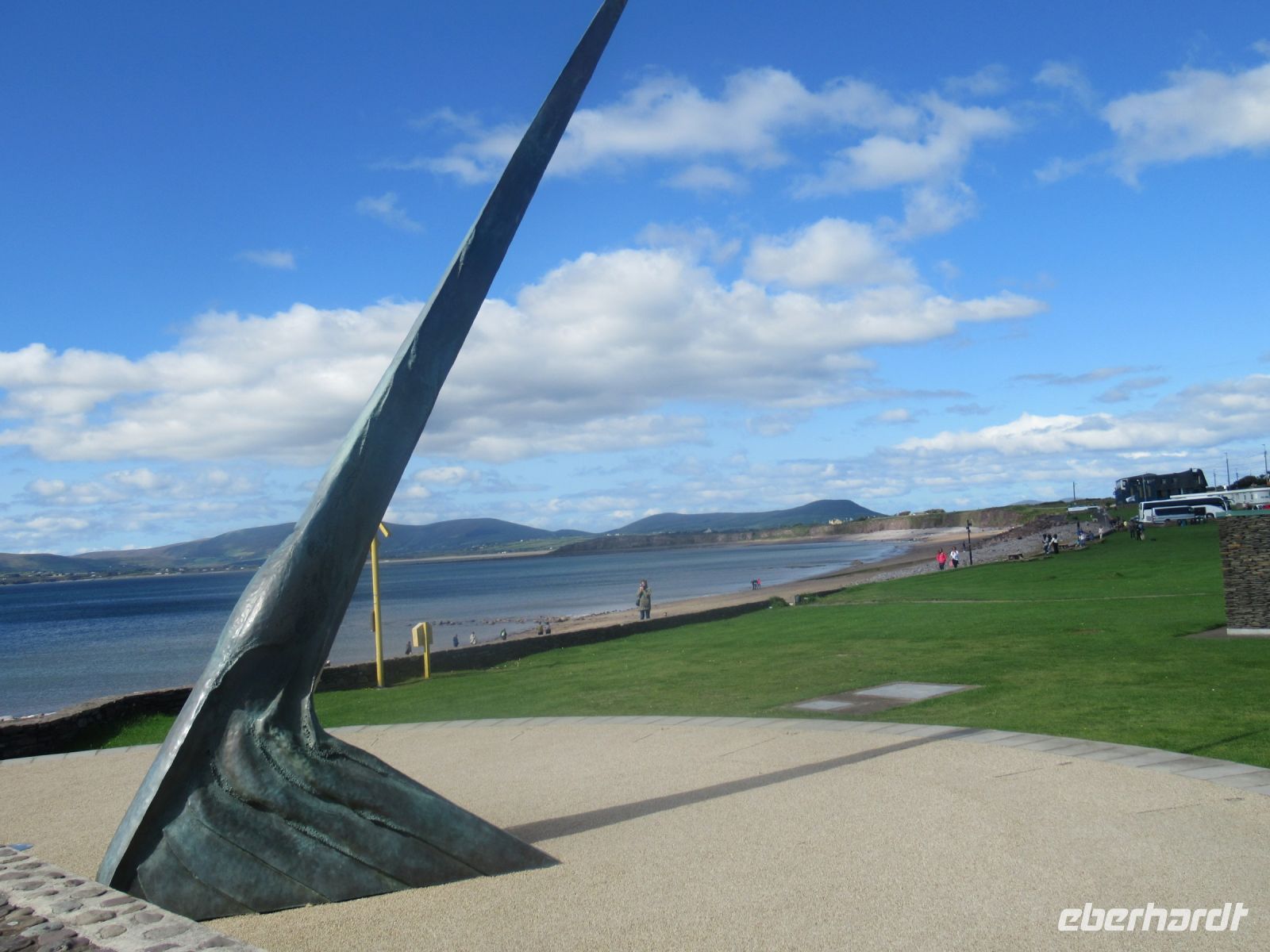 Von Tralee fuhren wir an der Blennerville Windmill vorbei und zunächst an der Bucht von Tralee entlang. Da es am Morgen sehr neblig war, hatten wir einen "verschleierten Blick" auf die Bucht und die Berge der Dingle- Halbinsel. Auf der Südseite der Halbinsel hob sich der Nebel, so dass wir den Blick sowohl auf die steile Küste auf der einen und die kahlen Berge auf der anderen Seite werfen konnten. Überrascht waren wir von den Bienenkorbhütten, die wir auch von innen erkunden konnten. Aber da gab es auch ganz junge Lämmer, die den historischen Gebäuden eindeutig den Rang abliefen, denn man dufte sie streicheln und sogar auf den Arm nehmen. An unserem nächsten Aussichtspunkt, dem Sleave League hatte sich eine Verkäuferin von Schmuck mit Ogham- Schrift und auch eine Kuchenbäckerin eingefunden- ein überraschendes Verwöhnprogramm in wilder menschenleerer Natur! Nach einem Abstecher zum Gallarus Oratory ging es zum Ort Dingle zurück; Zeit zum Fisch essen, das turbulente Städtchen mit seinen vielen Geschäften zu erkunden oder ein Foto vom Denkmal für das Wappentier Fungie- ein Delfin-zu schießen .Den Nachmittagskaffee nahmen wir nach einem Spaziergang am langen weißen Strand von Inch ein. Nach Tralee zurückgekehrt, nutzten wir die Freizeit um die Stadt und ihren großen Park zu erkunden. Nach dem Abendbrot wurde natürlich die Musik in den Pubs und die fröhliche Stimmung dort genossen.