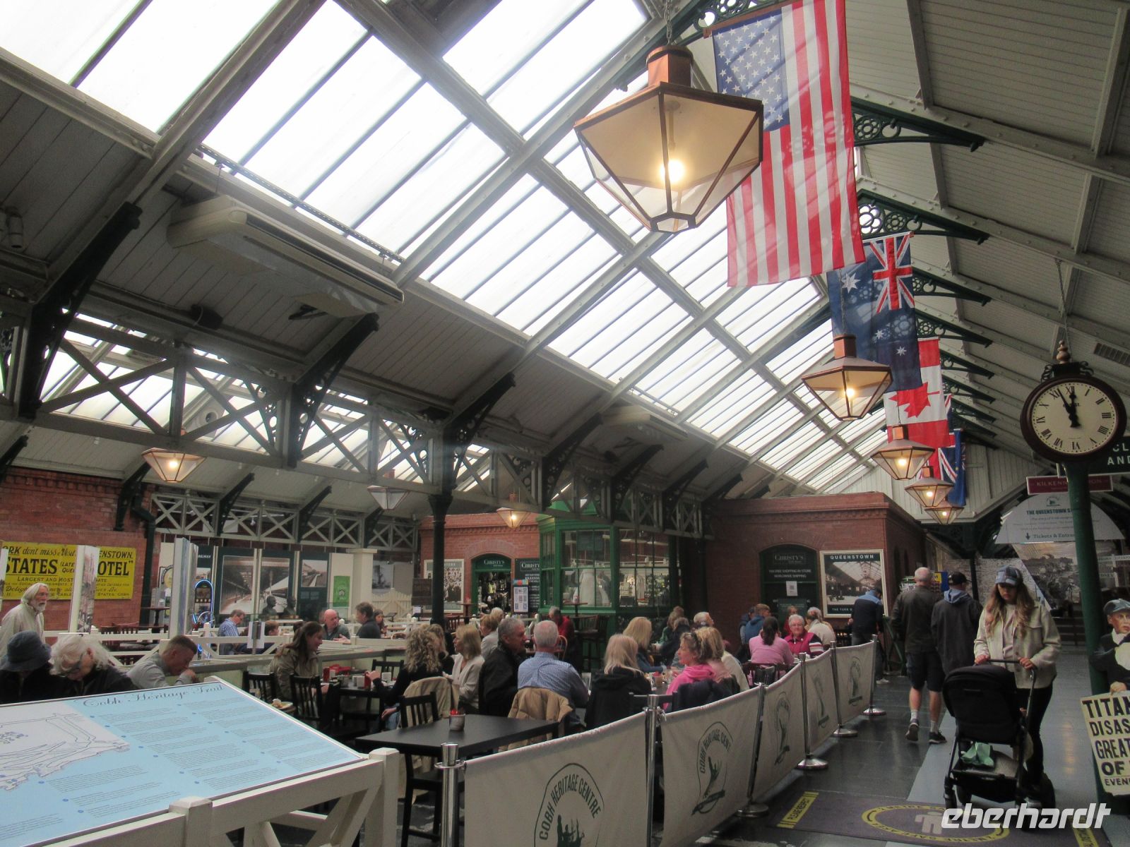 Langsam schließt sich der Kreis.Wir fahren an die Südküste der grünen Insel, nach Cobh. Dieser Ort war schon immer ein Auswanderungshafen. So ist er eng mit der Zeit der Hungersnot verknüpft, und auch die Titanic legte hier ein letztes Mal an, ehe sie in den Atlantik stach. Daran wurden wir in der heutigen Teestube des Auswandererbahnhofs erinnert. Danach fuhren wir nach Midleton, in die Whiskey- Brennerei von Jameson. Dort