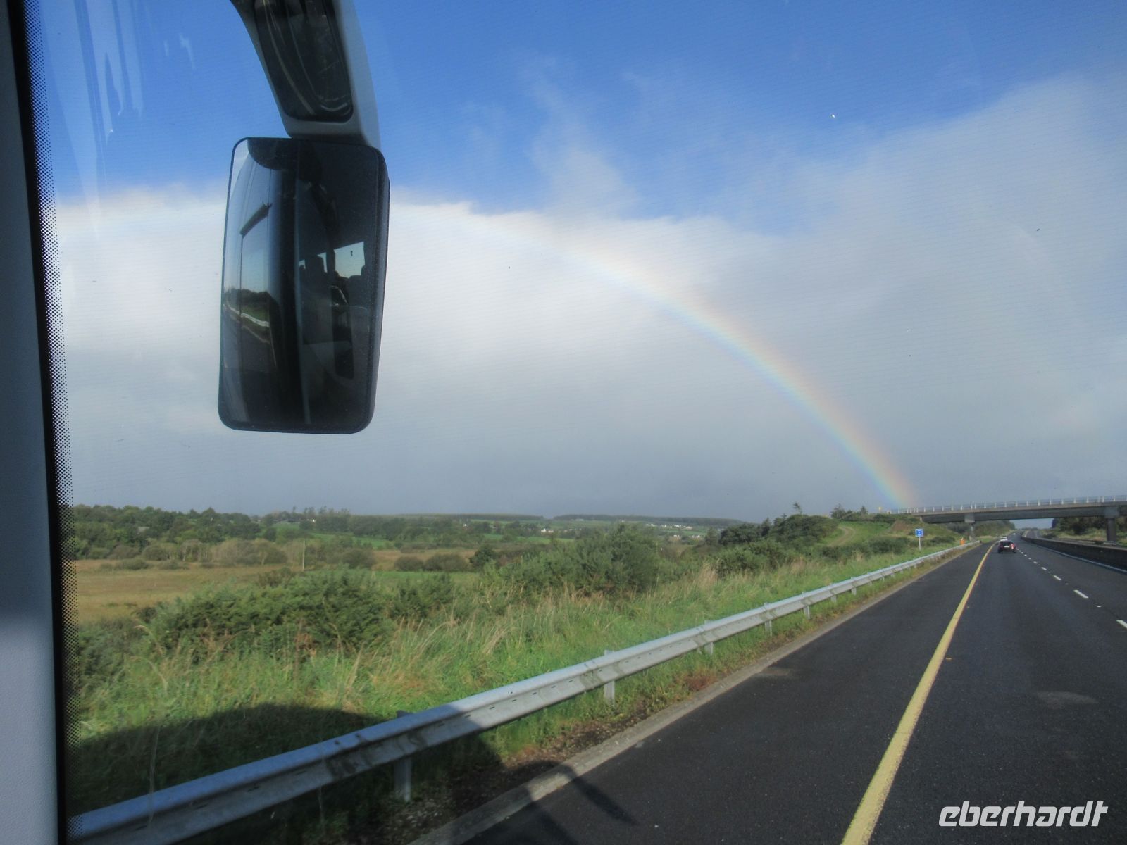 Schon am frühen Morgen erwartete uns eine Überraschung. Wir hielten am Auswanderungsschiff in Dunbrody und damit einen Eindruck, auf welch kleinen Seglern die Menschen während der großen Hungersnot in ihrer Verzweiflung die Überfahrt nach Amerika wagten.Heiter wurde es in der vor allem durch sein Bier bekannten Stadt Kilkenny. Die Stadt hat aber auch ein großes Schloß und andere historisch bedeutsame Gebäude zu bieten. Diese ließ sich ein großer Teil unserer Gruppe auf einer lustigen Stadtrundfahrt zeigen. Auch einige Histörchen wurden erzählt .Favoriten in der Freizeit waren der Schloßpark und die Kunstgewerbeläden. Auf der Weiterfahrt nach Dublin erfreute uns der Anblick eines wunderbaren, die Landschaft weit umspannenden, Regenbogens.Die Hauptstadt der Republik Irland, Dublin, mit dem Phoenixpark, den vielen Brücken, dem Trinity College, der St. Patricks und der Christ Church zeigte uns die Stadtführerin Corina, ehe wir in unser Hotel im Stadzentrum einzogen. Nach dem Abendessen trafen wir uns zu einem Spaziergang in Dublins Pub- und Musikviertel- nach Temple Bar: an jeder Ecke ein Pub mit Musik und fröhliche Menschen, die begeistert ihre irischen Folksongs mitsingen und sich über jeden "Fremden" freuen!