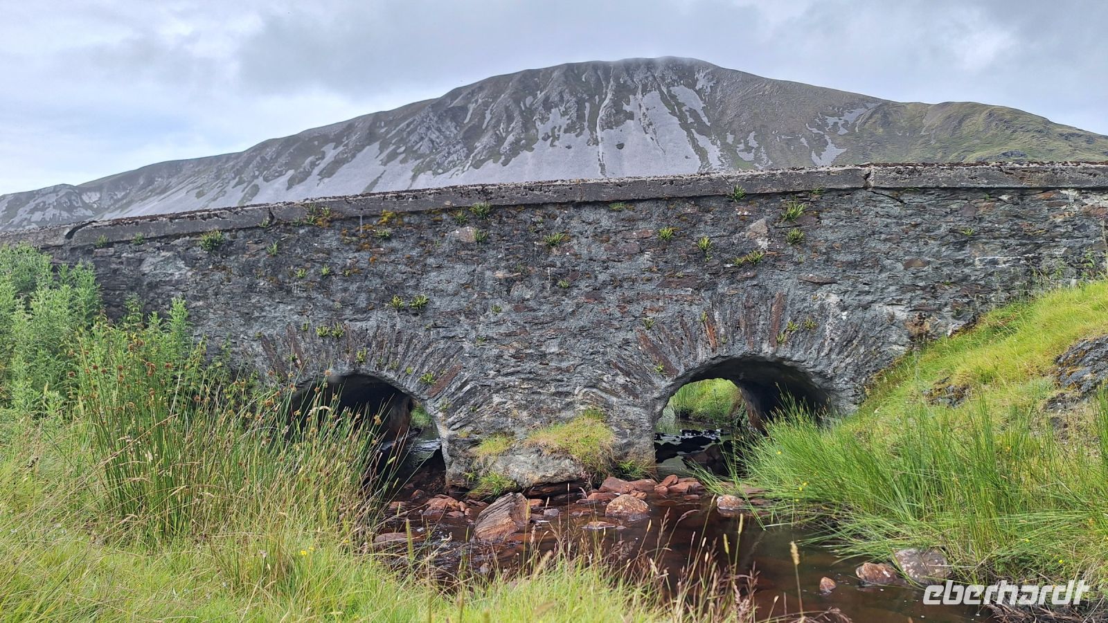 Später folgen wir dann weiter dem Wild Atlantic Way, genießen den Blick auf die vorgelagerten Tory Islands und die wunderschöne Küstenlandschaft der Bloody Forelands. Schließlich durchqueren wir die Berge noch einmal und folgen der Muckish Gap von Falcarragh nach Letterkenny. Hier treffen wir nicht nur auf mehrere Schafherden auf der Straße, sondern auch auf eine alte Brücke, die als "Bridge of Tears" oder "Bridge of Sorrow" bekannt ist. Bis hierher begleiteten Familie und Freunde ihre meist jungen Angehörigen, die auf dem Weg nach Derry waren, um dort ein Schiff in Richtung Amerika zu besteigen - in der Hoffnung auf ein besseres Leben und der Gewissheit, dass man sich höchstwahrscheinlich nie mehr wiedersehen würde.