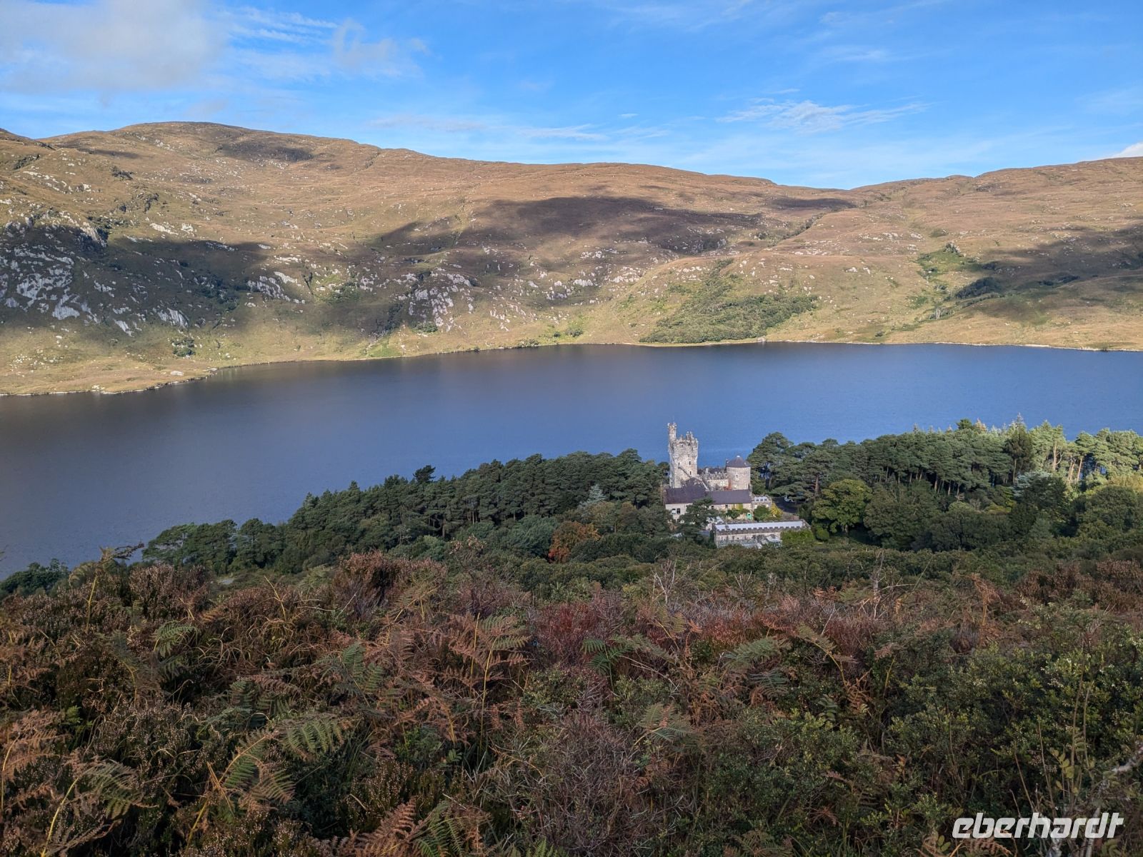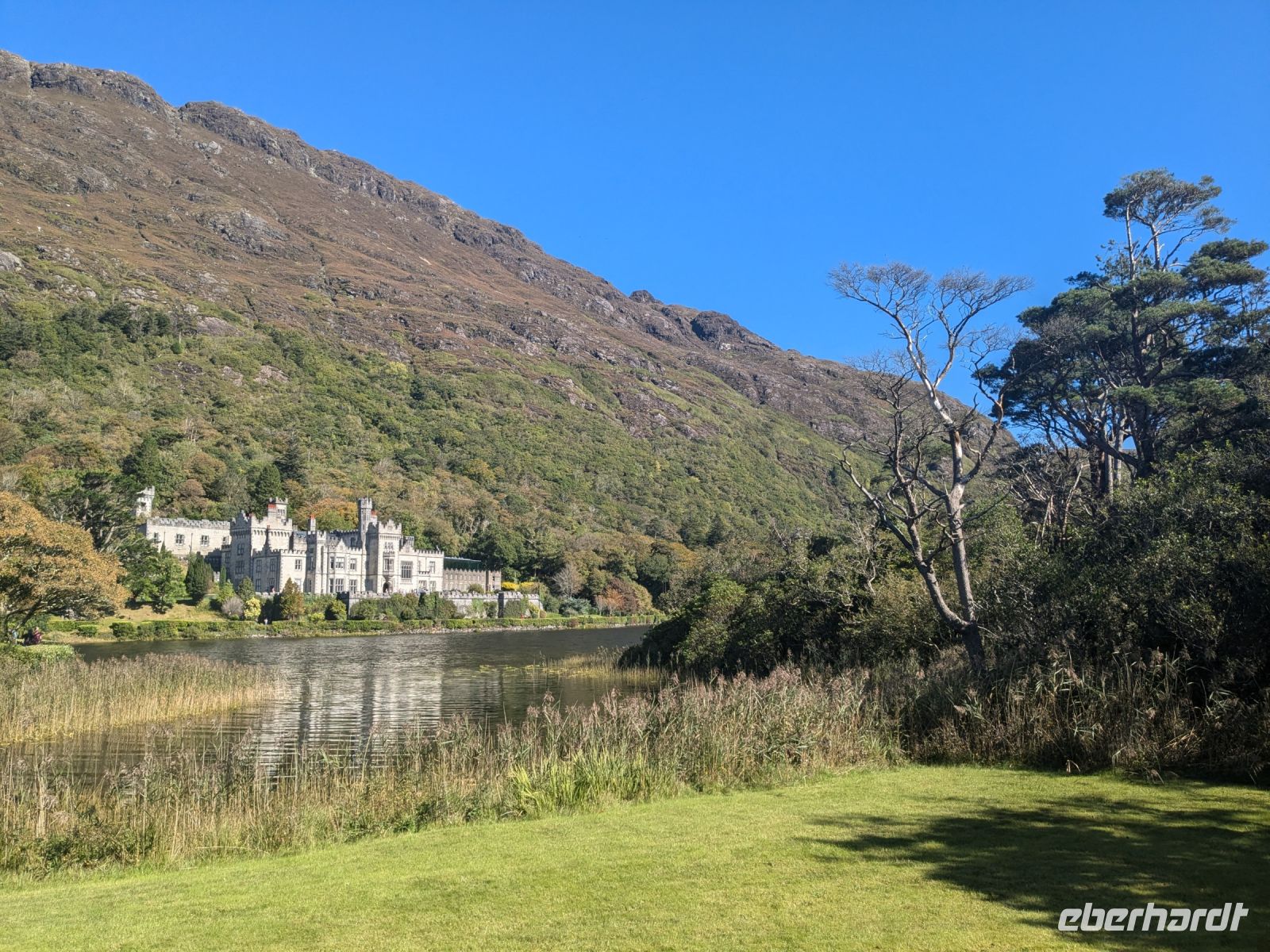 Weiter ging unsere Reise Richtung Westen, wo wir einen kurzen Stopp am malerischen Lough Inagh einlegten. Der glitzernde See, umrahmt von den beeindruckenden Bergen der Connemara, bot perfekte Fotomotive. Wir genossen die friedliche Landschaft unter strahlendem Sonnenschein, bevor es zum Höhepunkt des Tages weiterging: Kylemore Abbey.