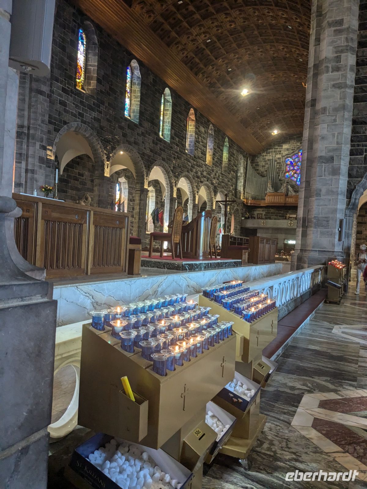 Daraufhin setzten wir unsere Fahrt fort, vorbei an der eindrucksvollen Landschaft des County Mayo, bis wir schließlich das County Galway erreichten. In der lebhaften Stadt Galway, die uns bei strahlendem Sonnenschein empfing, besuchten wir als erstes die beeindruckende Galway Cathedral. Das eindrucksvolle Bauwerk mit seinen hohen Kuppeln und wunderschönen Glasfenstern zog sofort unsere Aufmerksamkeit auf sich.
