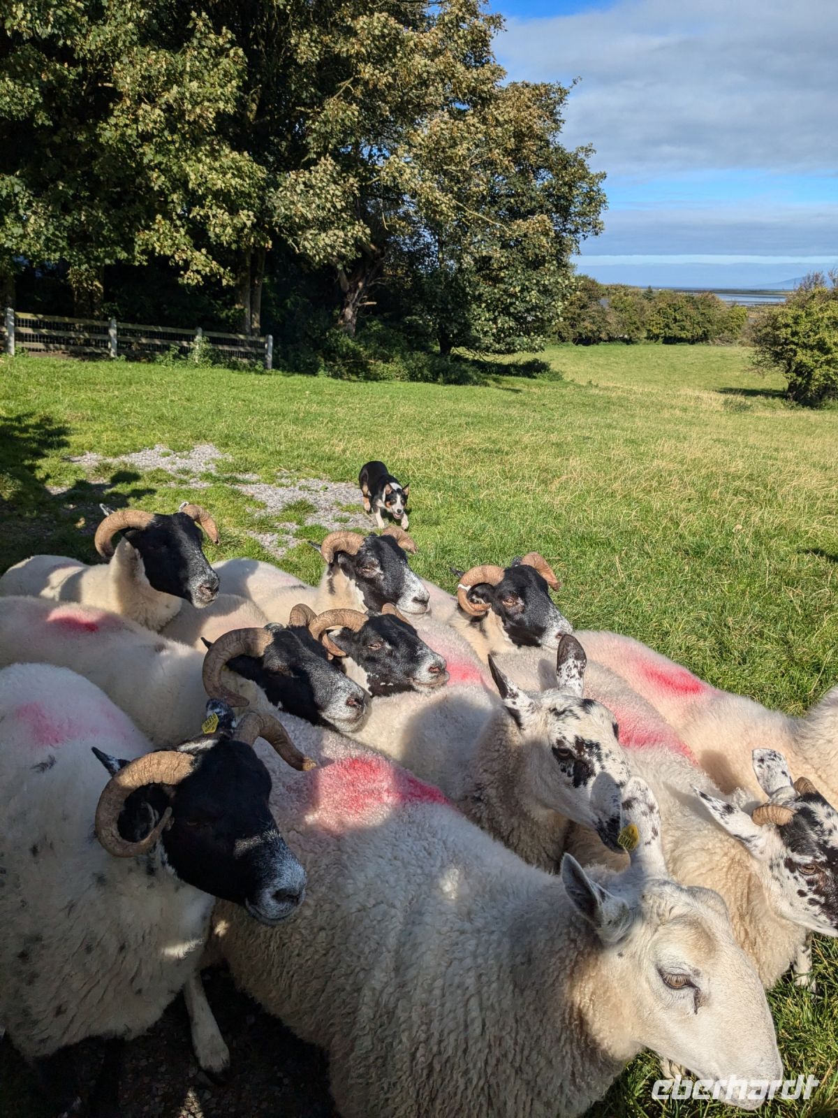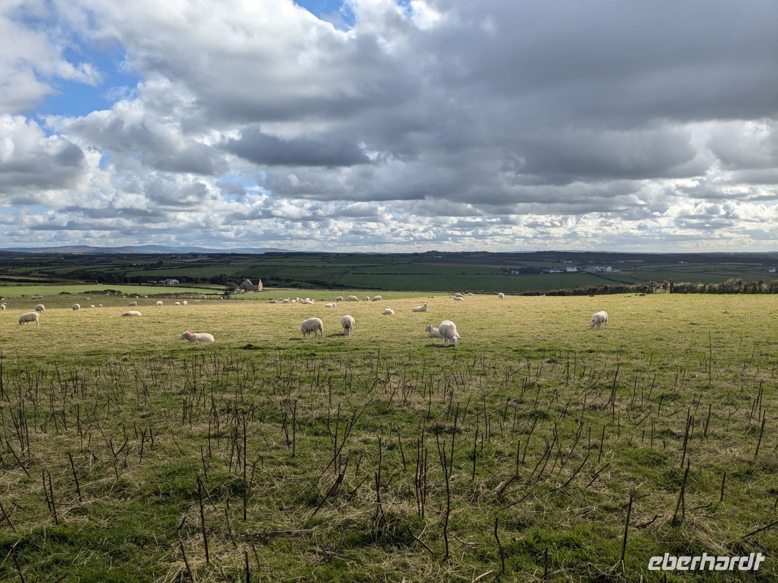 Nur 10 Minuten von den Grabanlagen entfernt erreichten wir unseren nächsten Stopp, „Atlantic Sheepdogs“, wo wir Martin und seinen Border Collie kennenlernten. Martin zeigte uns eindrucksvoll, wie er seinem Hund präzise Anweisungen gab, woraufhin der Collie geschickt die Schafe über die Weiden trieb und sie mühelos zusammenhielt. Er erzählte uns von der harten Arbeit seines Vaters, der täglich die Schafe auf dem Benbulben, dem Hausberg der Region, überprüfte – eine Tradition, die heute durch die Arbeit der Hunde erheblich erleichtert wird.