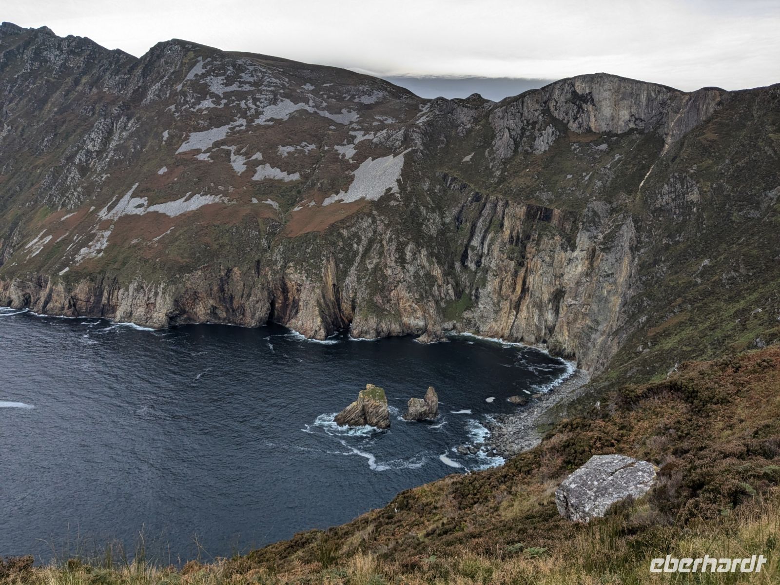 Unsere Reise führte uns weiter Richtung Süden, wo wir den Slieve League Aussichtspunkt besuchten, der uns mit seiner gewaltigen Schönheit regelrecht überwältigte. Die Slieve League Klippen gehören mit 600 Metern zu den höchsten Meeresklippen Europas und sind fast dreimal so hoch wie die bekannteren Cliffs of Moher. Von den steilen Felswänden aus bot sich uns ein atemberaubender Blick auf die unendliche Weite des Atlantischen Ozeans und die schäumenden Wellen, die weit unter uns an den Felsen zerschellten. Der Respekt vor der Natur war hier deutlich spürbar, und dieser Ort hinterließ einen bleibenden Eindruck in unseren Herzen.